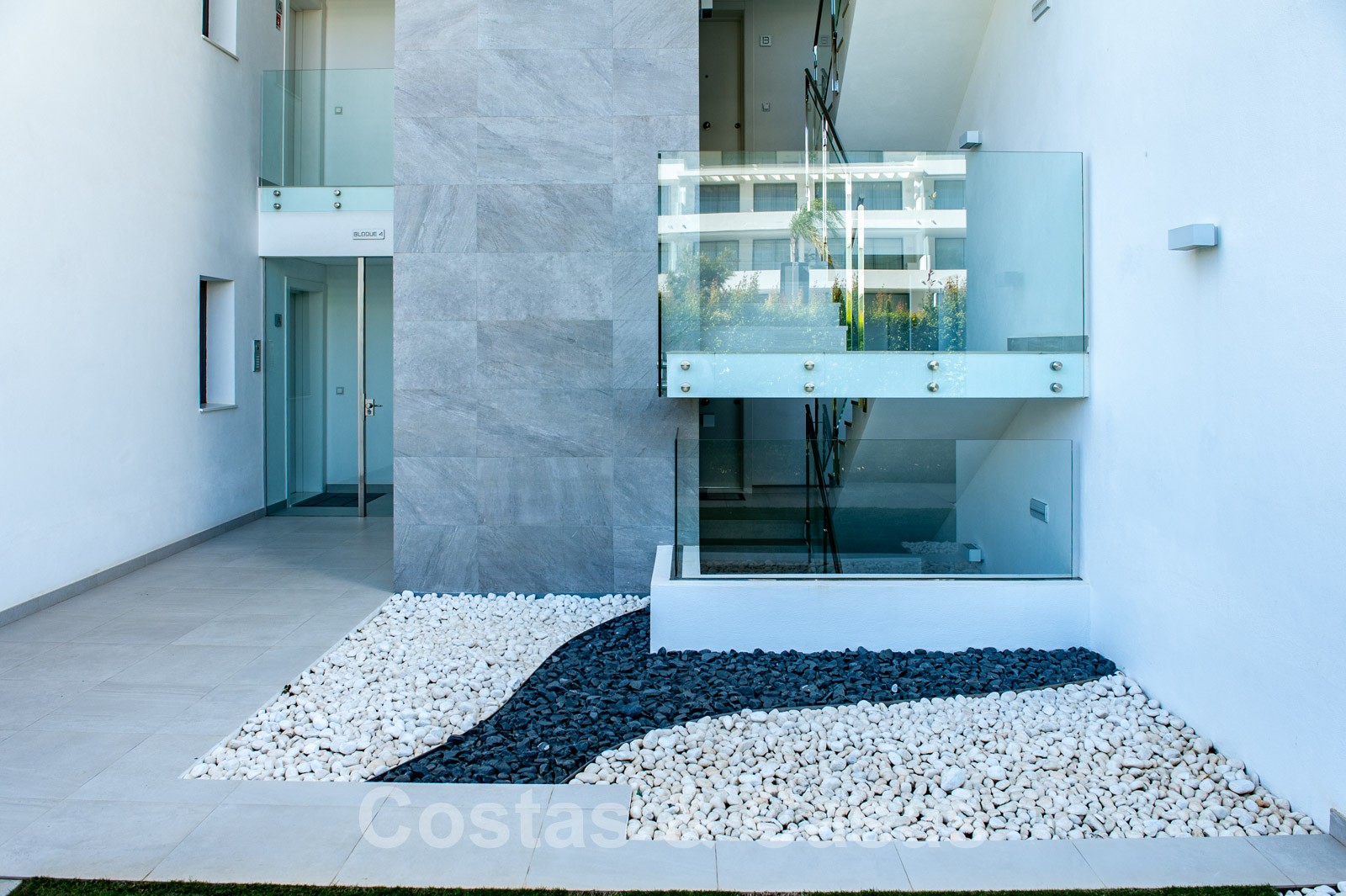 Aantrekkelijk ruim tuinappartement te koop in een prestigieus Sierra Blanca complex op de Golden Mile in Marbella.