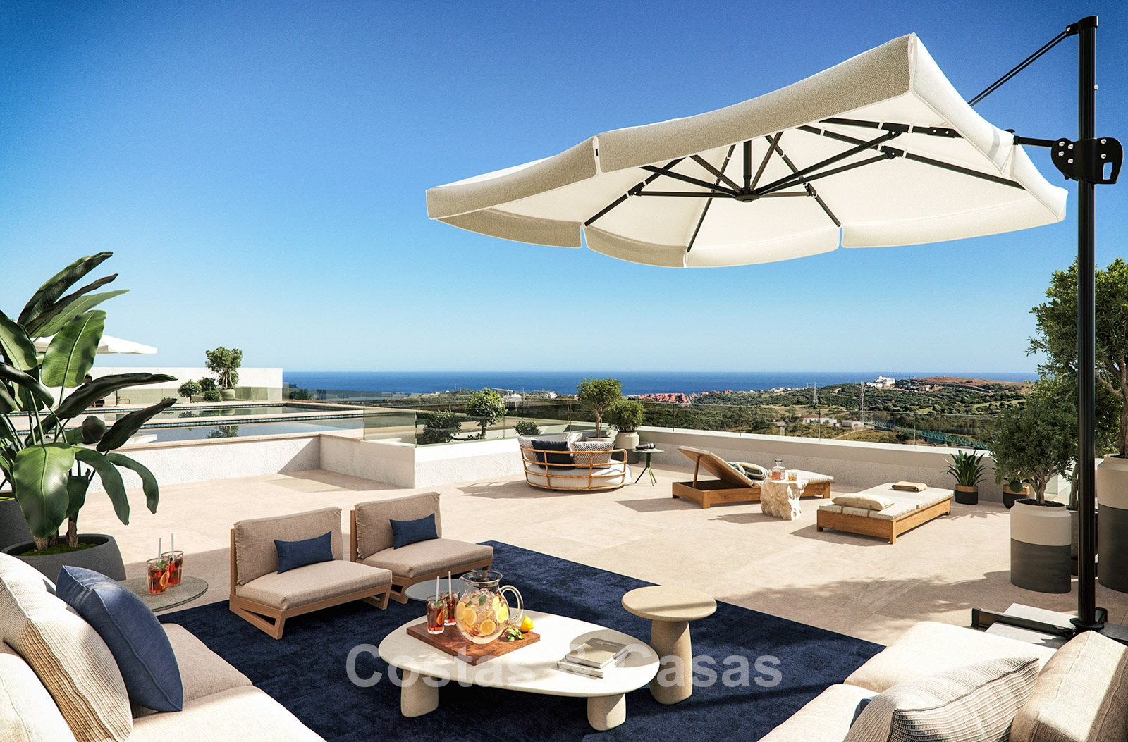 De penthouses genieten van uitgestrekt dakterras uitgerust met een privézwembad.