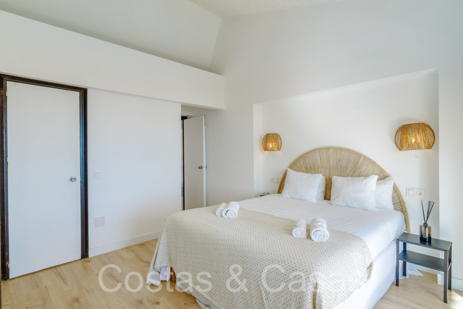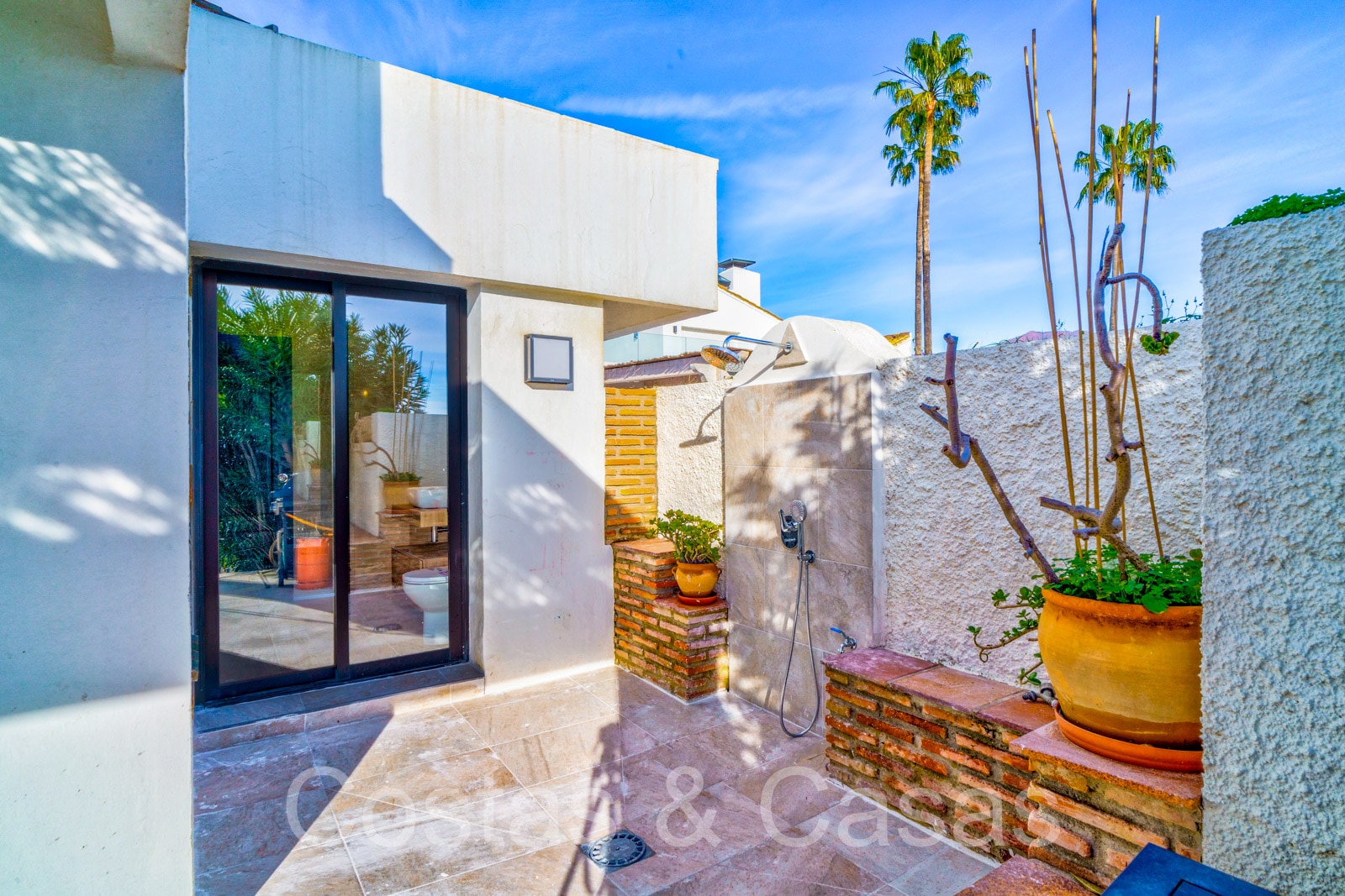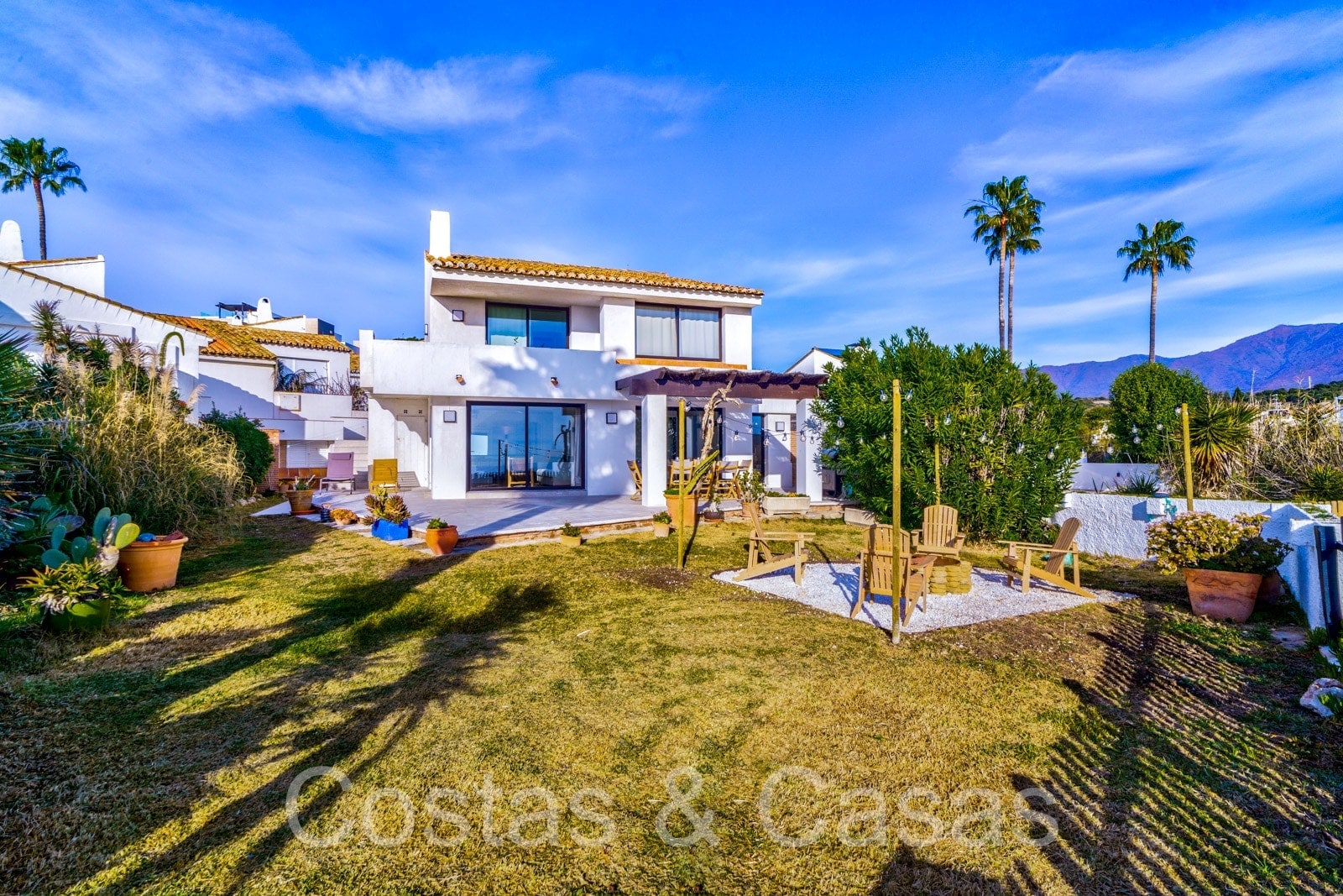 Instapklare nieuwbouwvilla met contemporaine bouwstijl te koop met zeezicht en op loopafstand van het strand in Estepona
