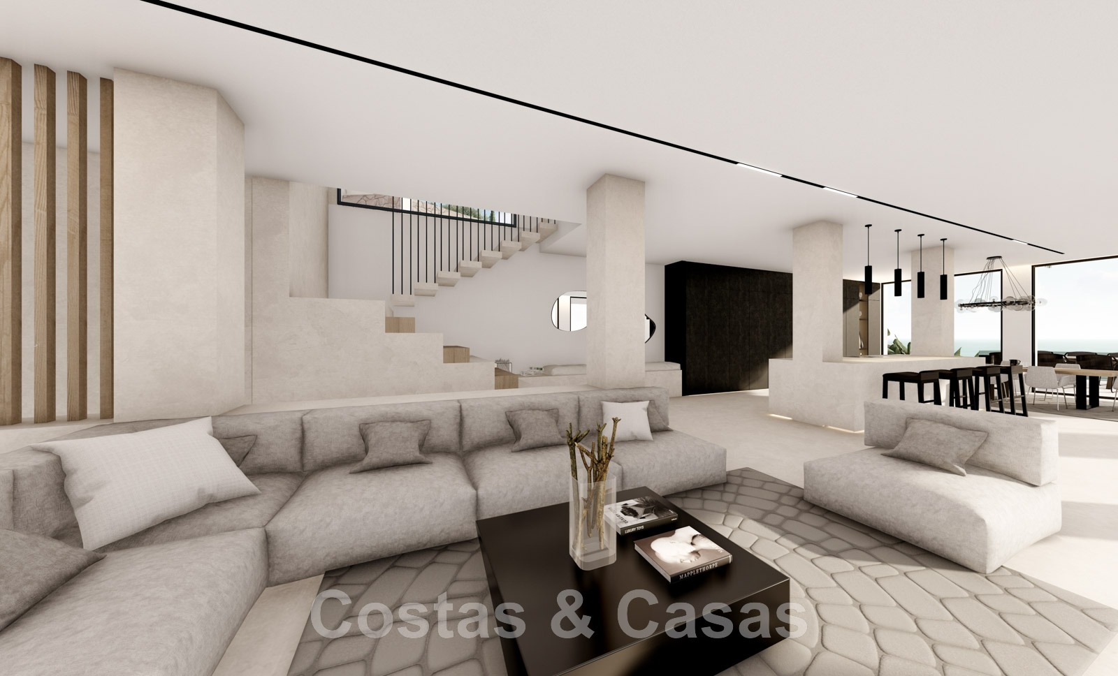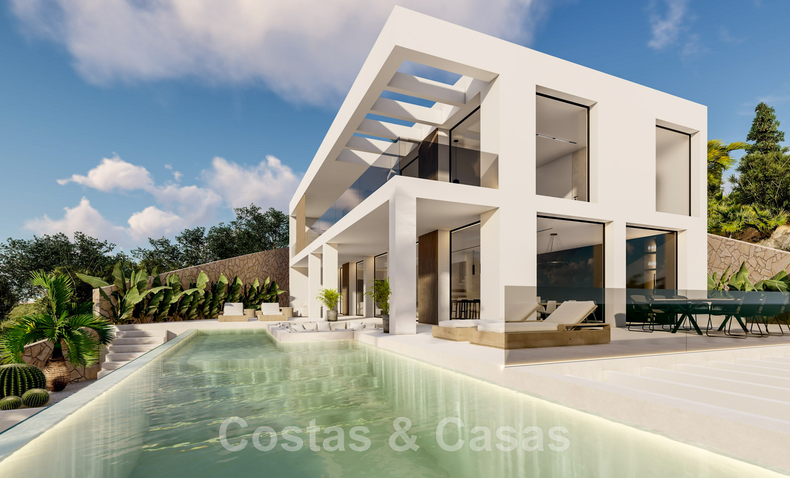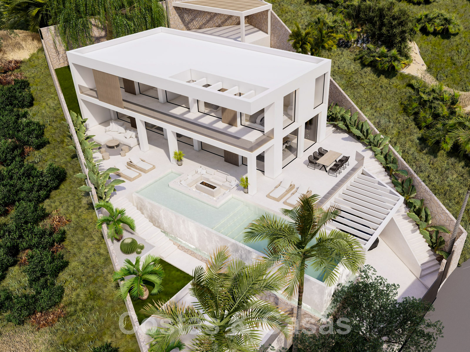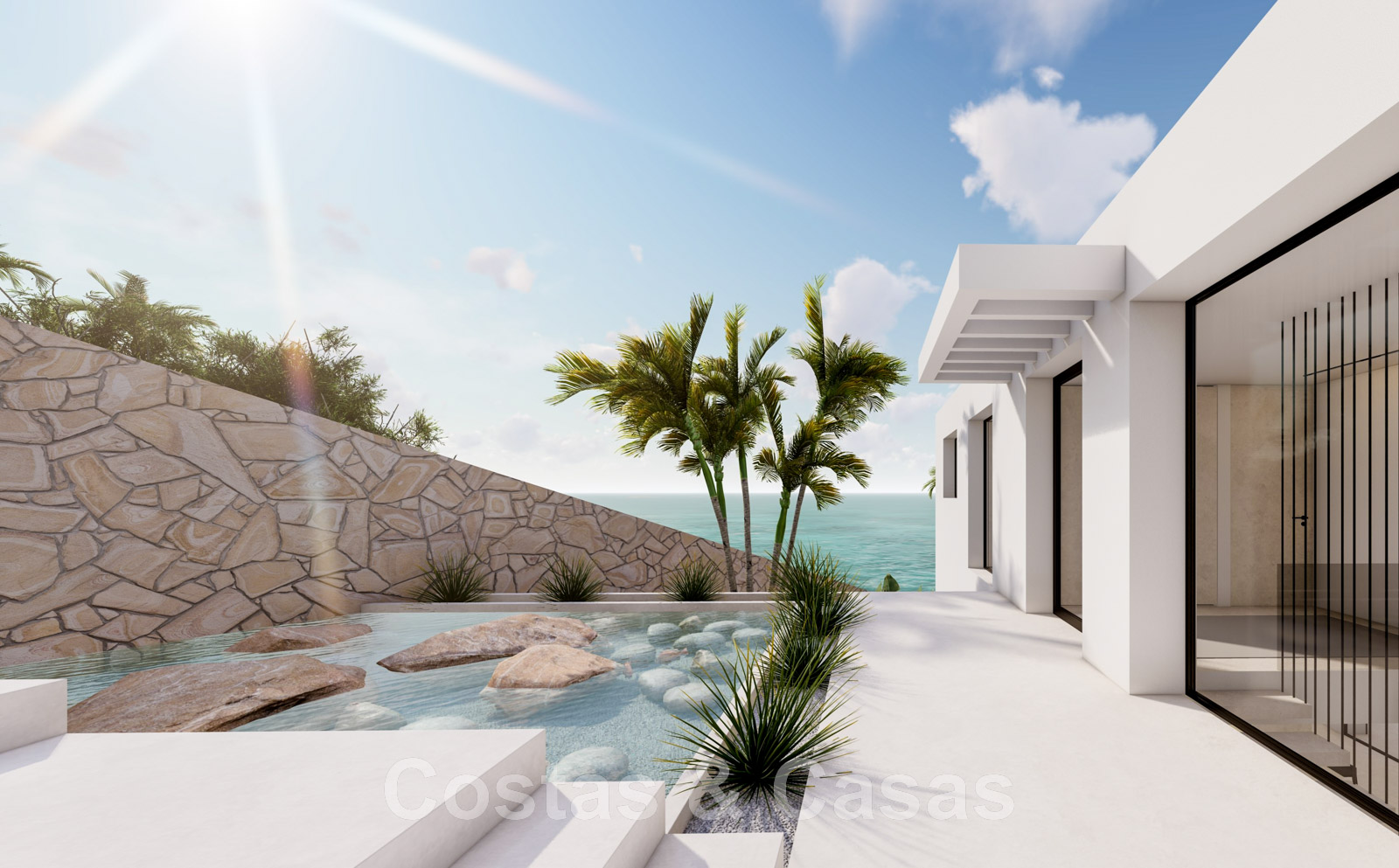 Nieuwe designervilla te koop, met panoramisch zeezicht in een rustige omgeving op loopafstand van het strand in Manilva, Costa del Sol