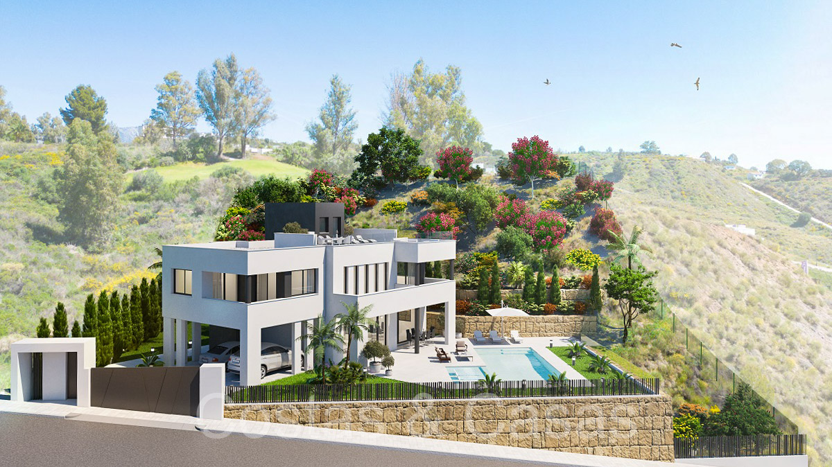 Moderne nieuwbouwvilla te koop grenzend aan de golfbaan in Mijas, Costa del Sol