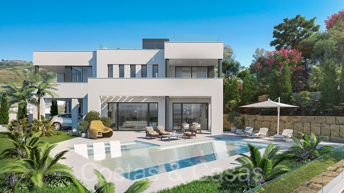 Nieuwe, eigentijdse luxevilla te koop met zeezicht in eersteklas golfresort in Mijas, Costa del Sol