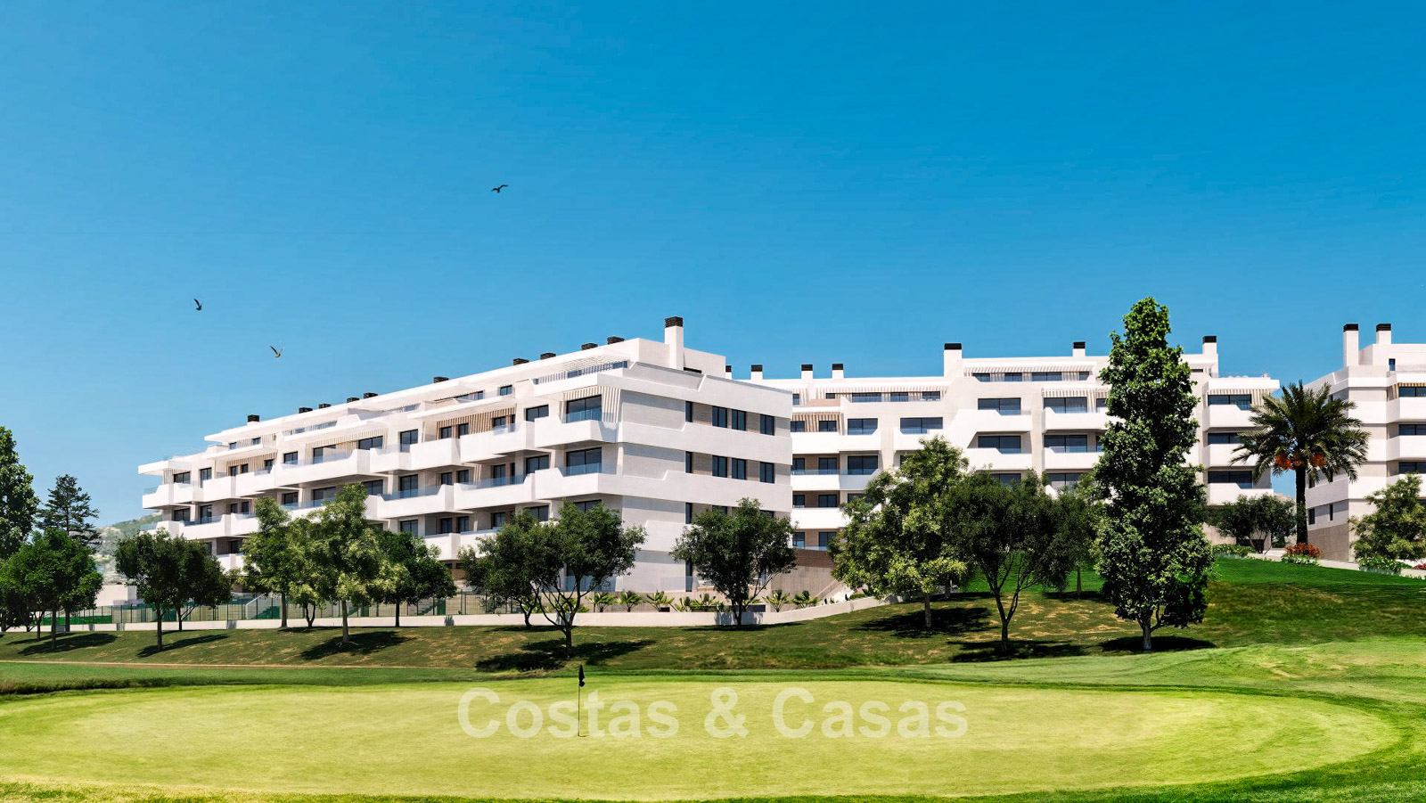 Eigentijdse nieuwbouwappartementen te koop grenzend aan de golfbaan in Mijas, Costa del Sol