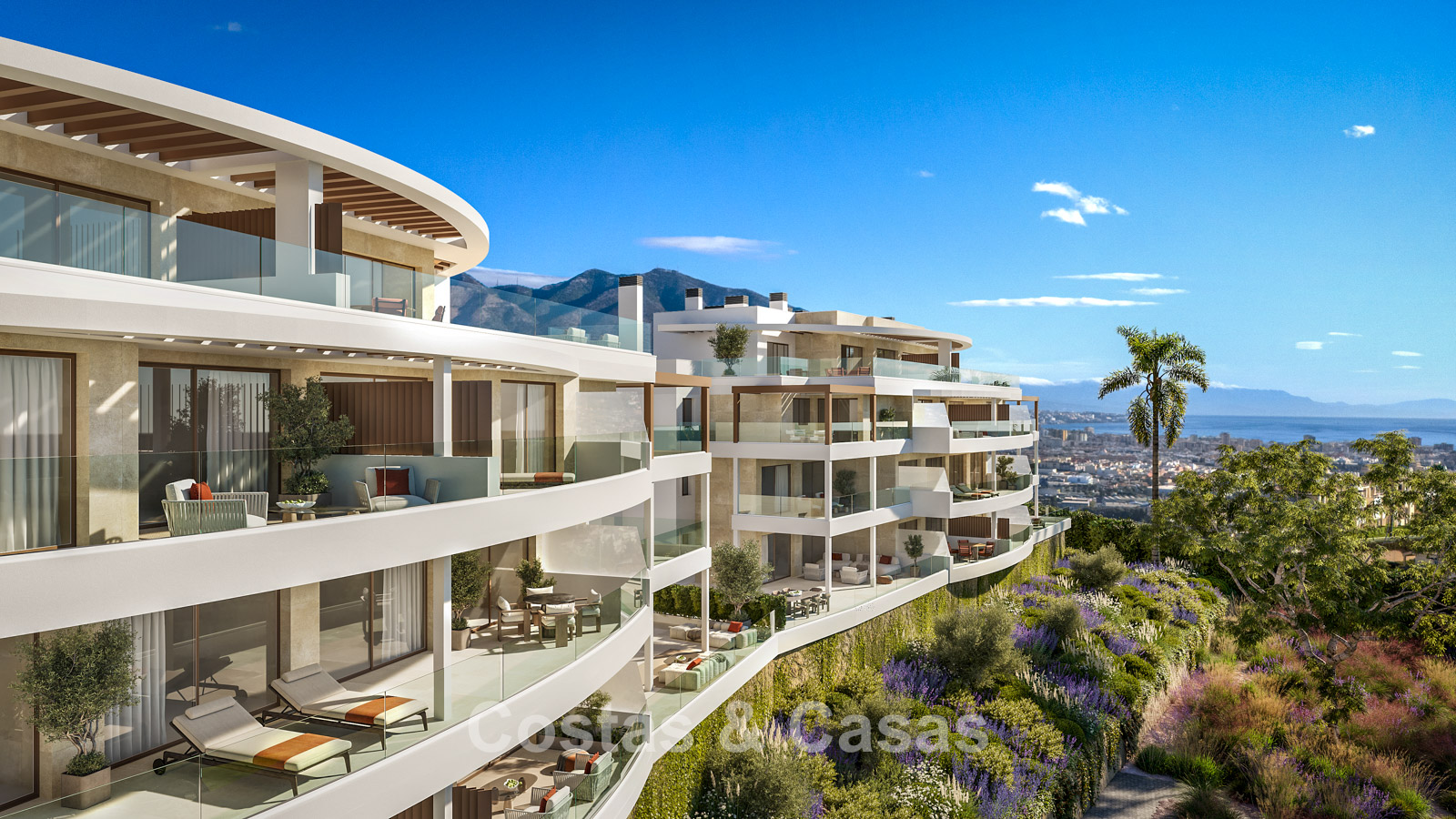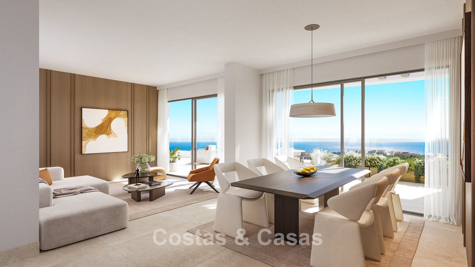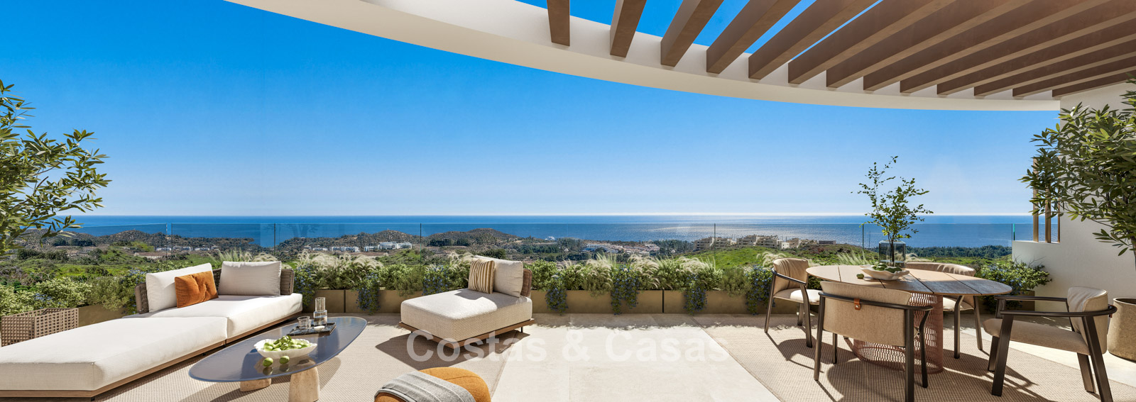 Moderne appartementen met panoramisch zeezicht te koop in een golfgebied in Mijas Costa, Costa del Sol