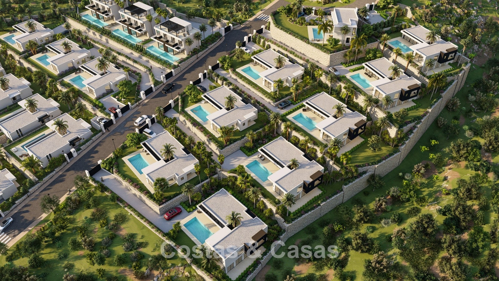 De woningen zijn gesitueerd in een beveiligde, omheinde community die rust en veiligheid garandeert.