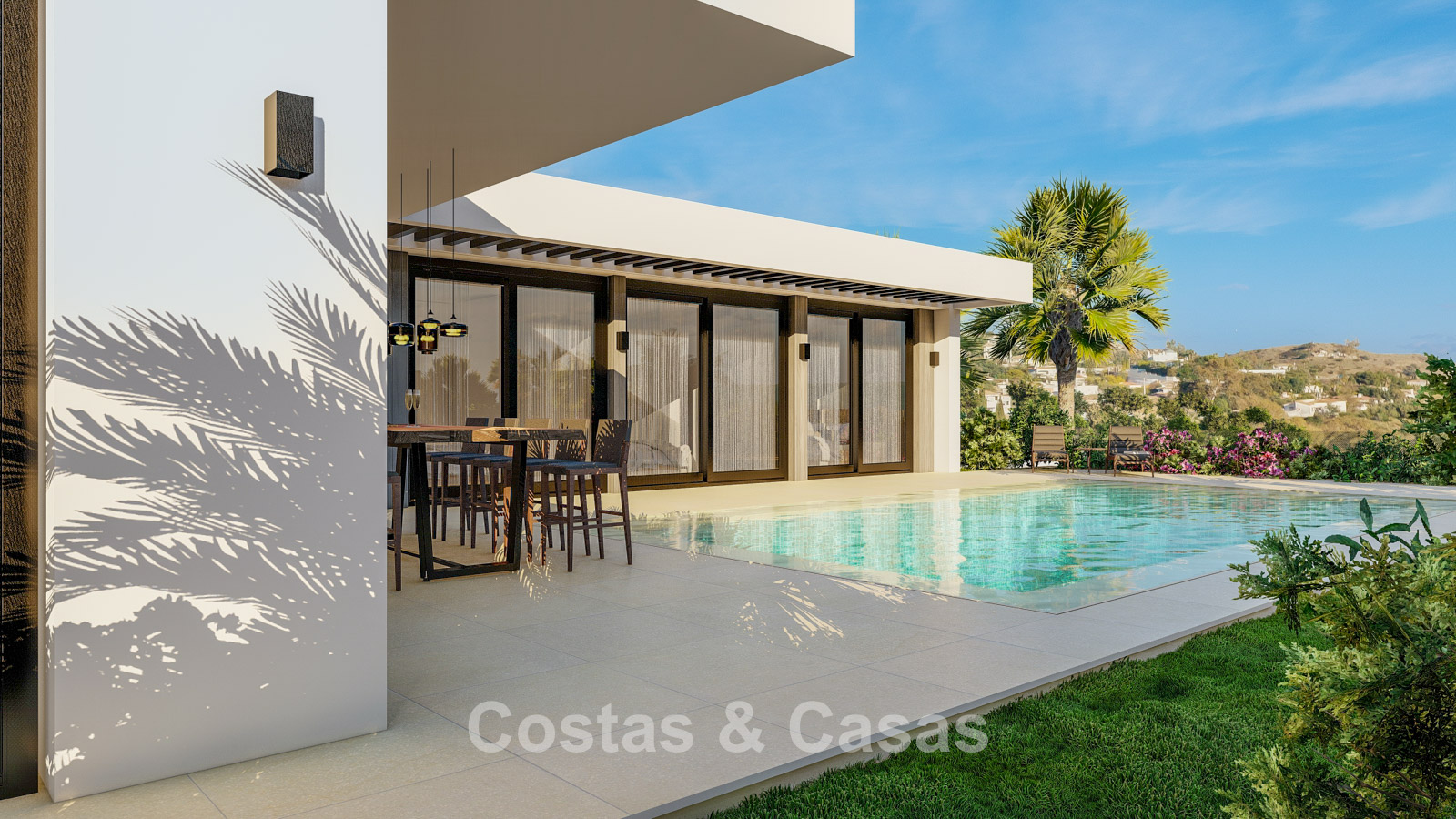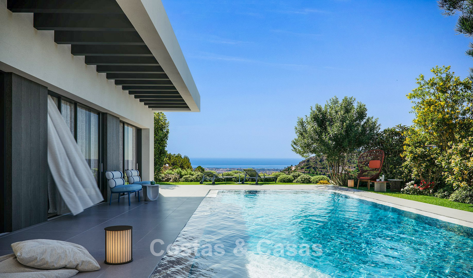 De royale terrassen zijn ontworpen om binnen- en buitenleven vloeiend in elkaar te laten overgaan.