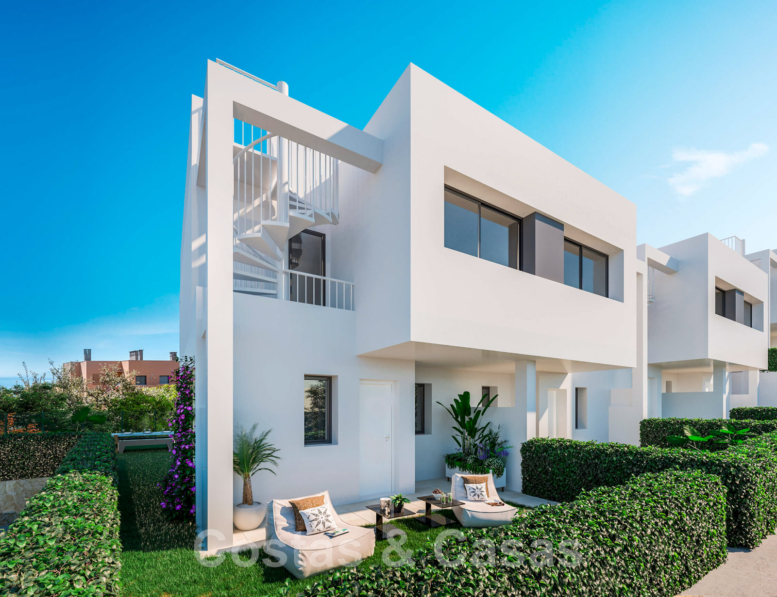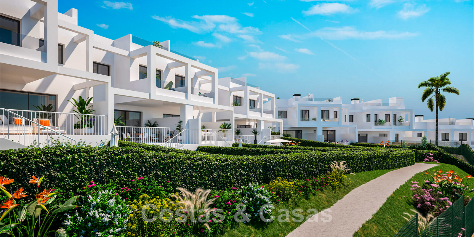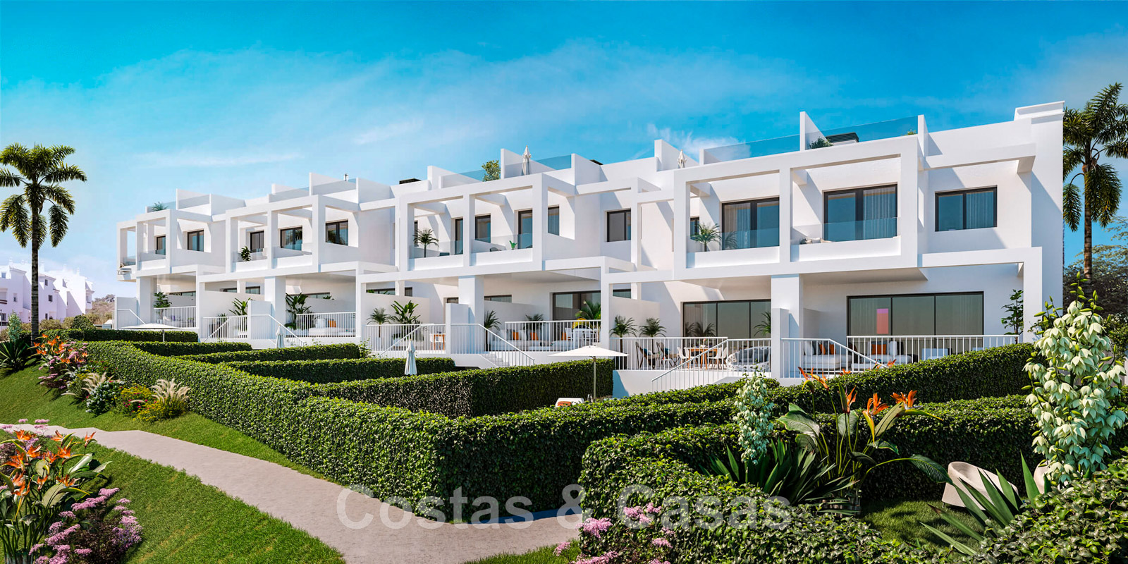 Nieuwe, eigentijdse, rijwoningen te koop met adembenemend zeezicht in Manilva aan de Costa del Sol