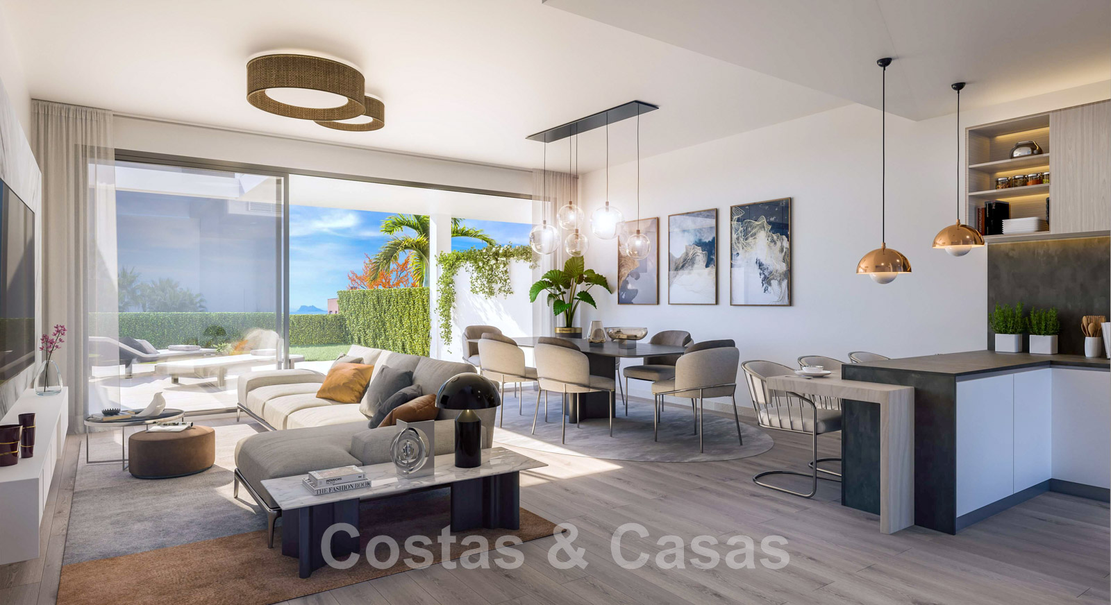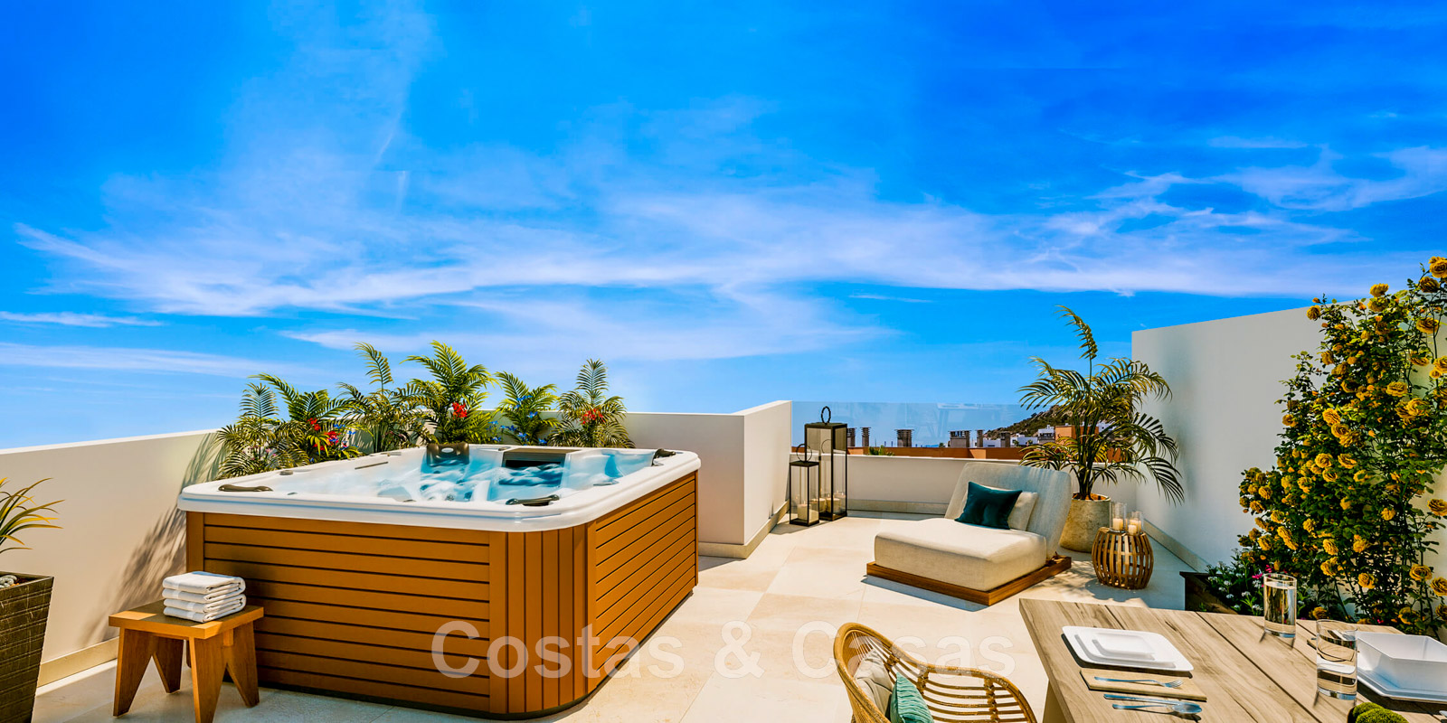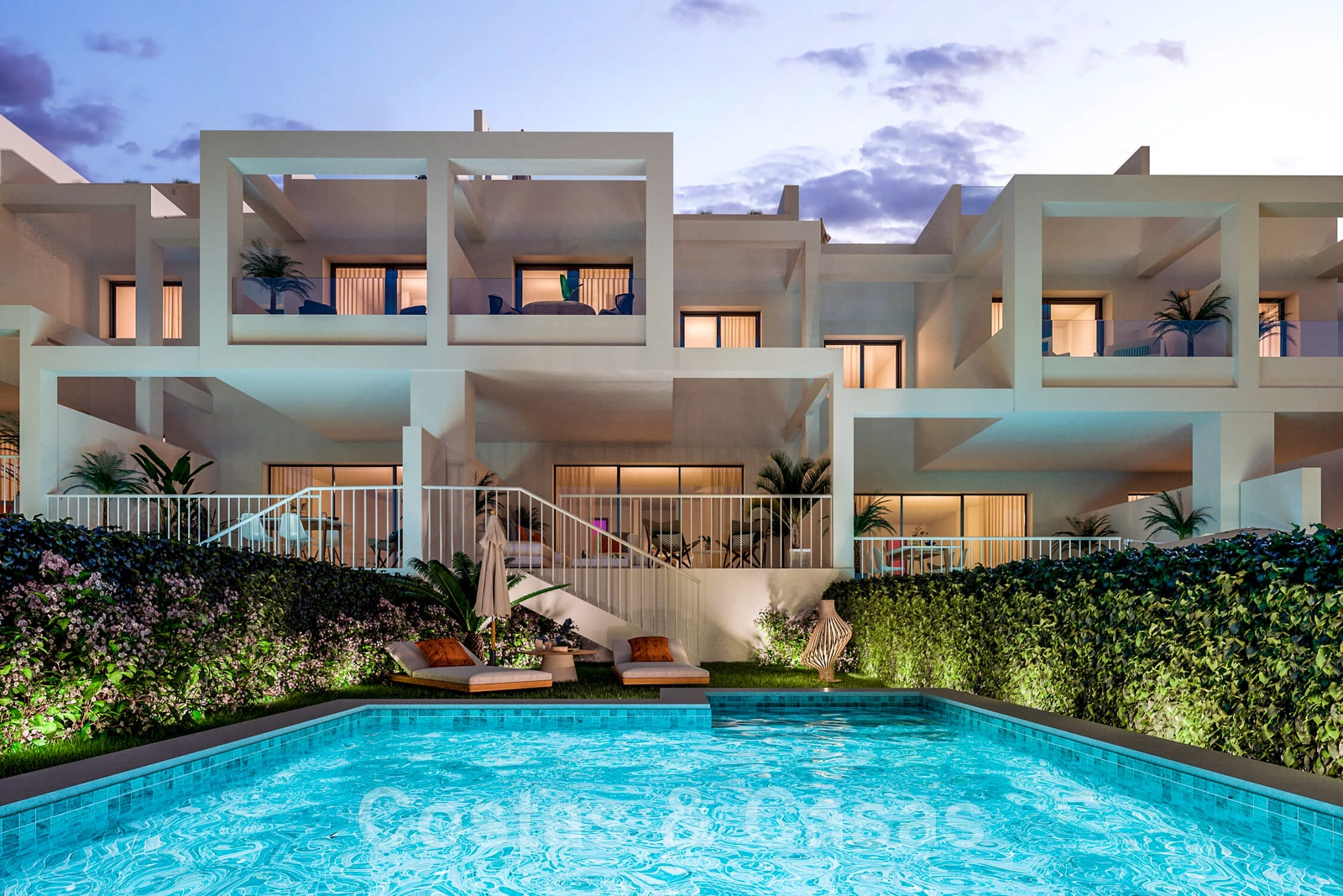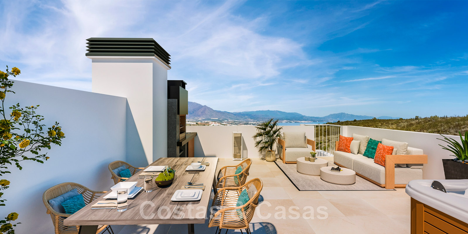 Nieuwe, eigentijdse, rijwoningen te koop met adembenemend zeezicht in Manilva aan de Costa del Sol 43326