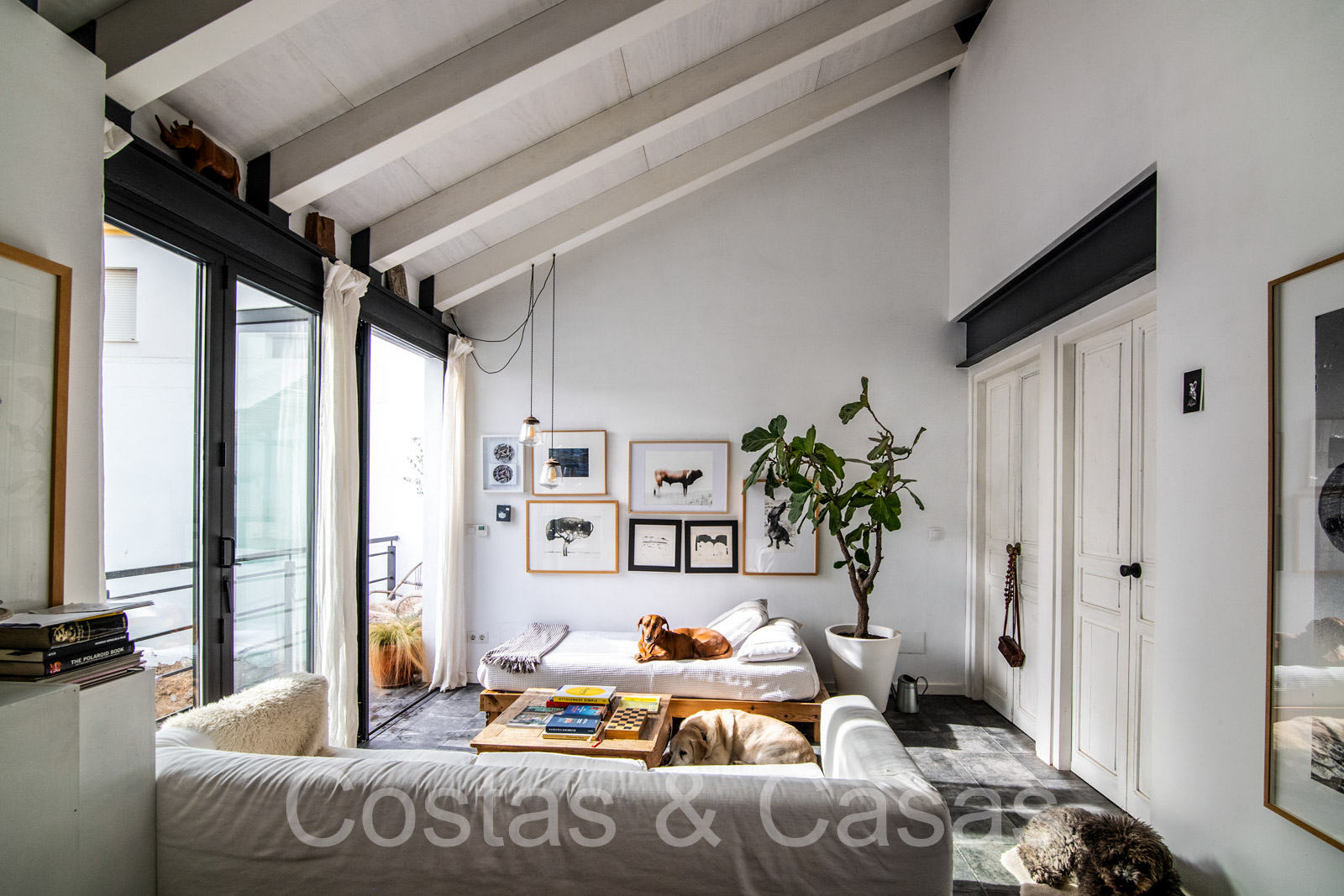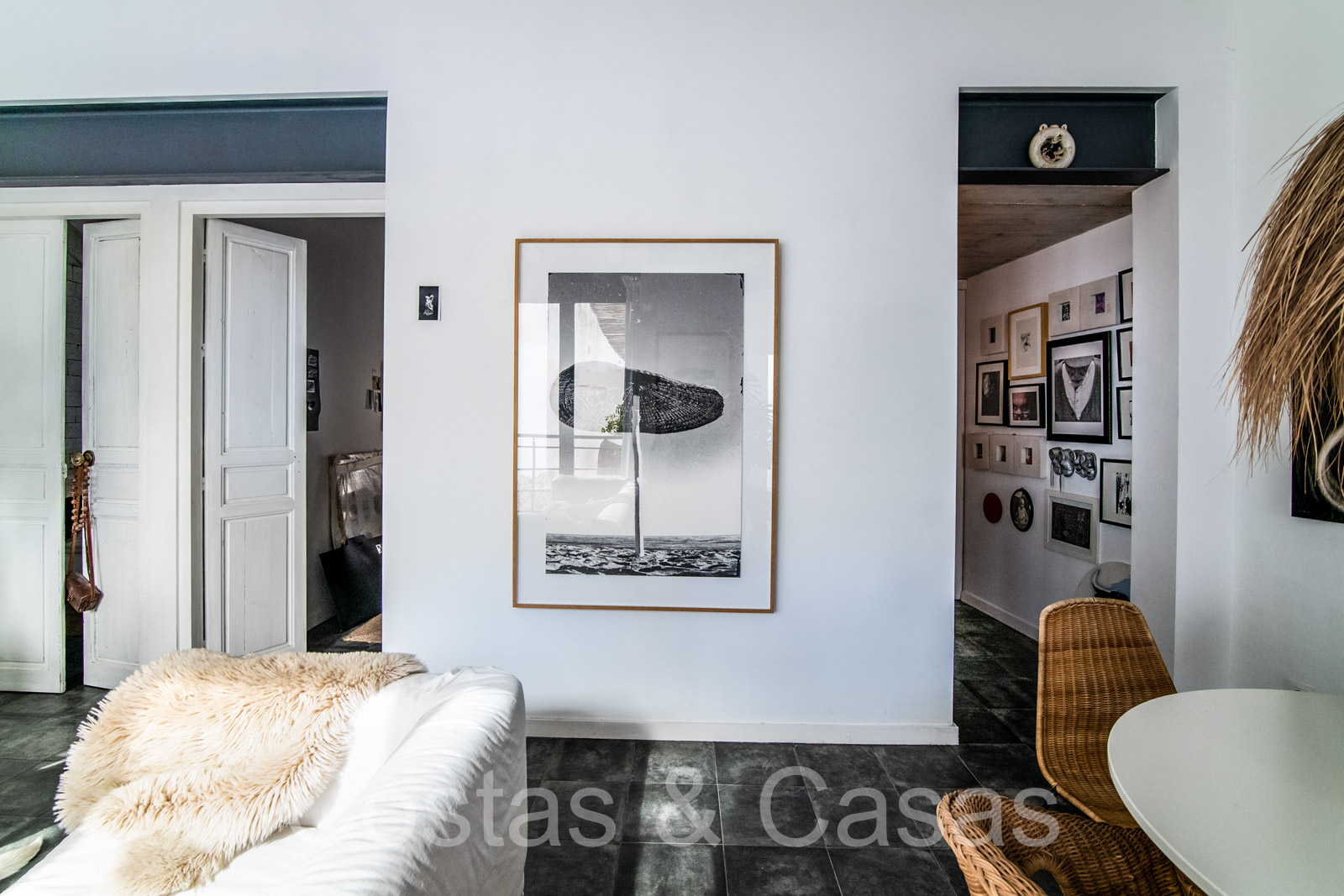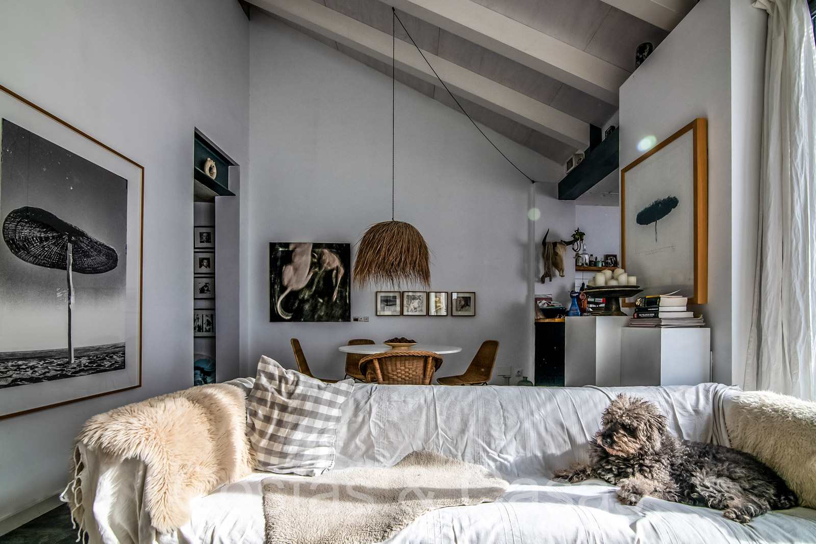 Lichtrijk interieur, karaktervol ingericht met artistieke accenten.