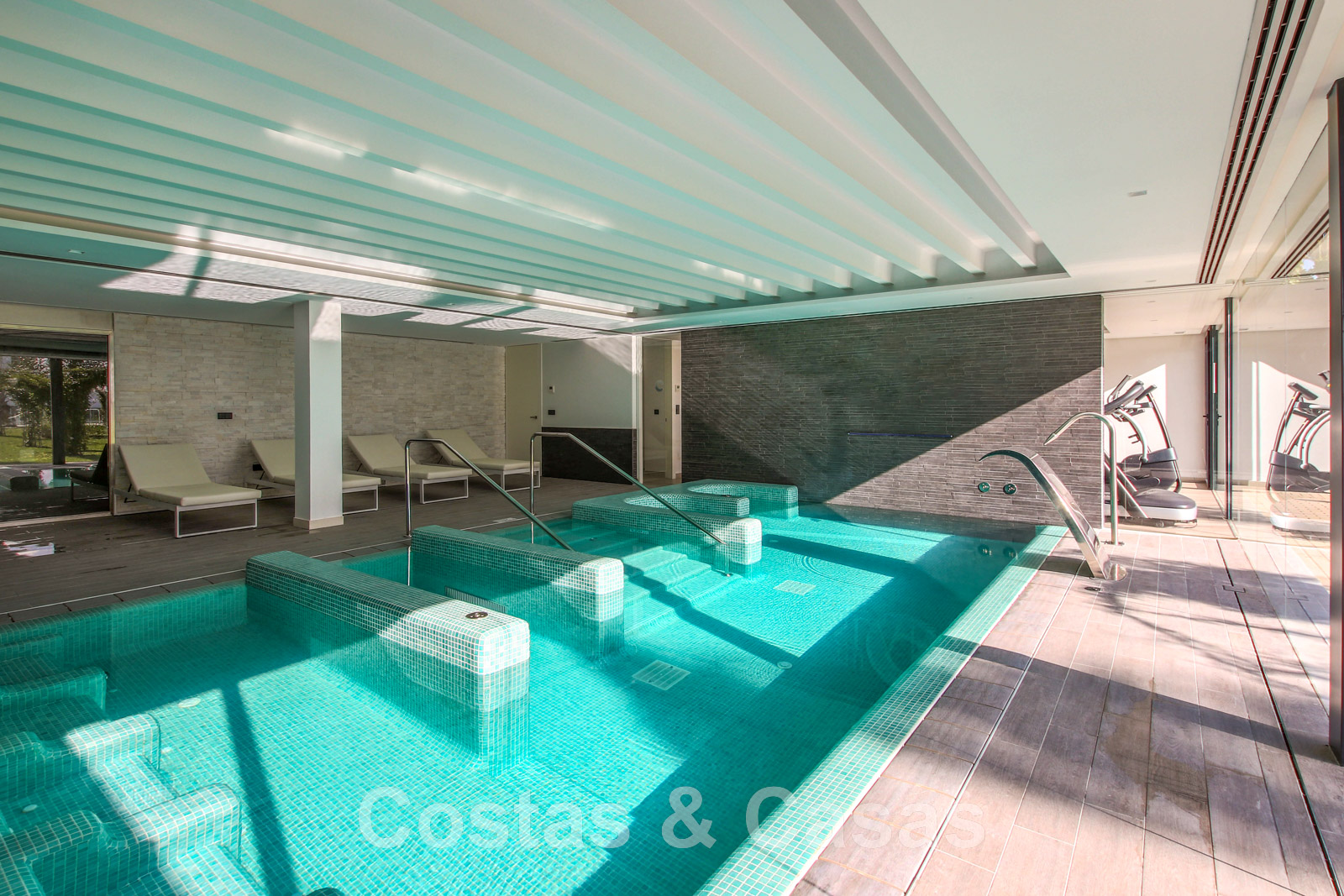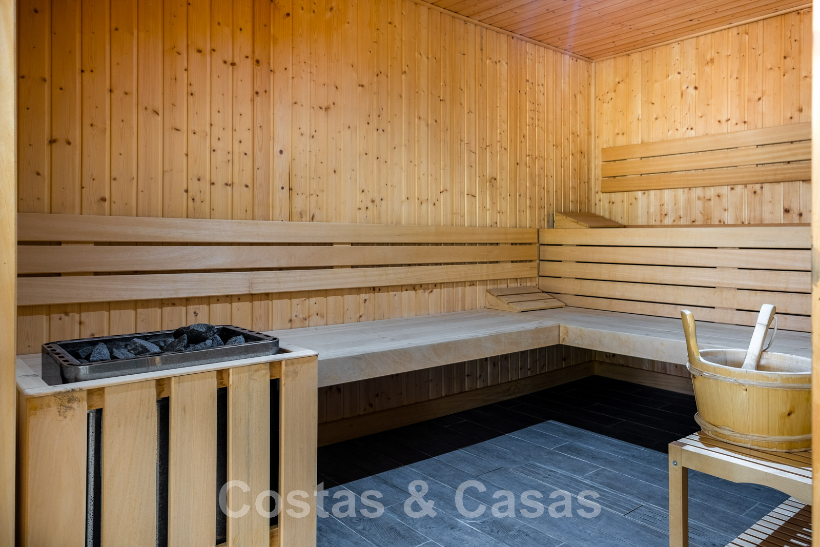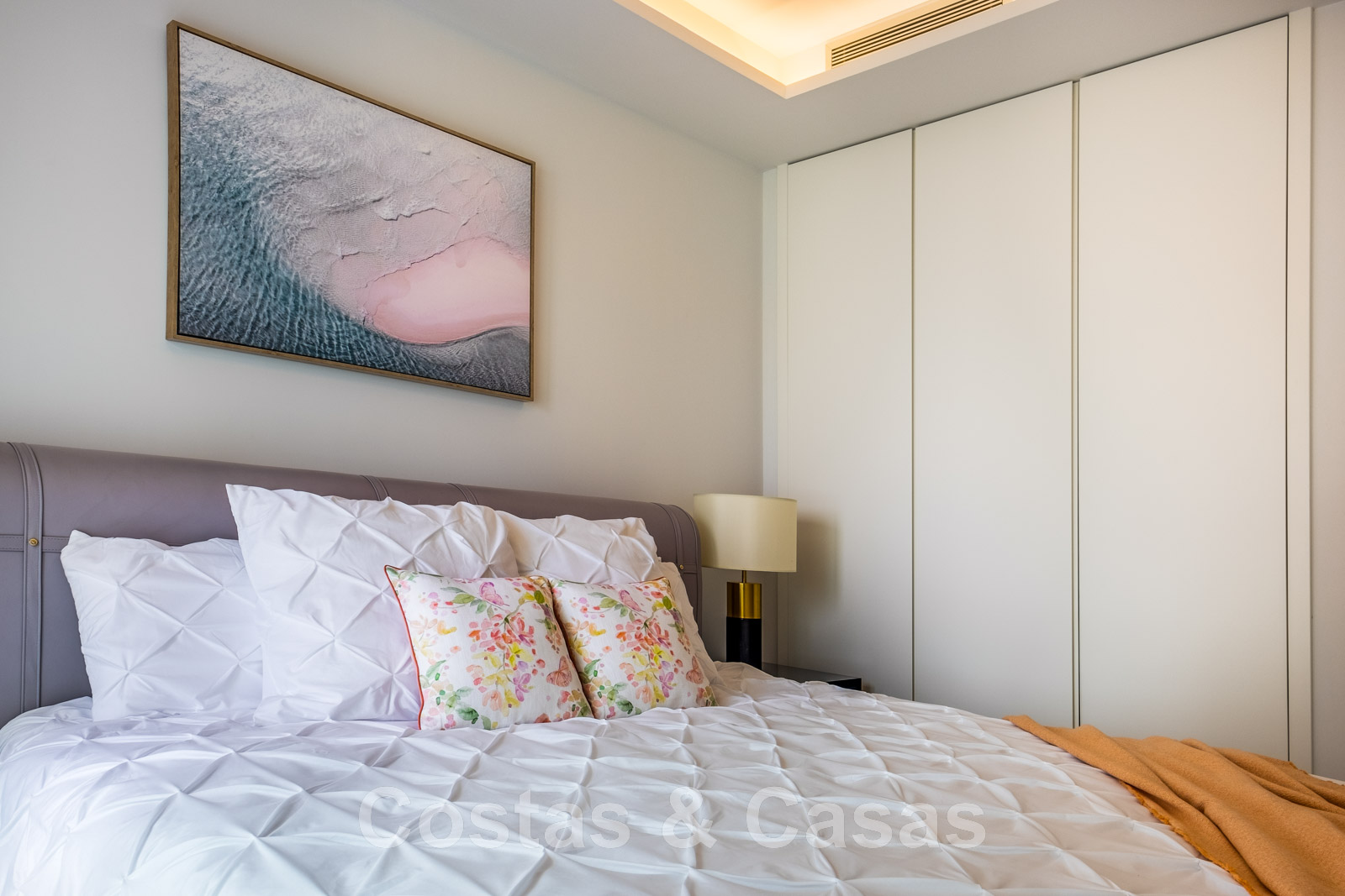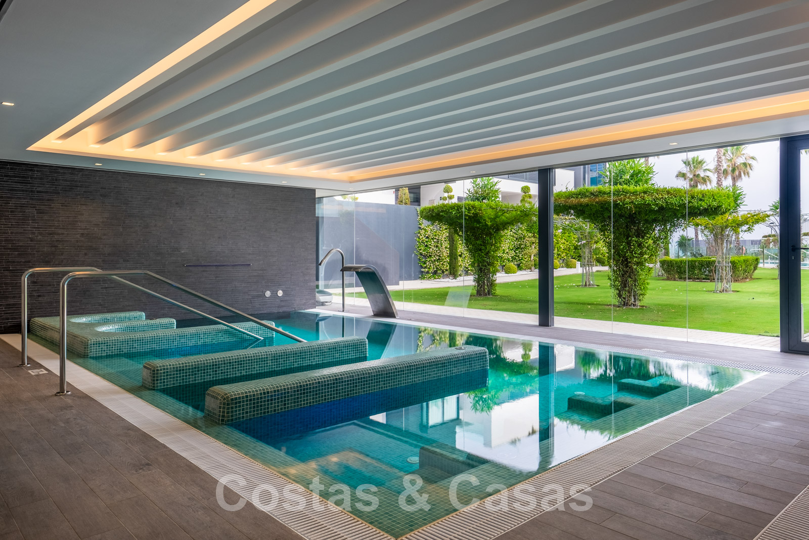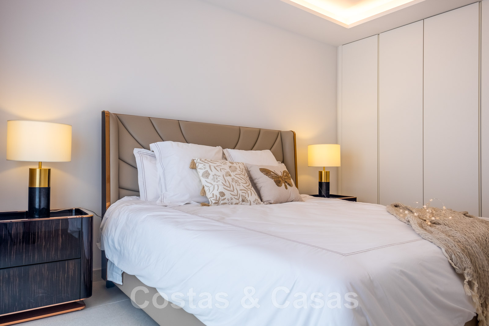Instapklare, modernistisch hoekhuis met frontaal zeezicht te koop op enkele minuten lopen van Estepona centrum