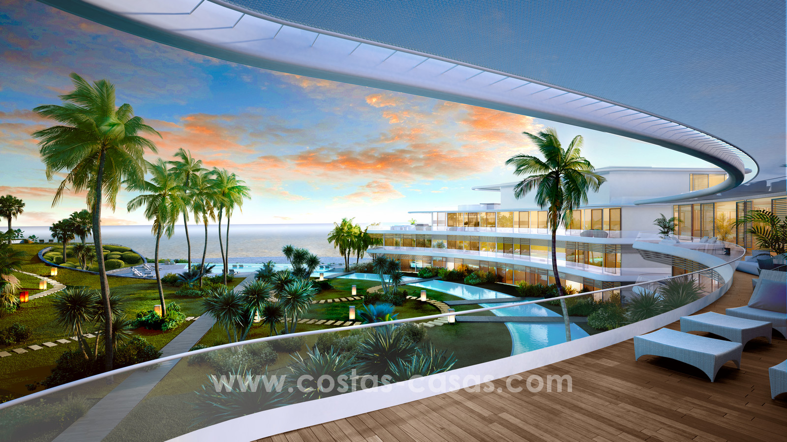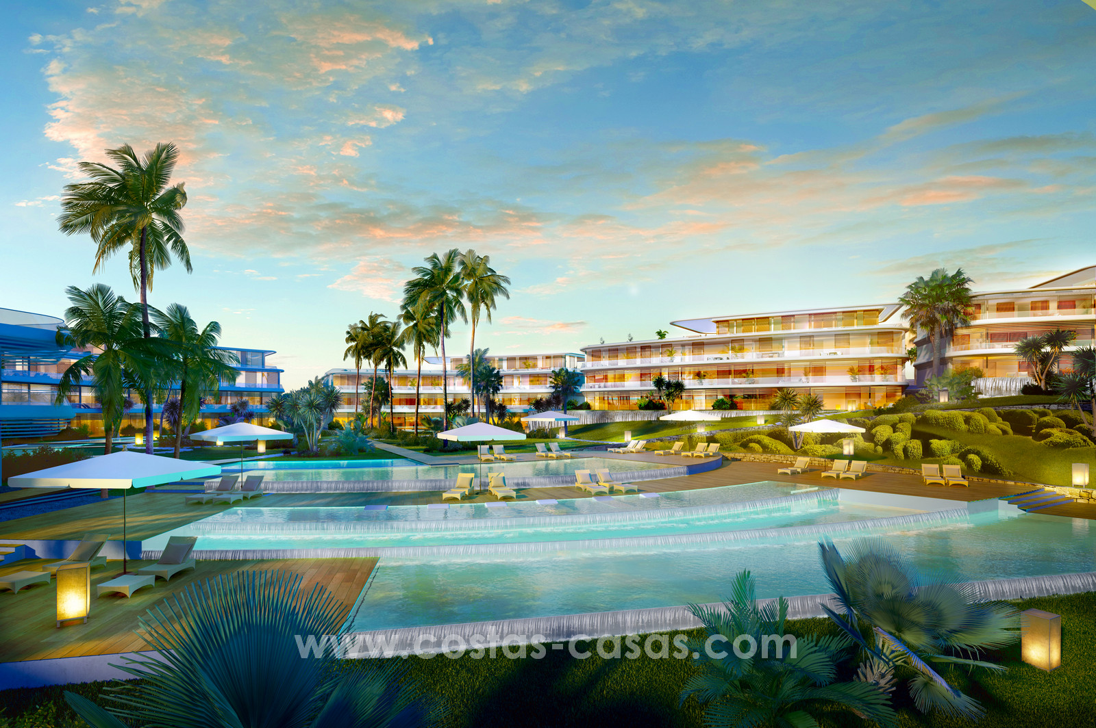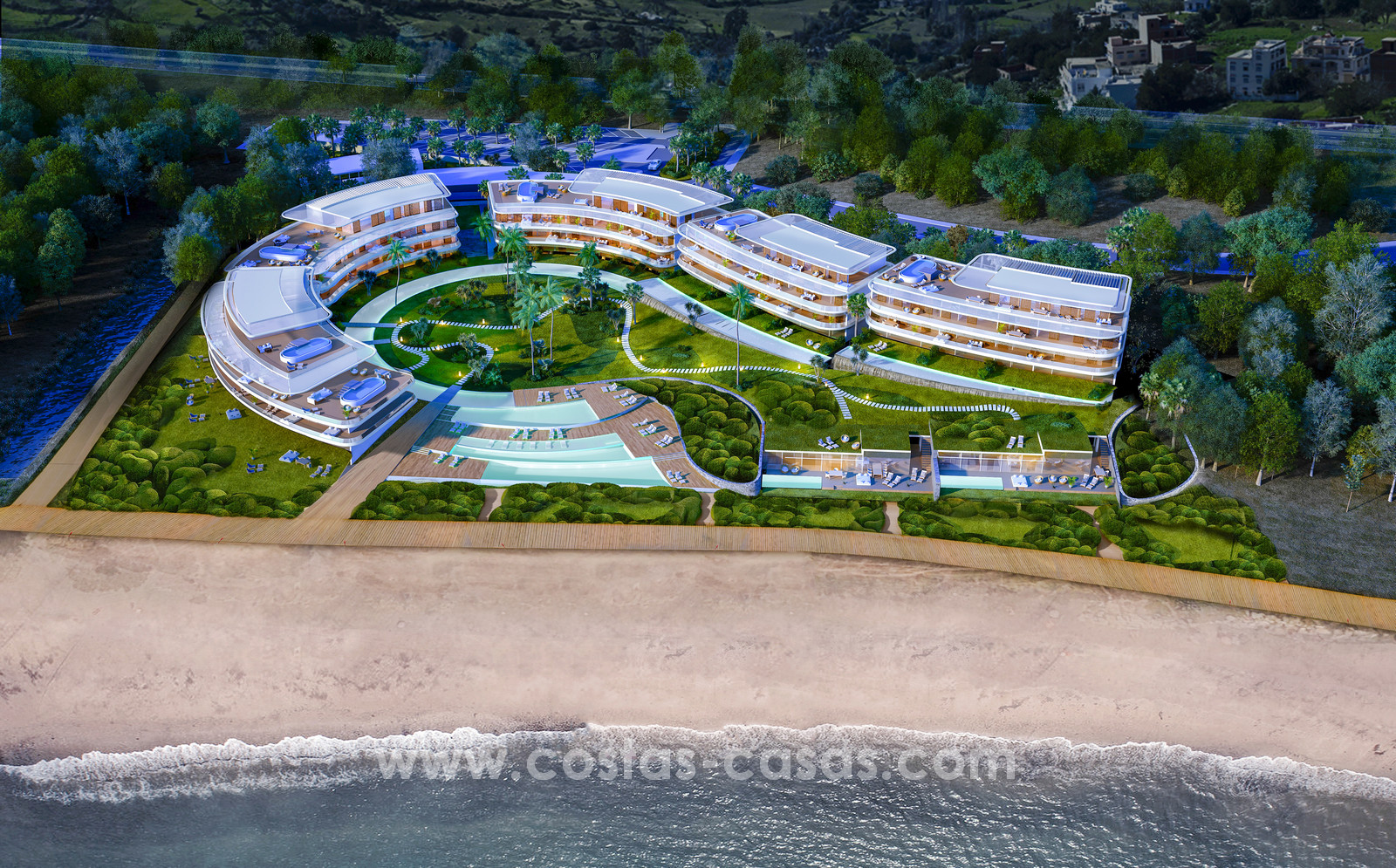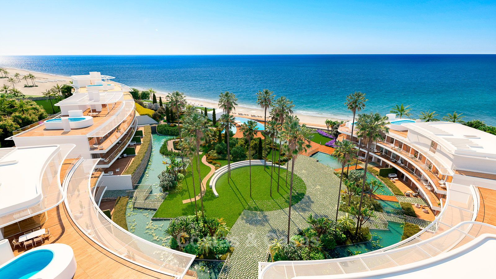 Instapklare sensationele moderne luxe eerstelijns strand appartementen te koop in Estepona, Costa del Sol
