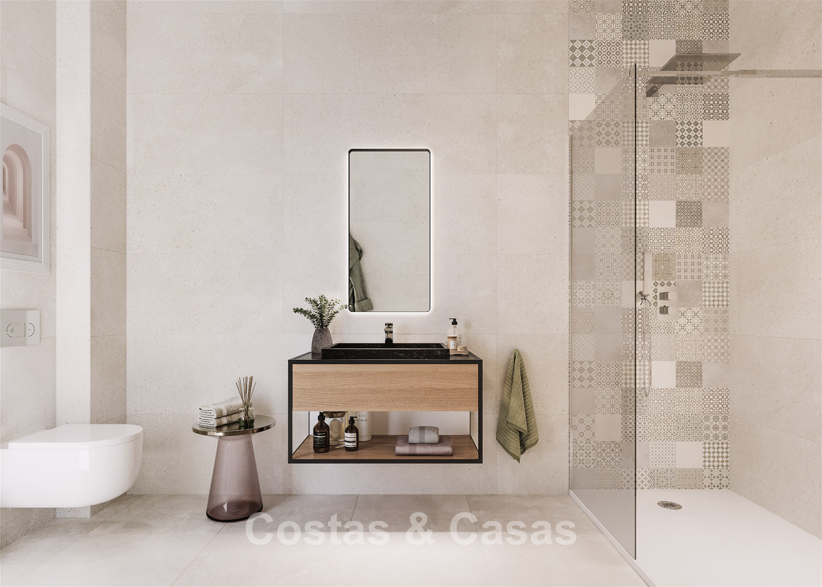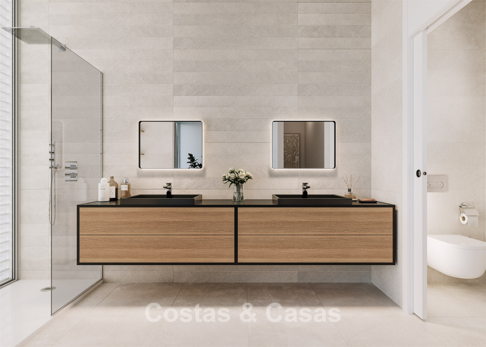 3 slaapkamers, 4 badkamers en een apart gastentoilet.