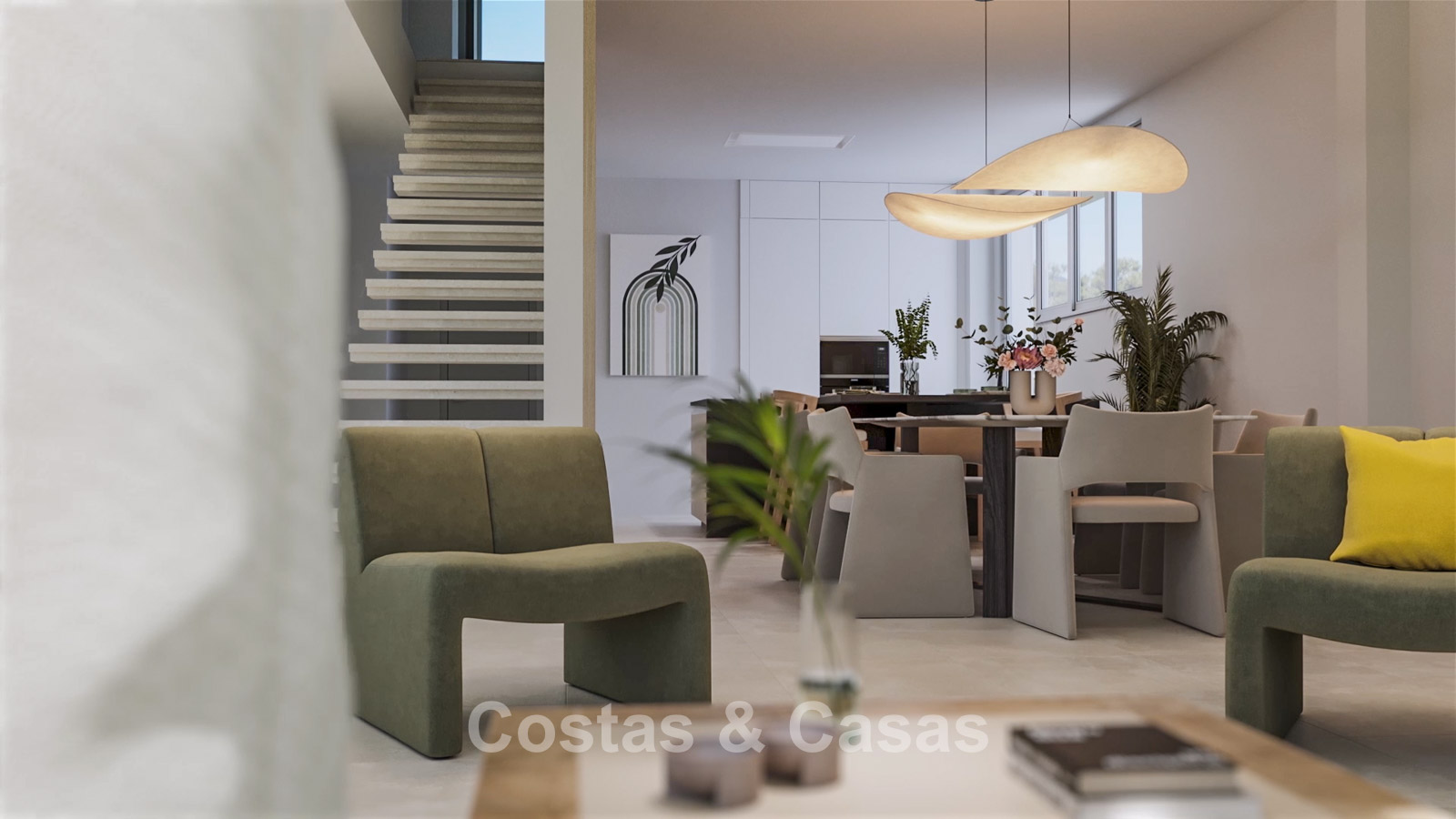 Een dynamisch interieur met open lay-out.
