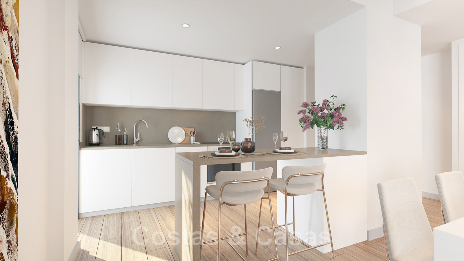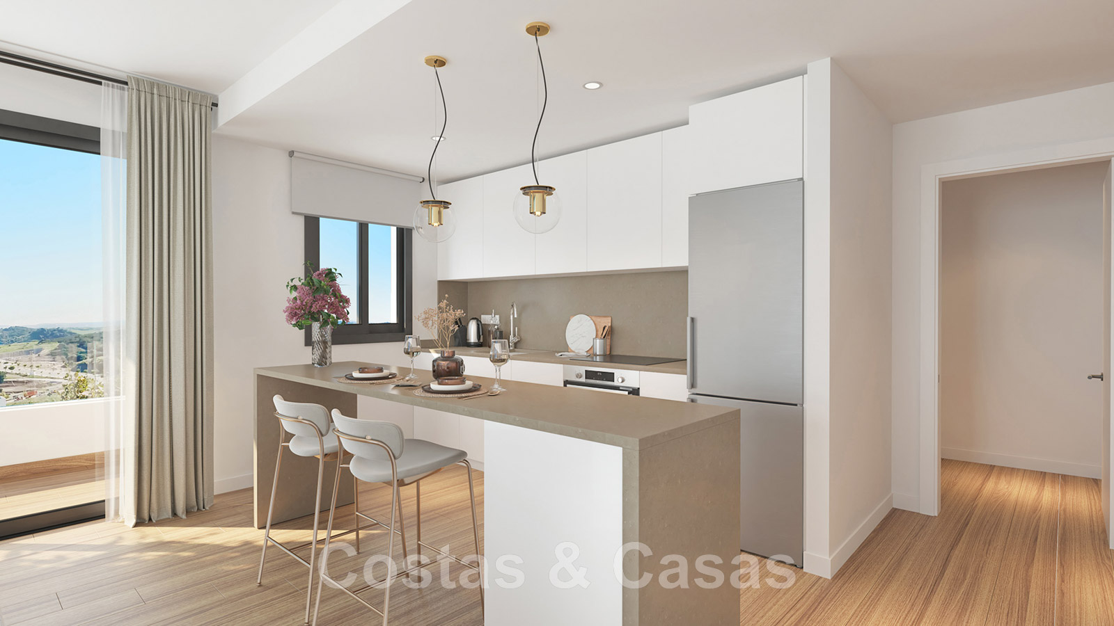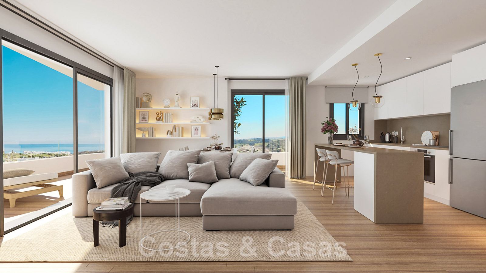 Moderne 2, 3 en 4 slaapkamerappartementen te koop in een nieuw project met open zeezicht in Estepona stad