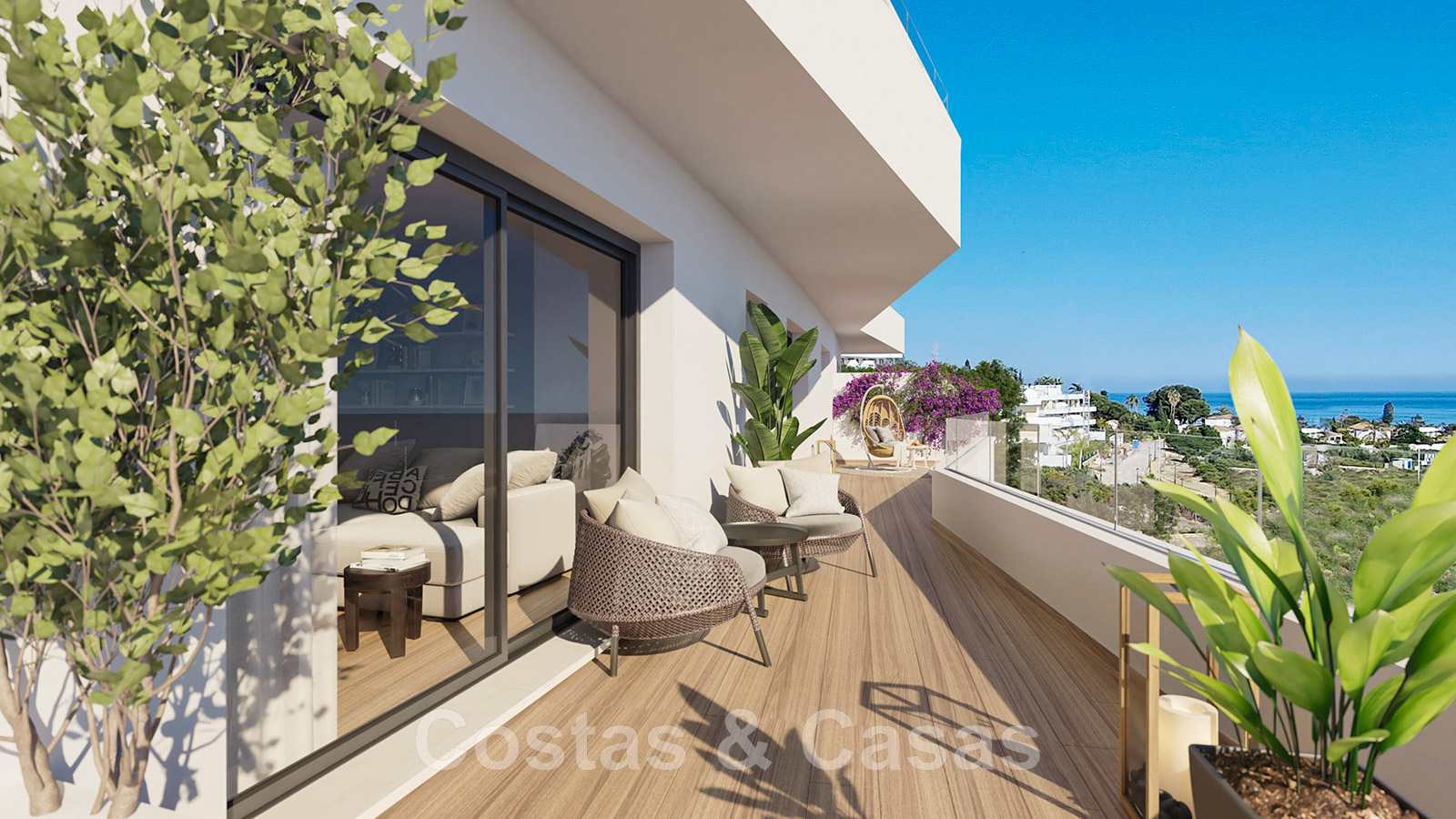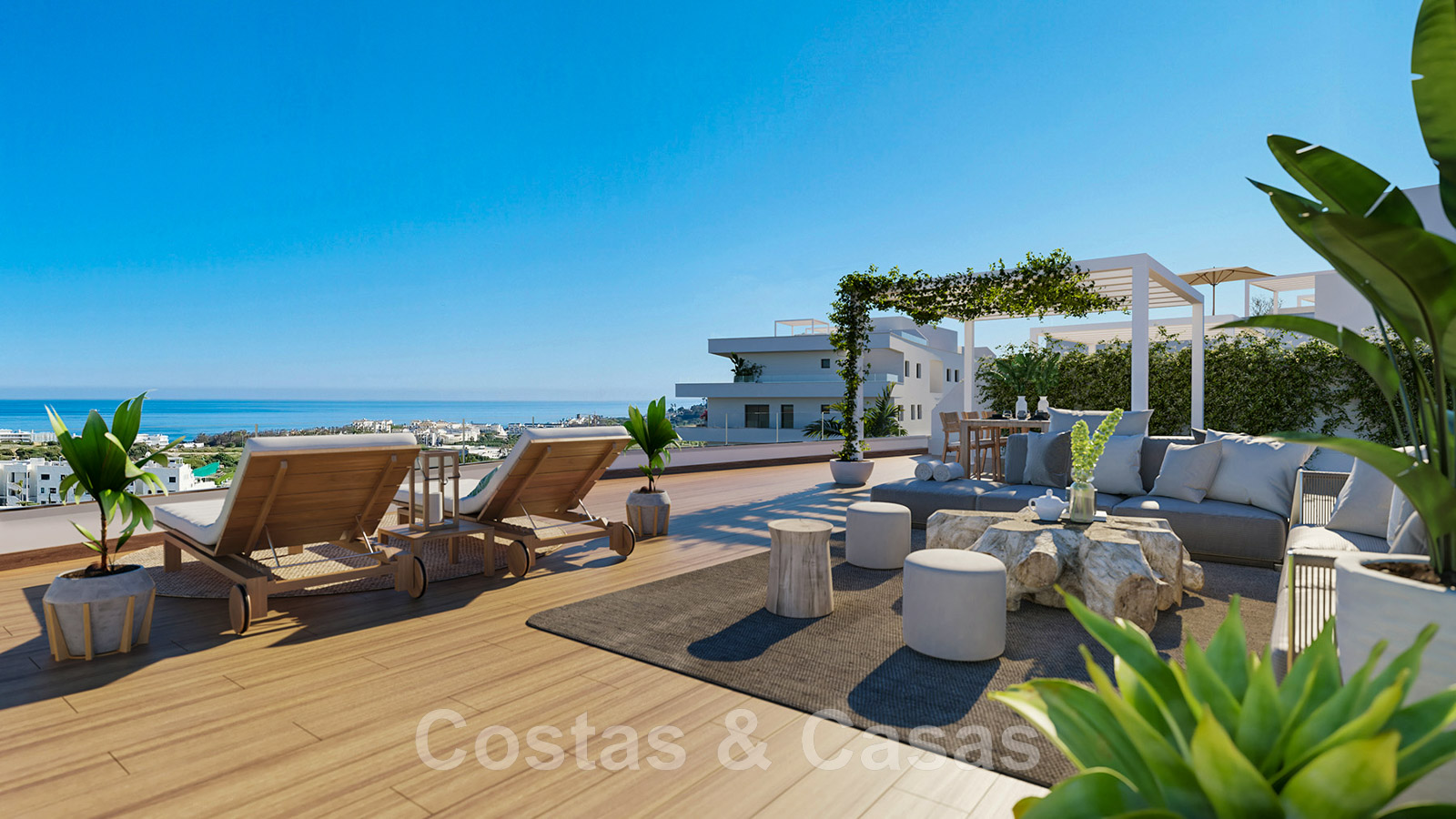 Luxueuze nieuwbouwappartementen in eigentijdse stijl te koop met een ruim terras en panoramisch zeezicht in Estepona stad