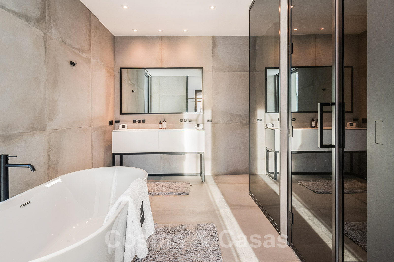 De villa in een moderne mediterrane stijl werd recent gerenoveerd met kwalitatieve materialen en technologieën.