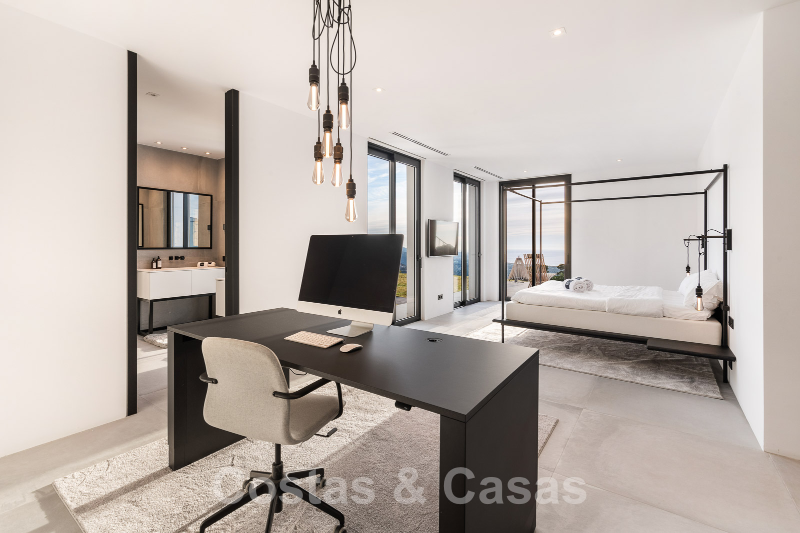 Riante master suite met grote inloopkast en toegang tot de buitenruimte.