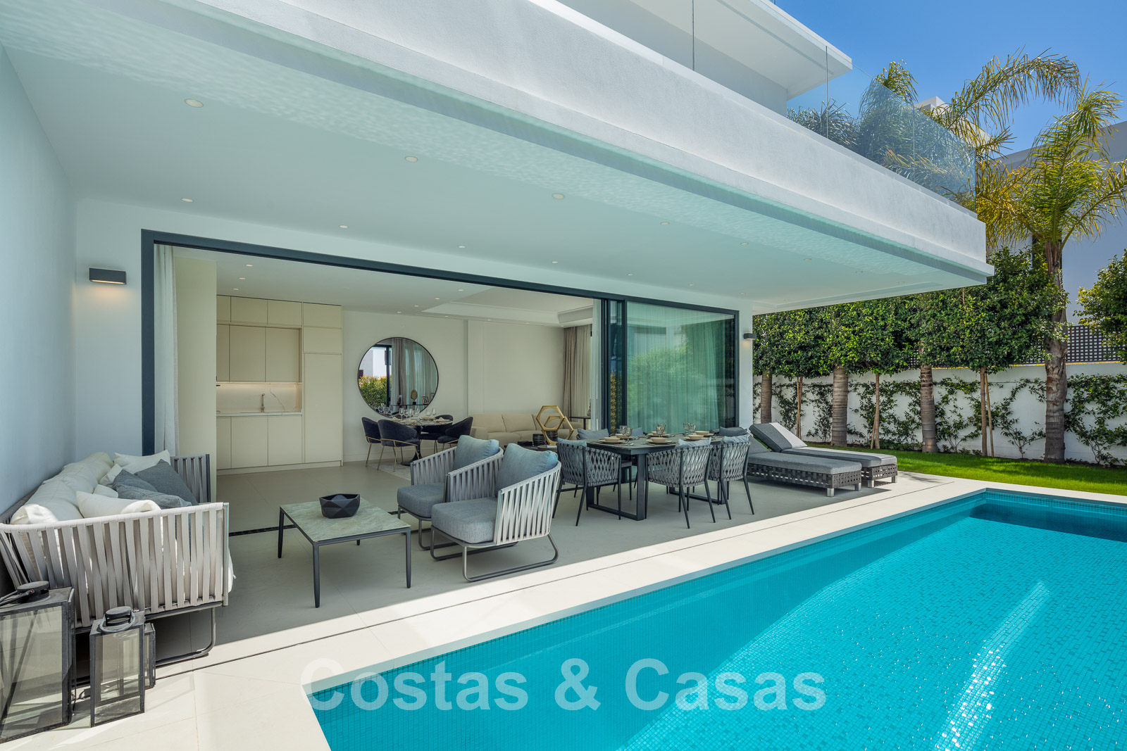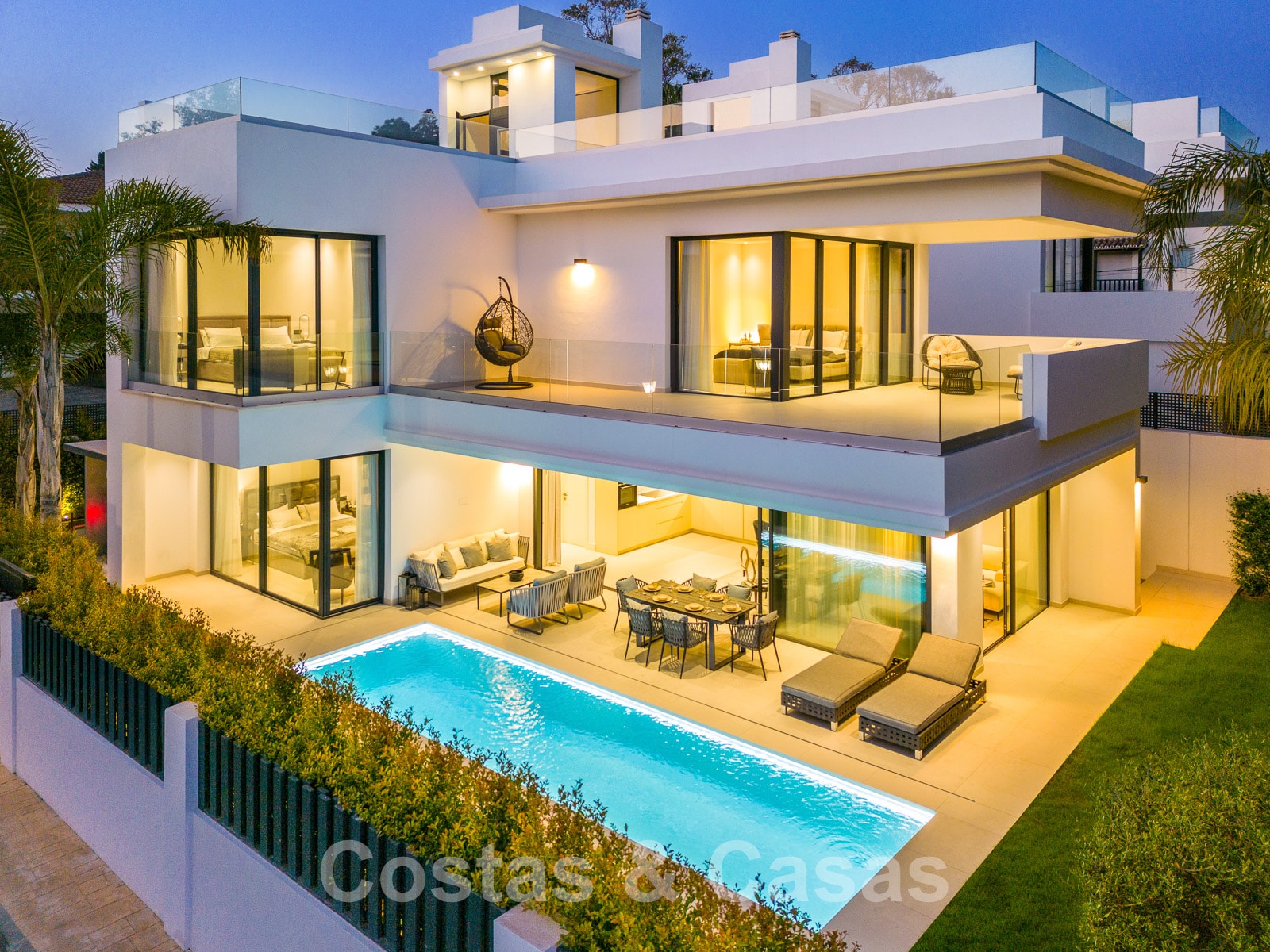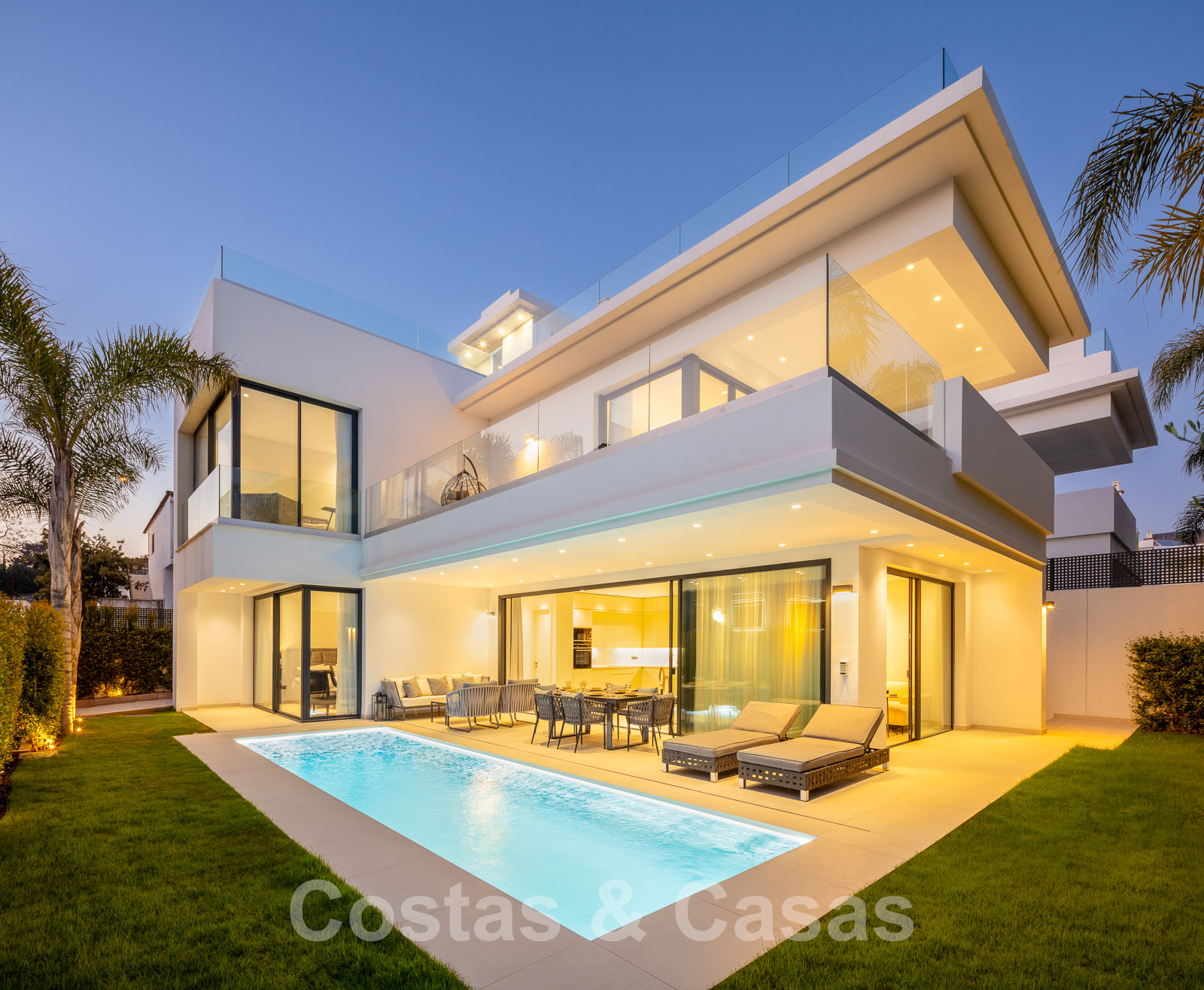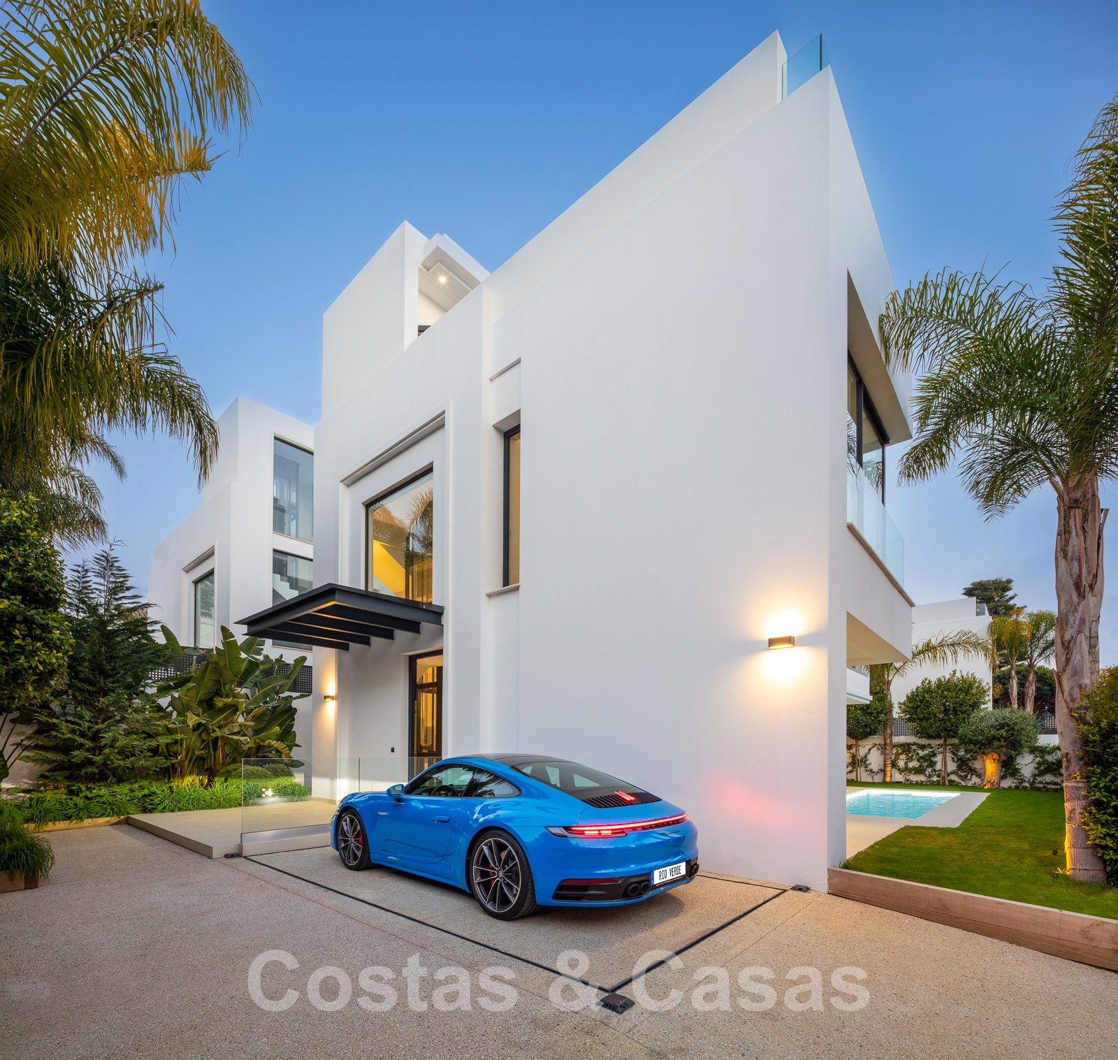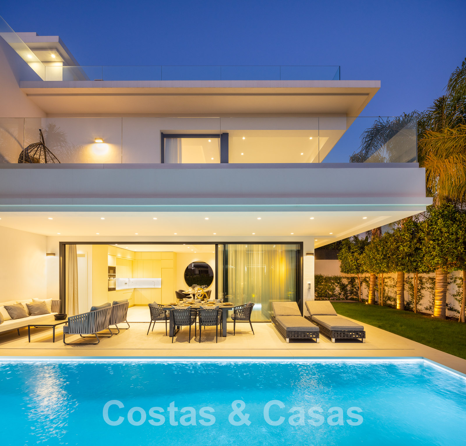 Moderne design villa te koop op korte wandelafstand van het strand en beachclubs en op loopafstand van de promenade en het centrum van San Pedro, Marbella