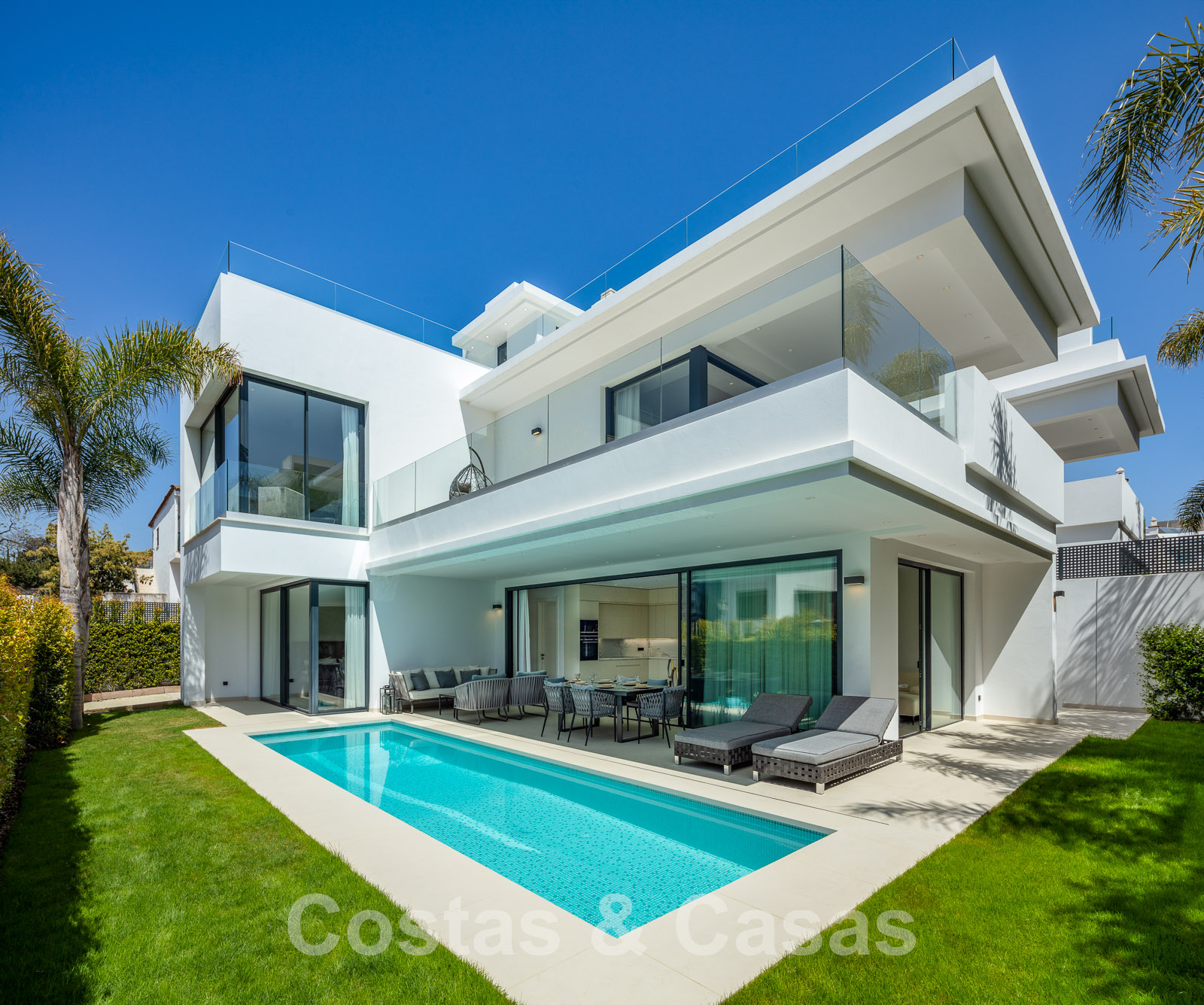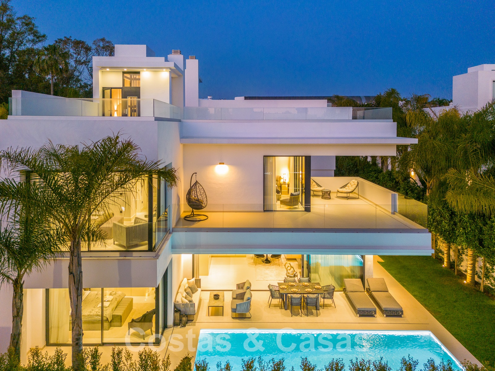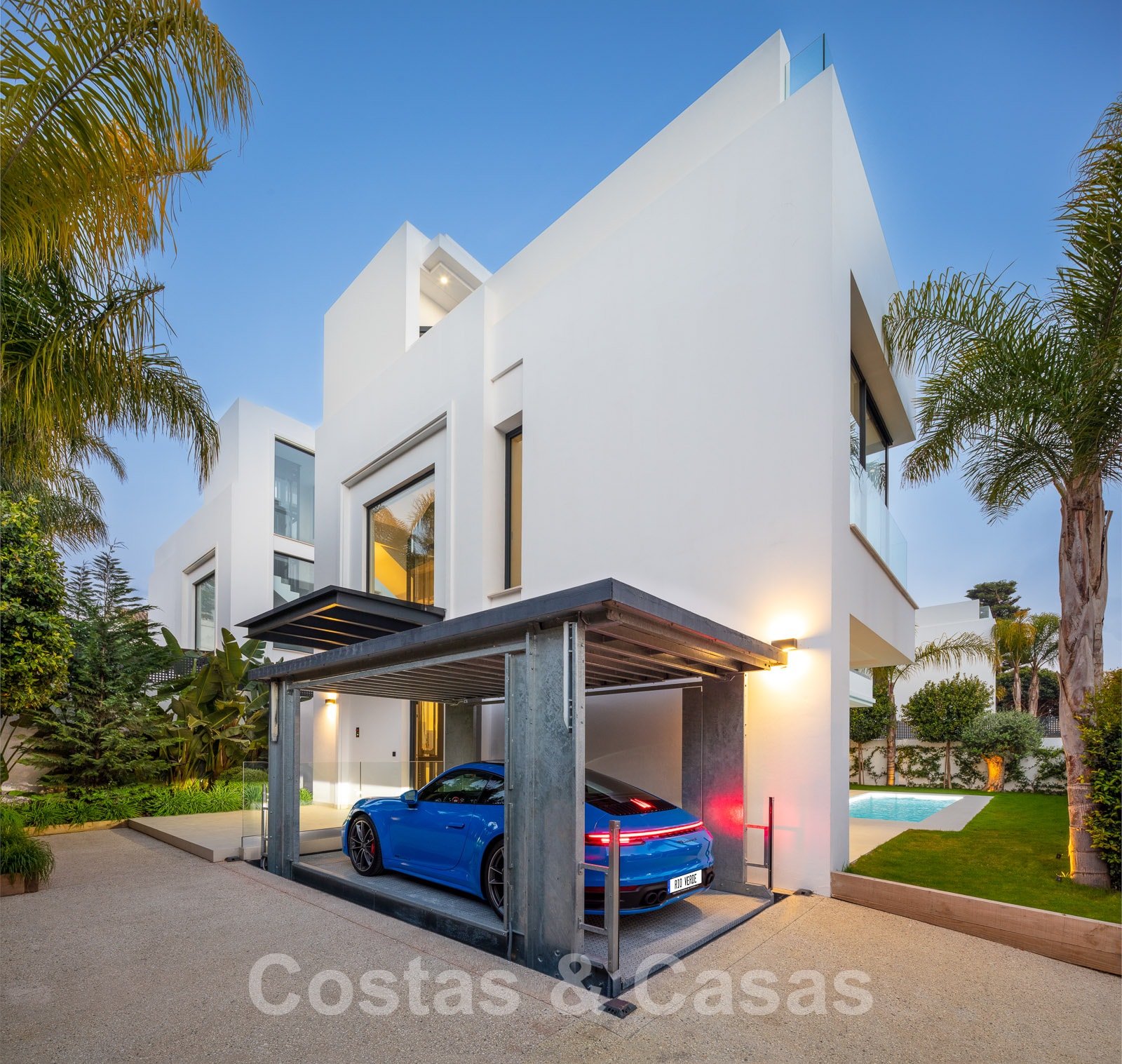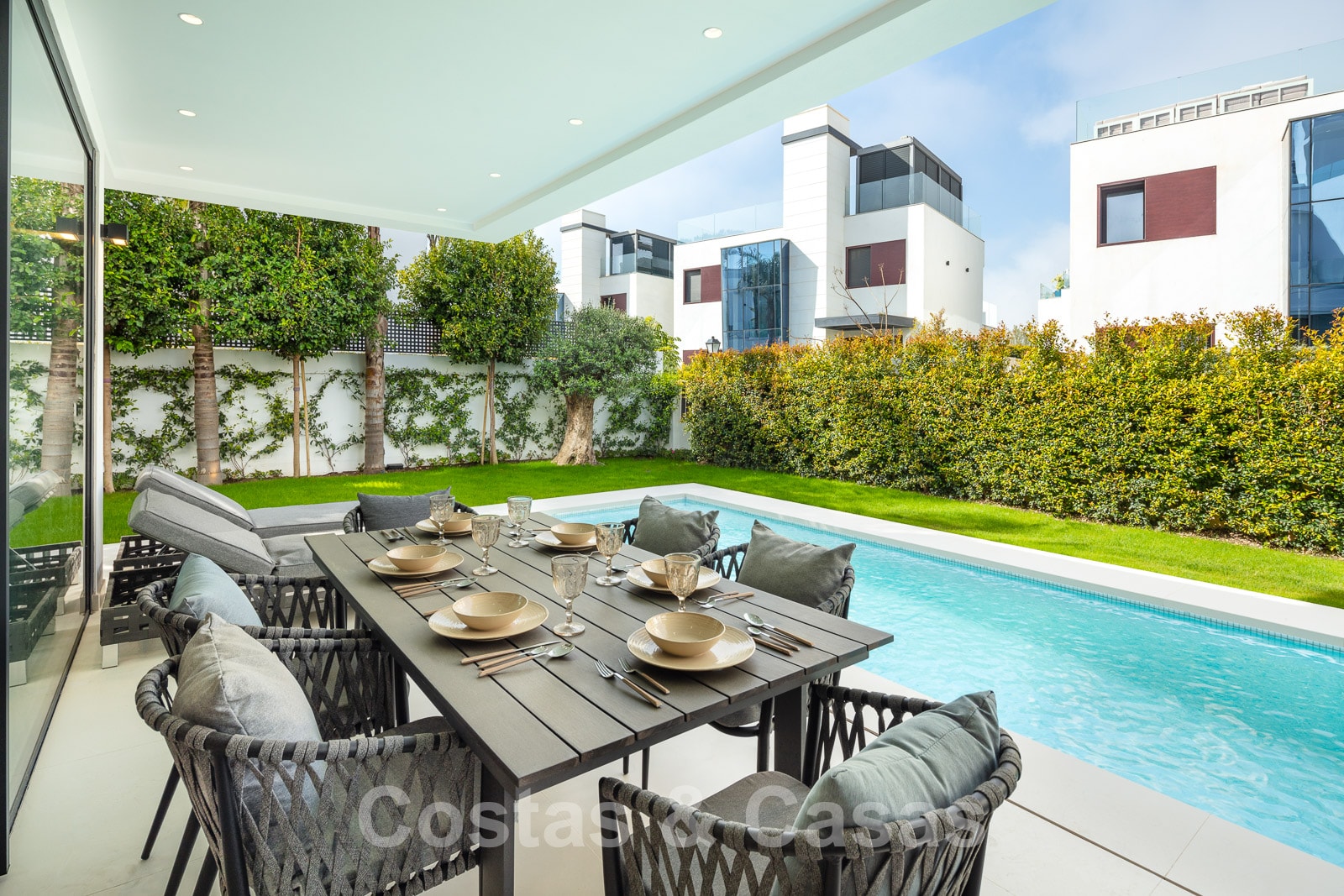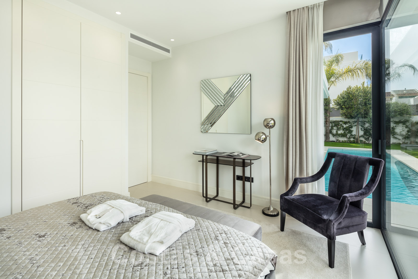 Moderne design villa te koop op korte wandelafstand van het strand en beachclubs en op loopafstand van de promenade en het centrum van San Pedro, Marbella
