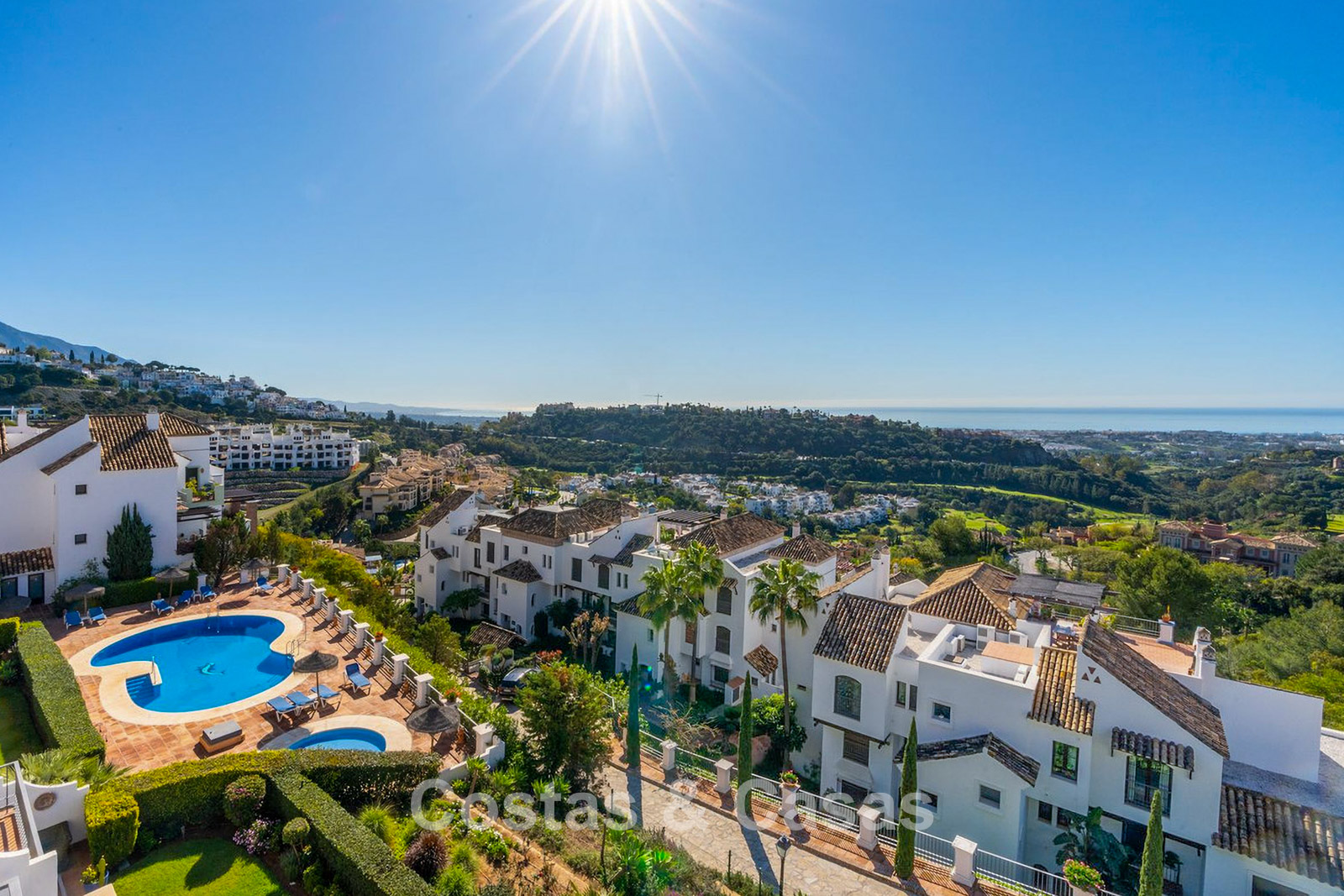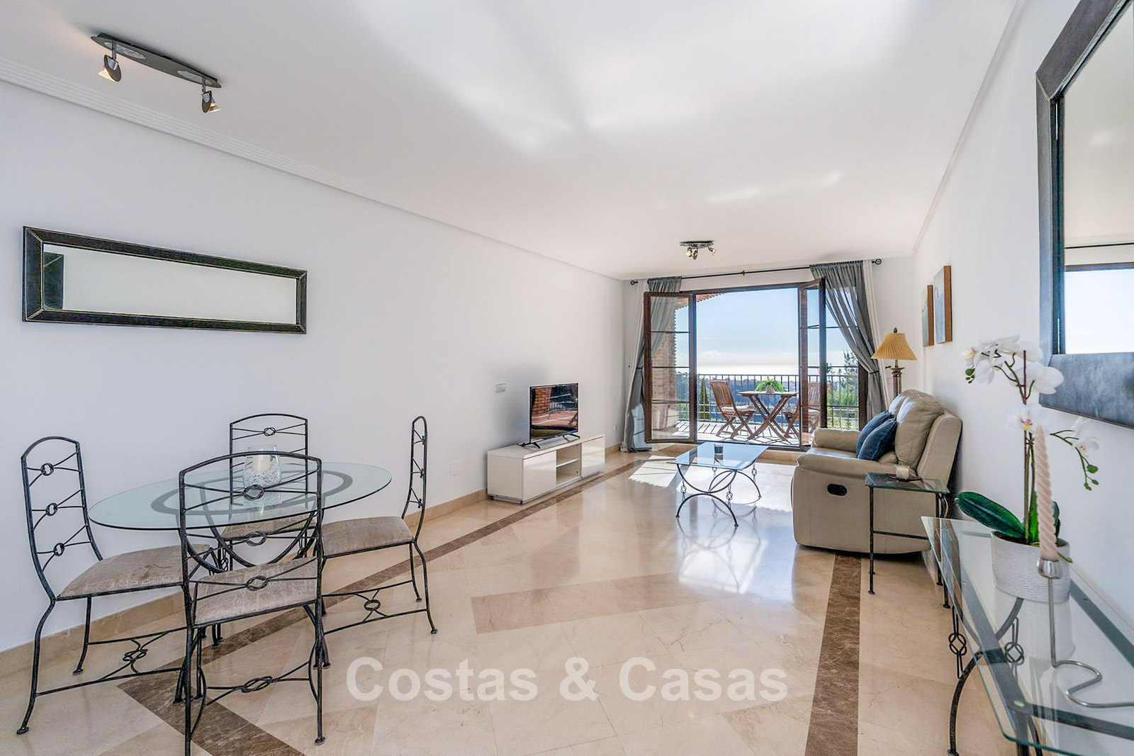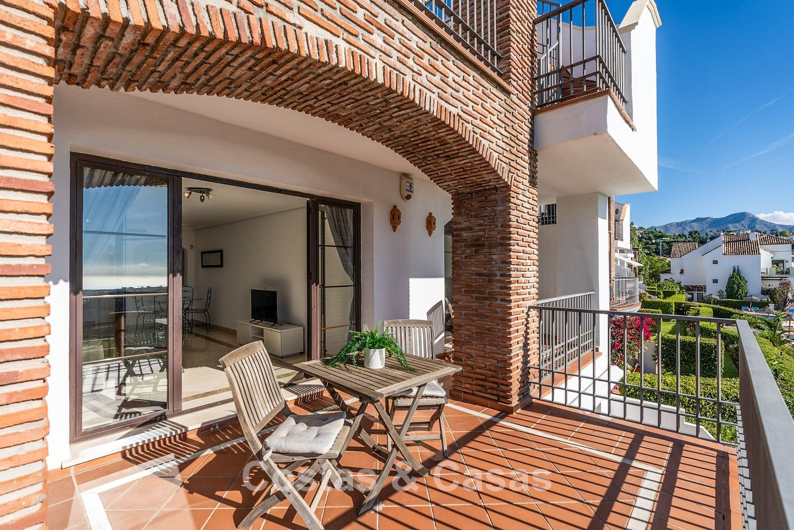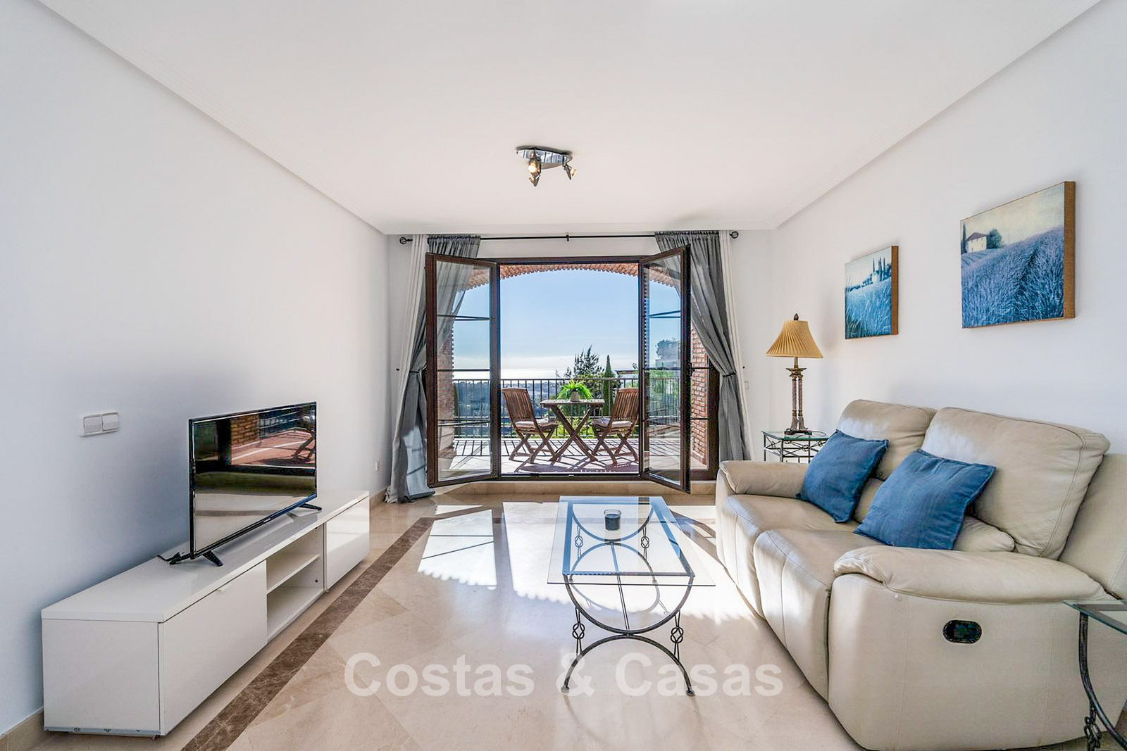 Verzorgd Mediterraan appartement met golf- en zeezicht te koop in een golfresort in de heuvels van Marbella - Benahavis