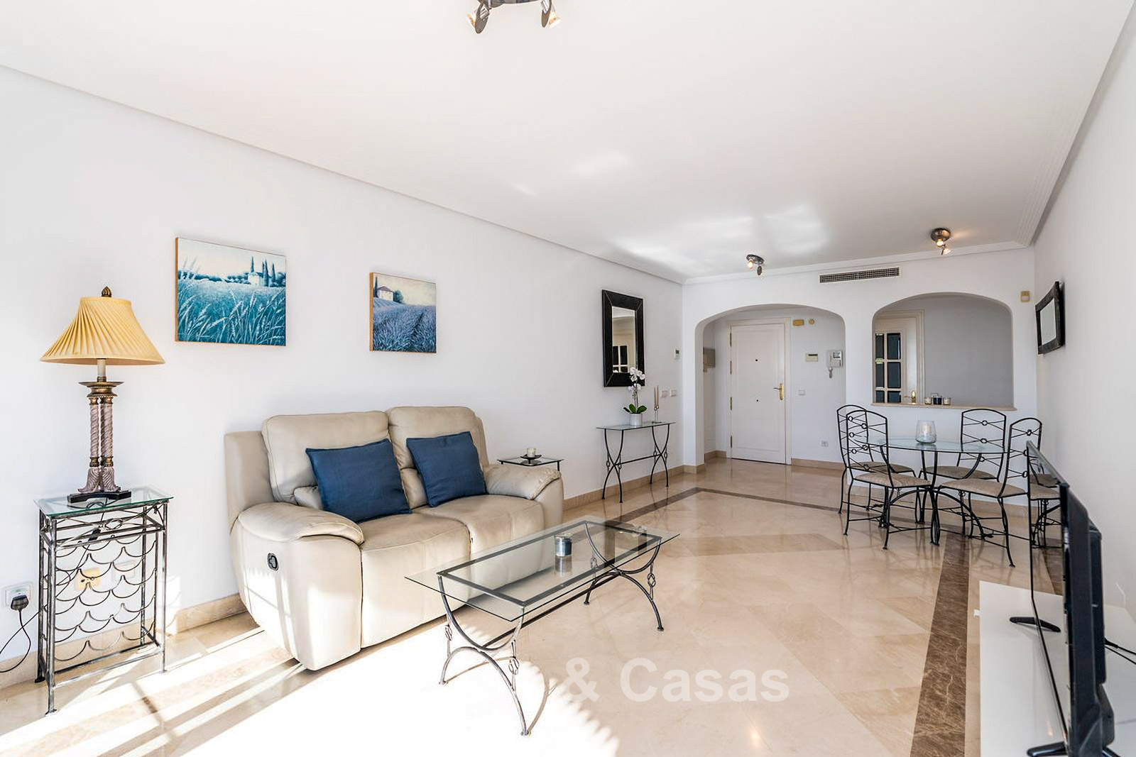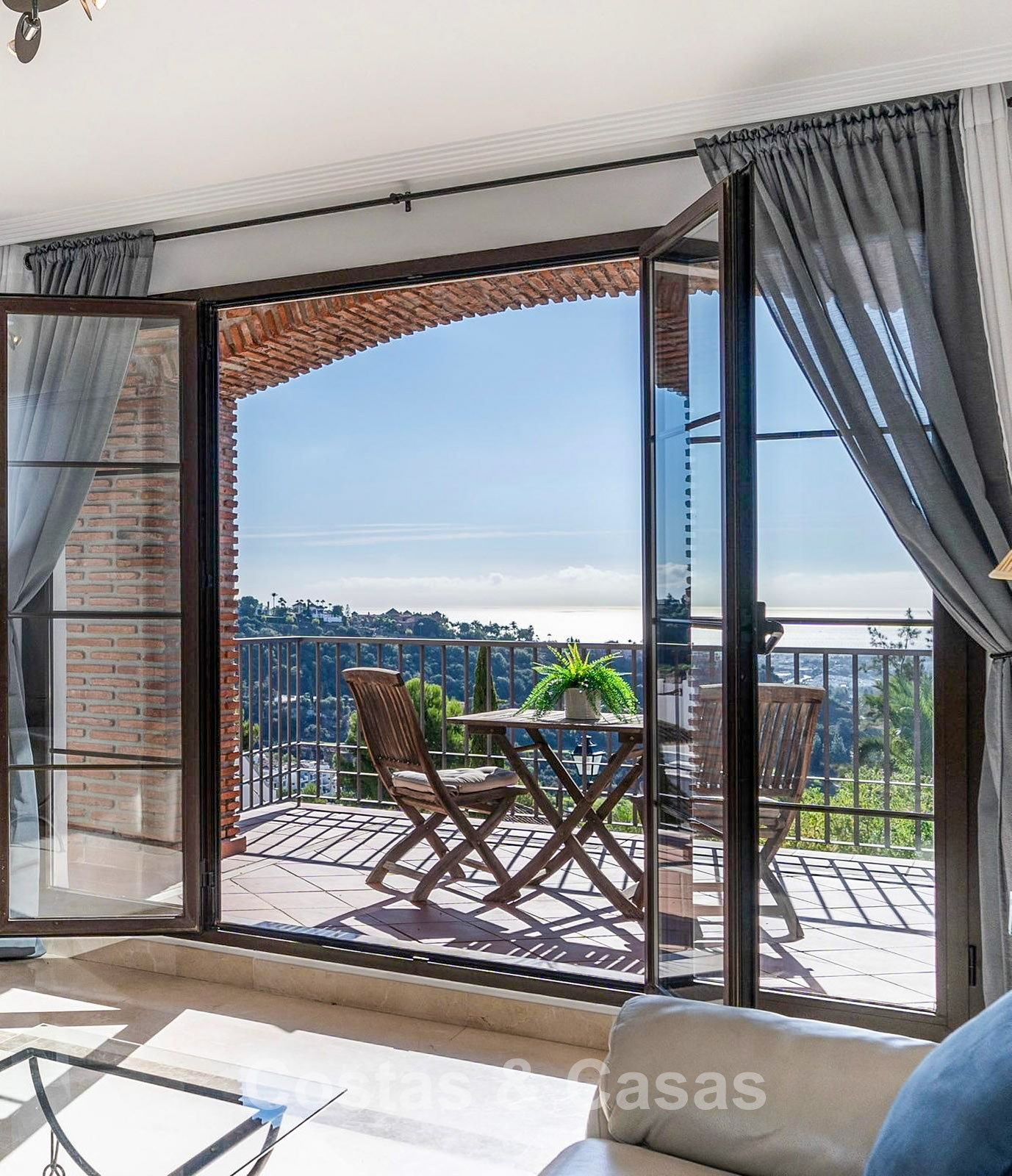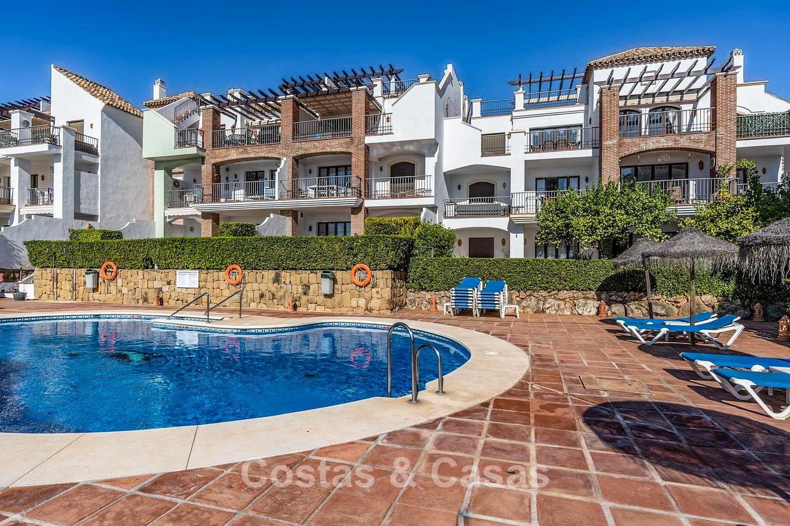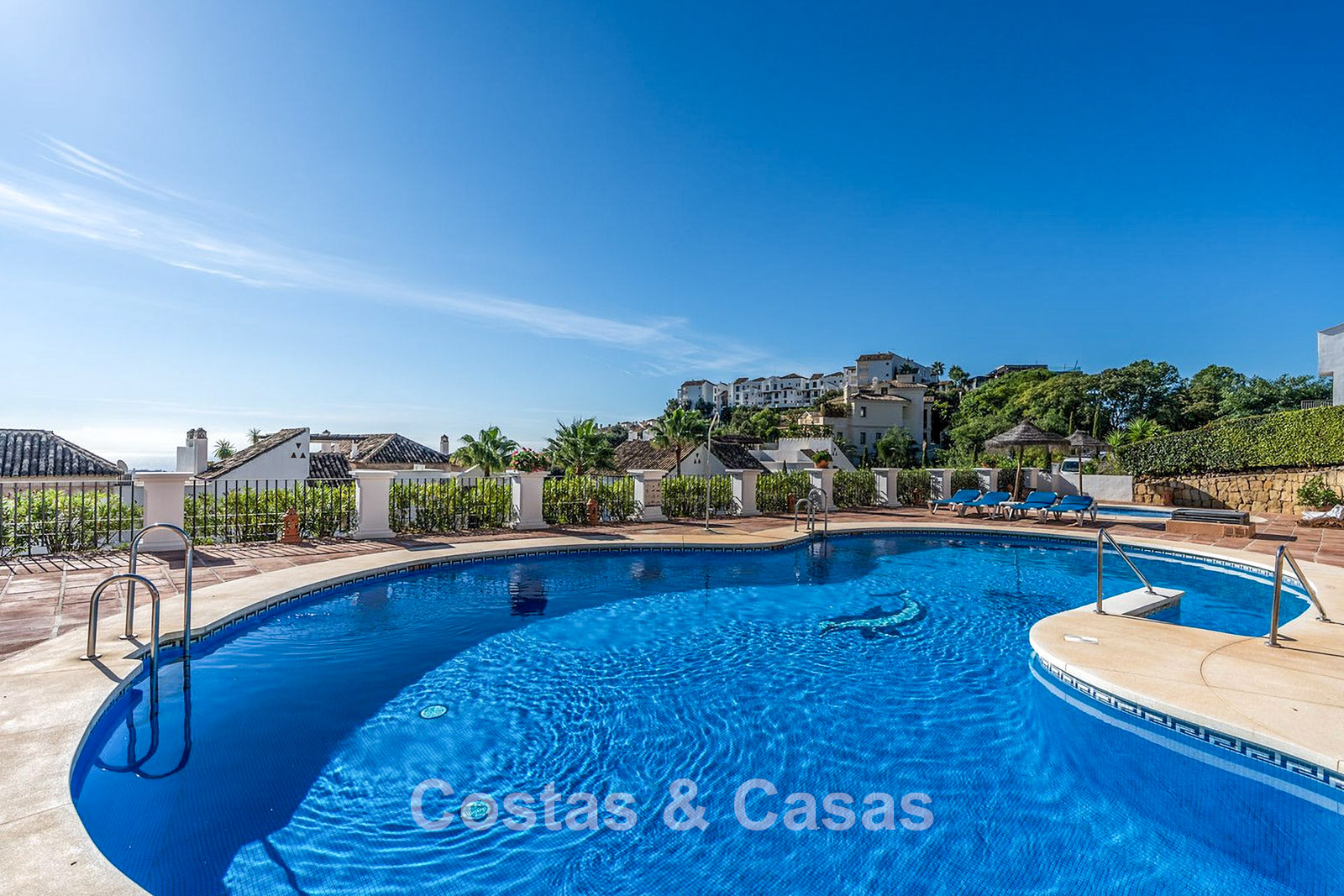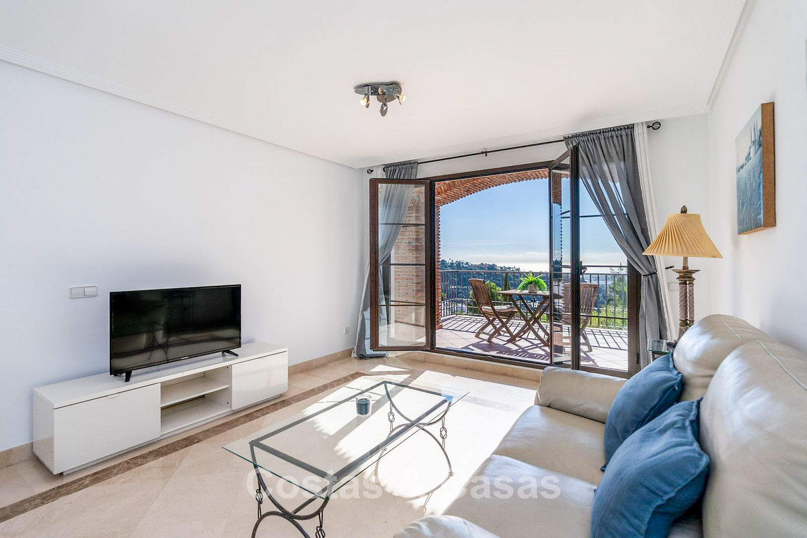 Verzorgd Mediterraan appartement met golf- en zeezicht te koop in een golfresort in de heuvels van Marbella - Benahavis