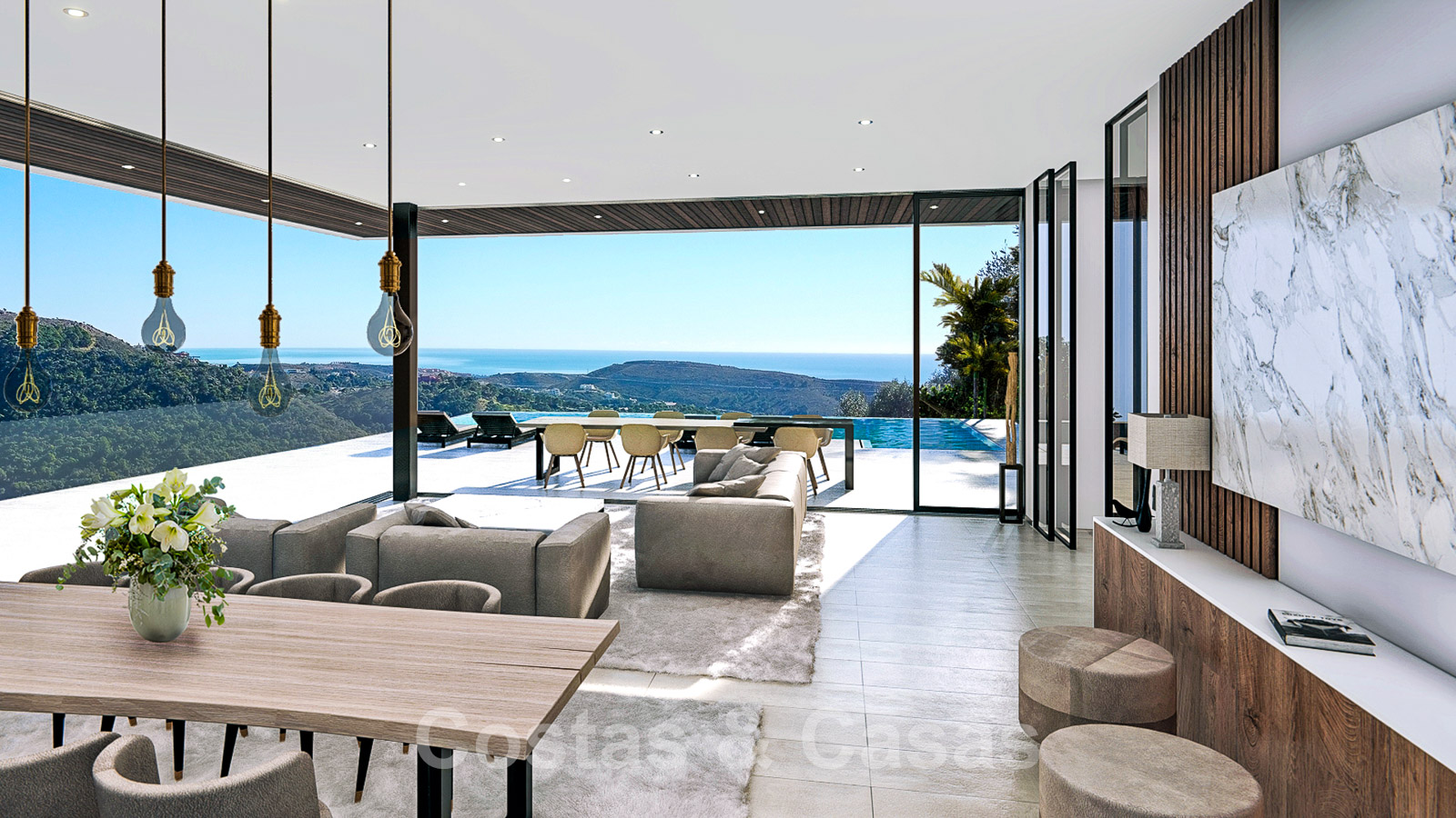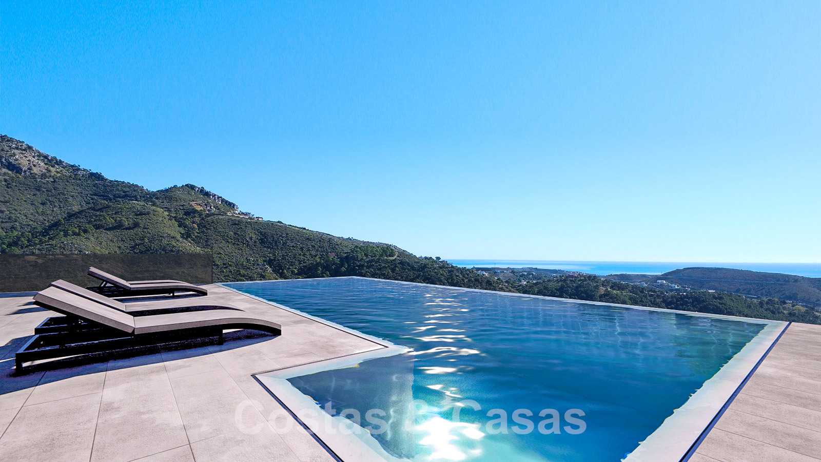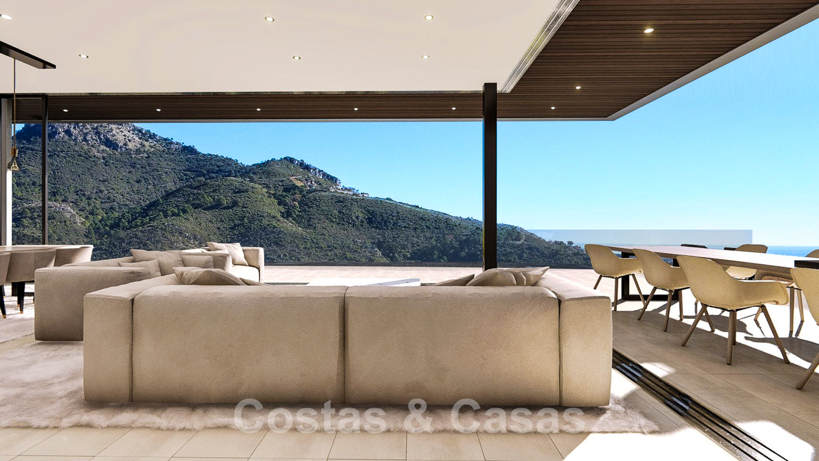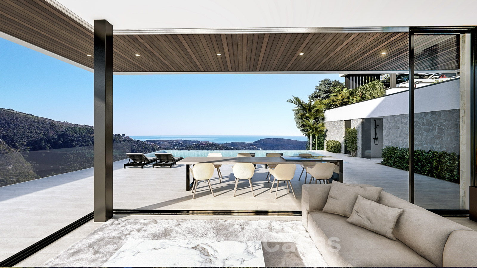 Innovatieve nieuwbouwvilla te koop, passend in de geweldige natuurlijke omgeving, unieke kijk op het berglandschap en de Middellandse Zee, in een gated resort in Benahavis - Marbella