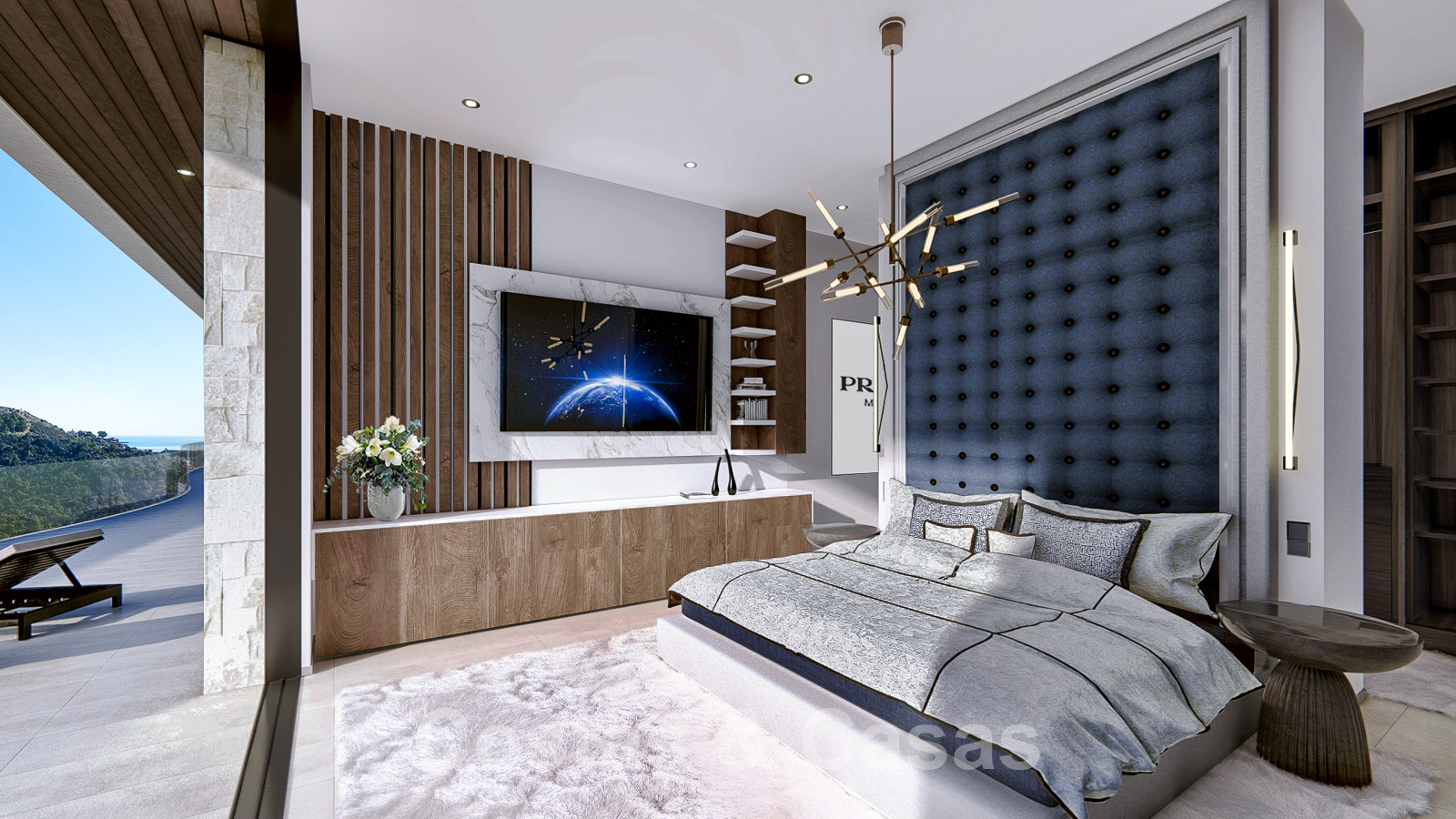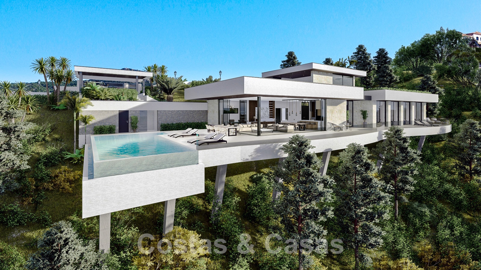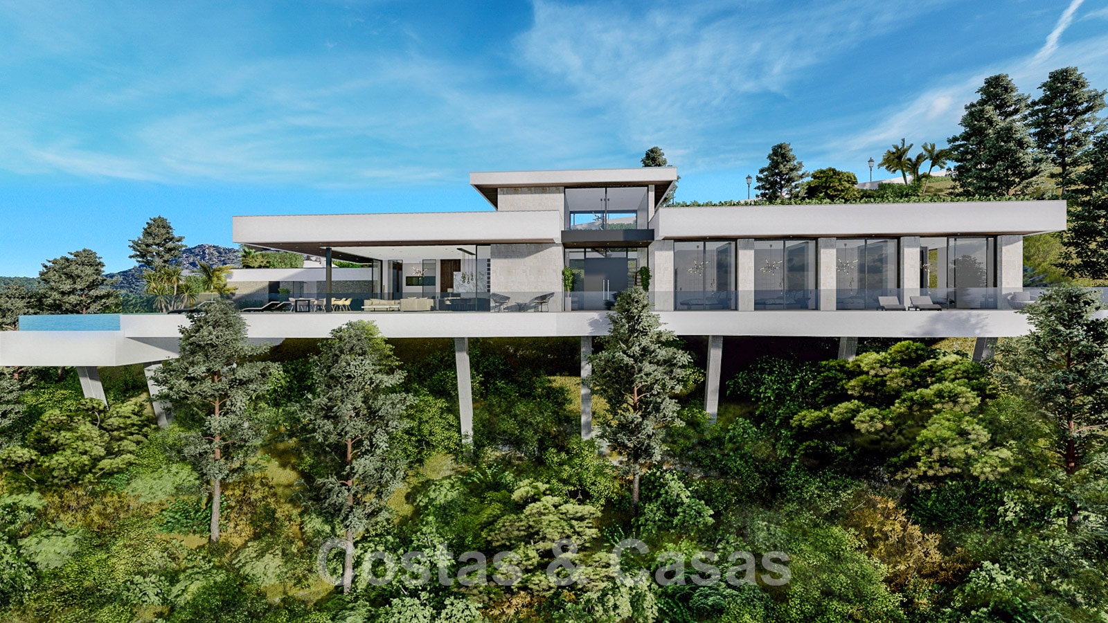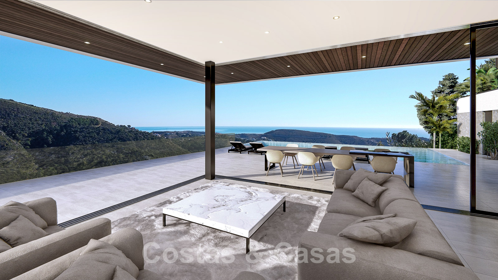 Innovatieve nieuwbouwvilla te koop, passend in de geweldige natuurlijke omgeving, unieke kijk op het berglandschap en de Middellandse Zee, in een gated resort in Benahavis - Marbella