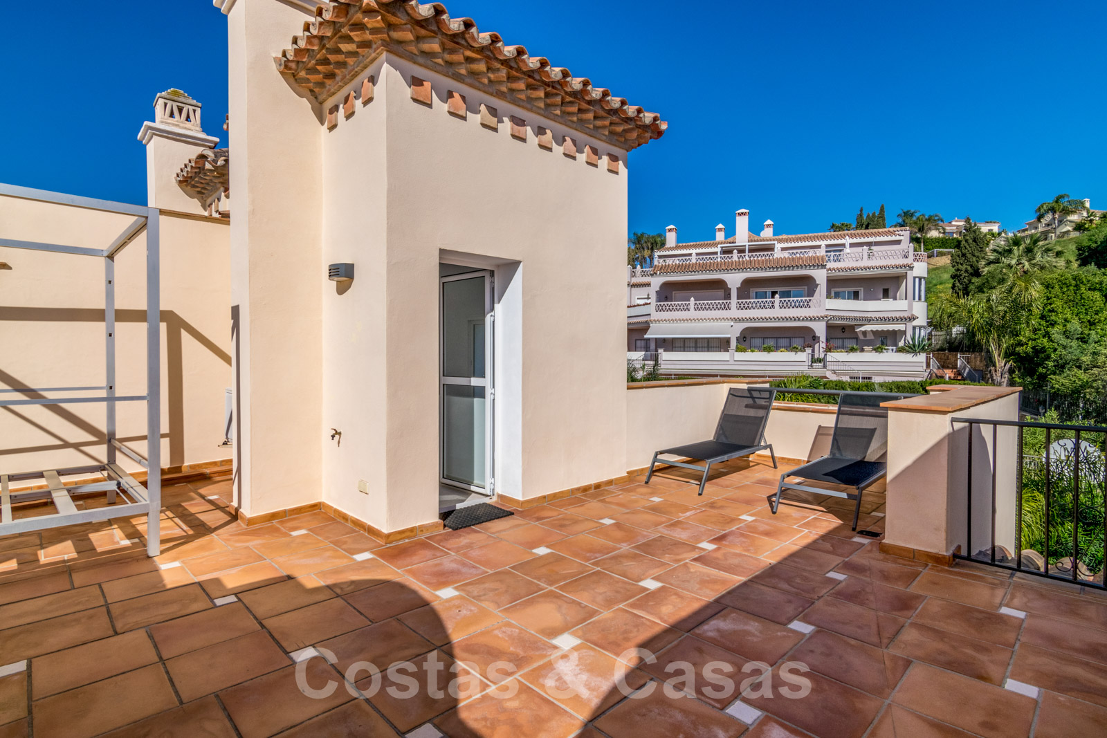 Gezellig, duplex penthouse te koop in de heuvels van Benahavis met mooi uitzicht over het landschap en de zee