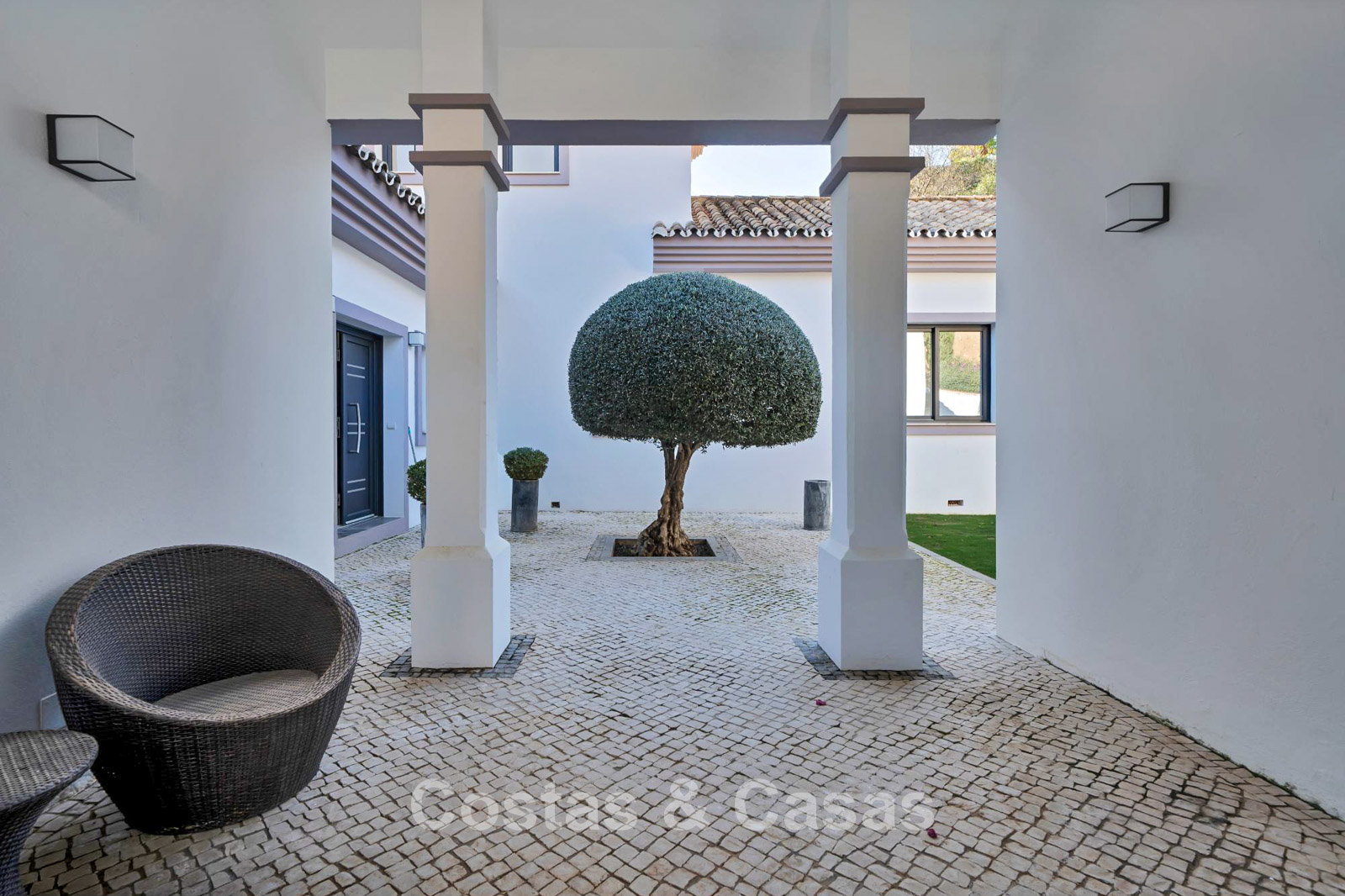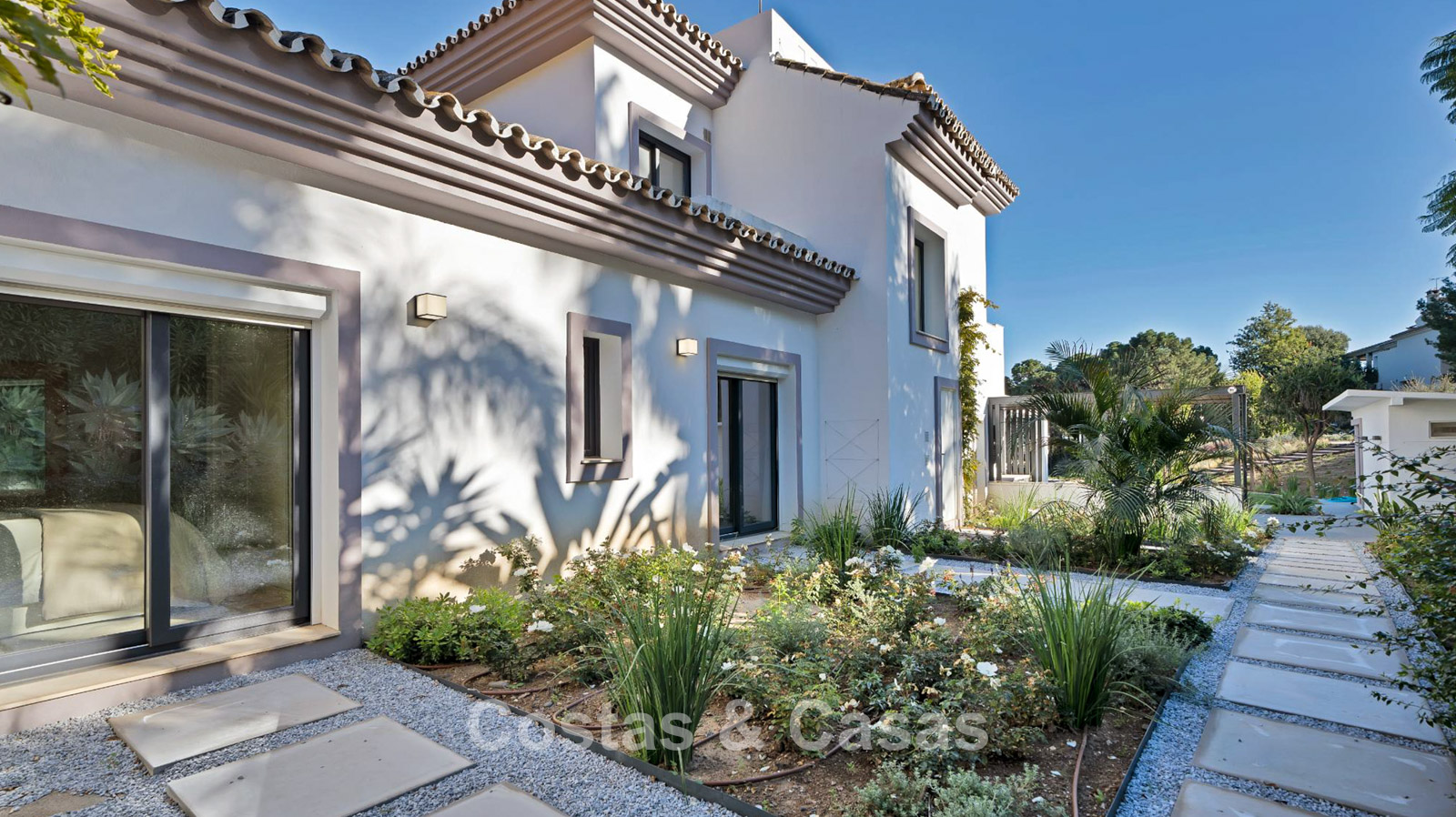 Vrijstaande villa met een traditionele, mediterrane bouwstijl.