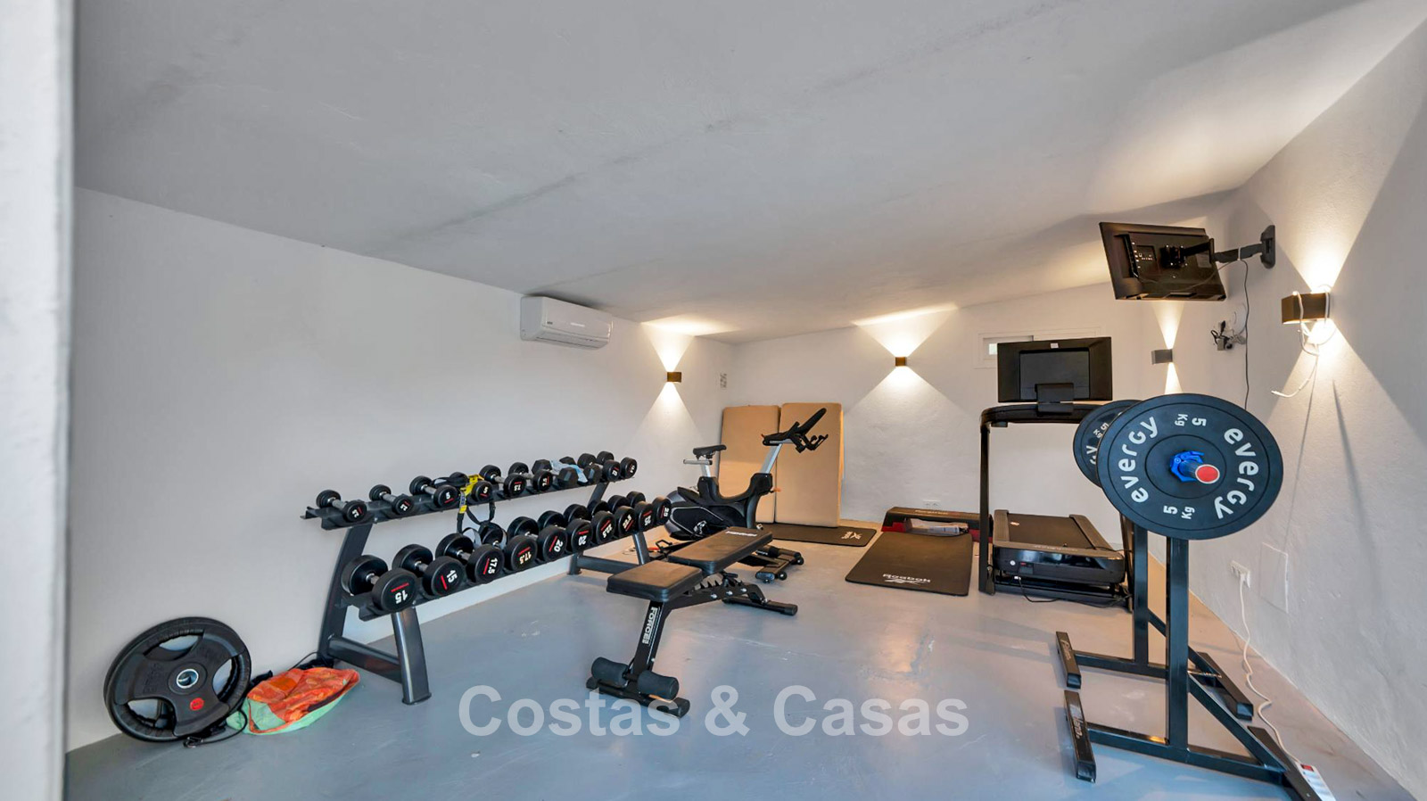 Het bijgebouw wordt momenteel gebruikt als fitnessruimte, maar kan eenvoudig worden omgevormd tot een stijlvol gastenverblijf.