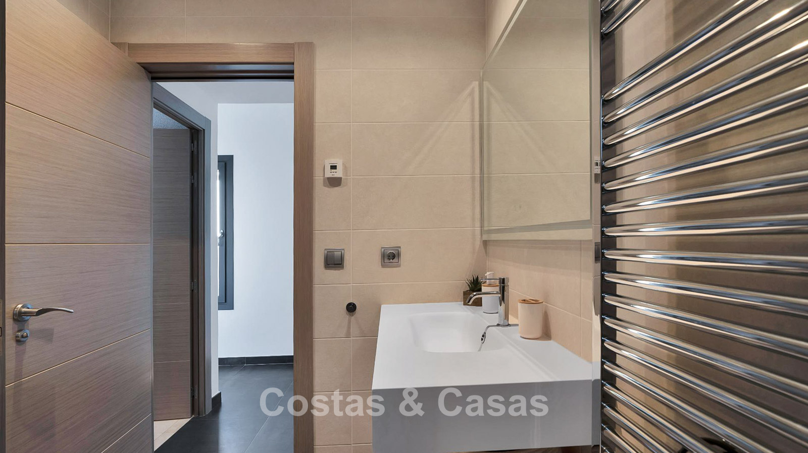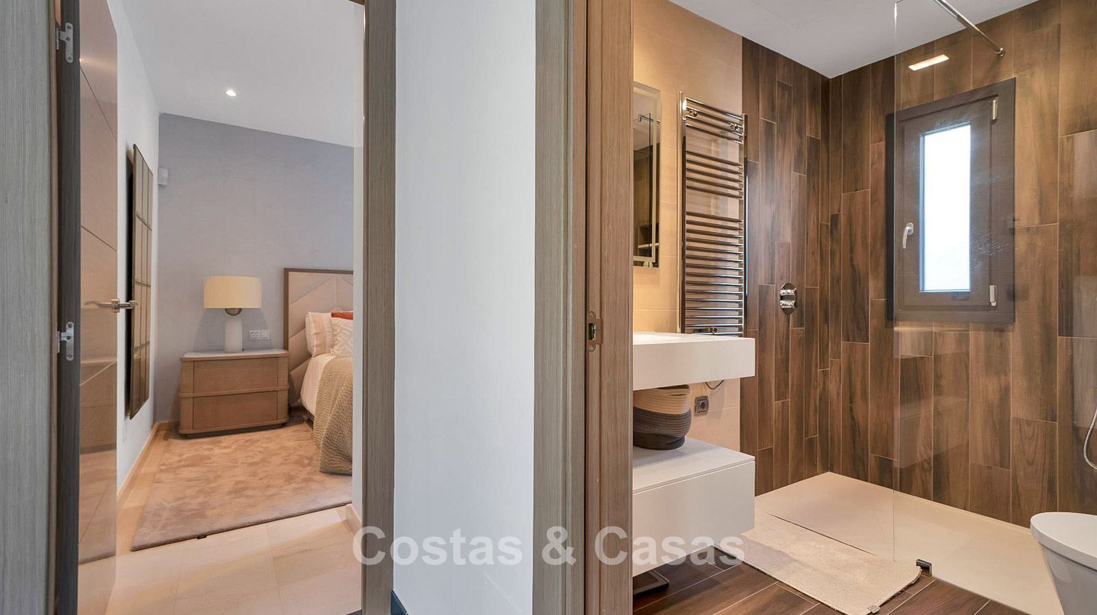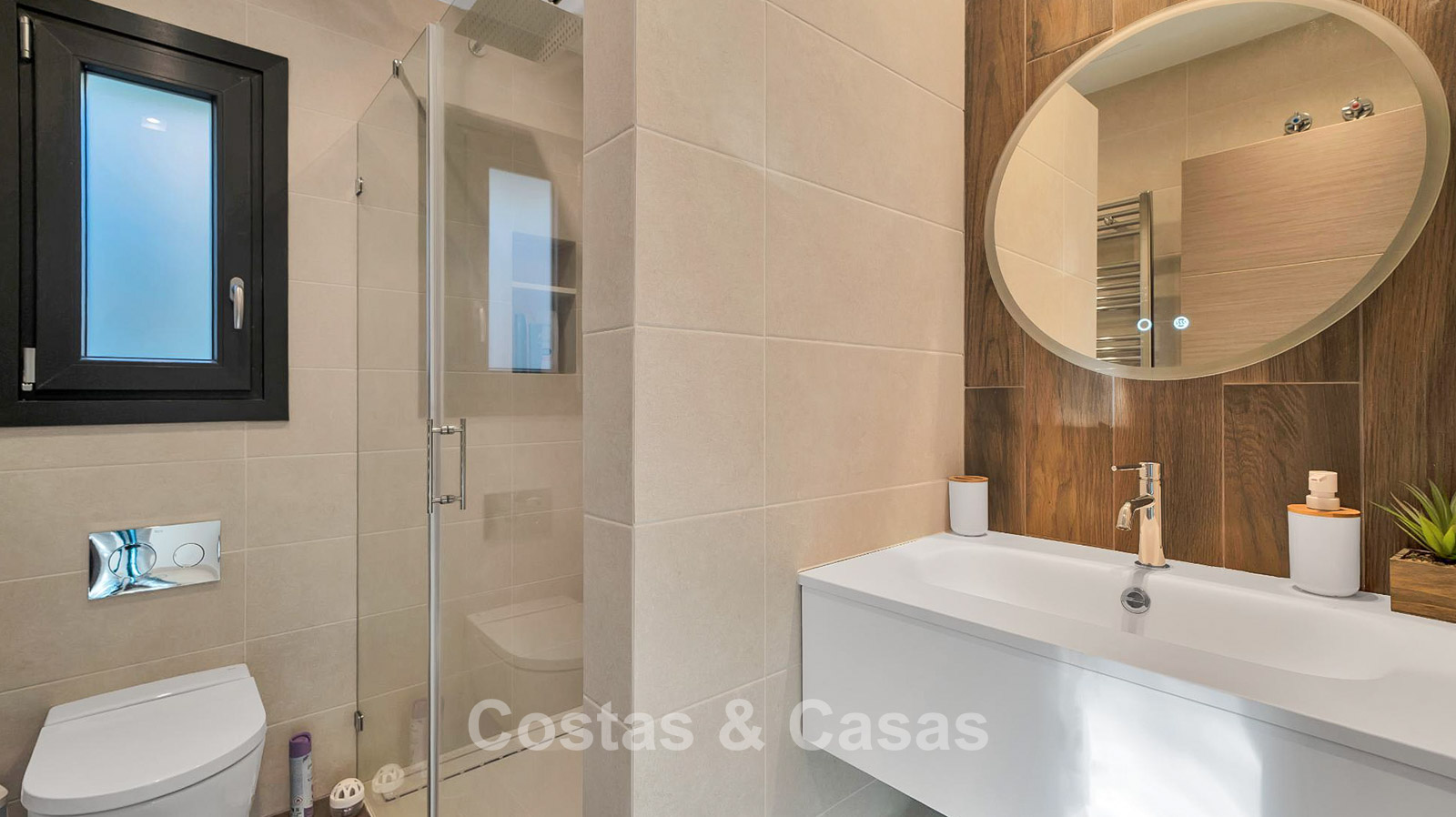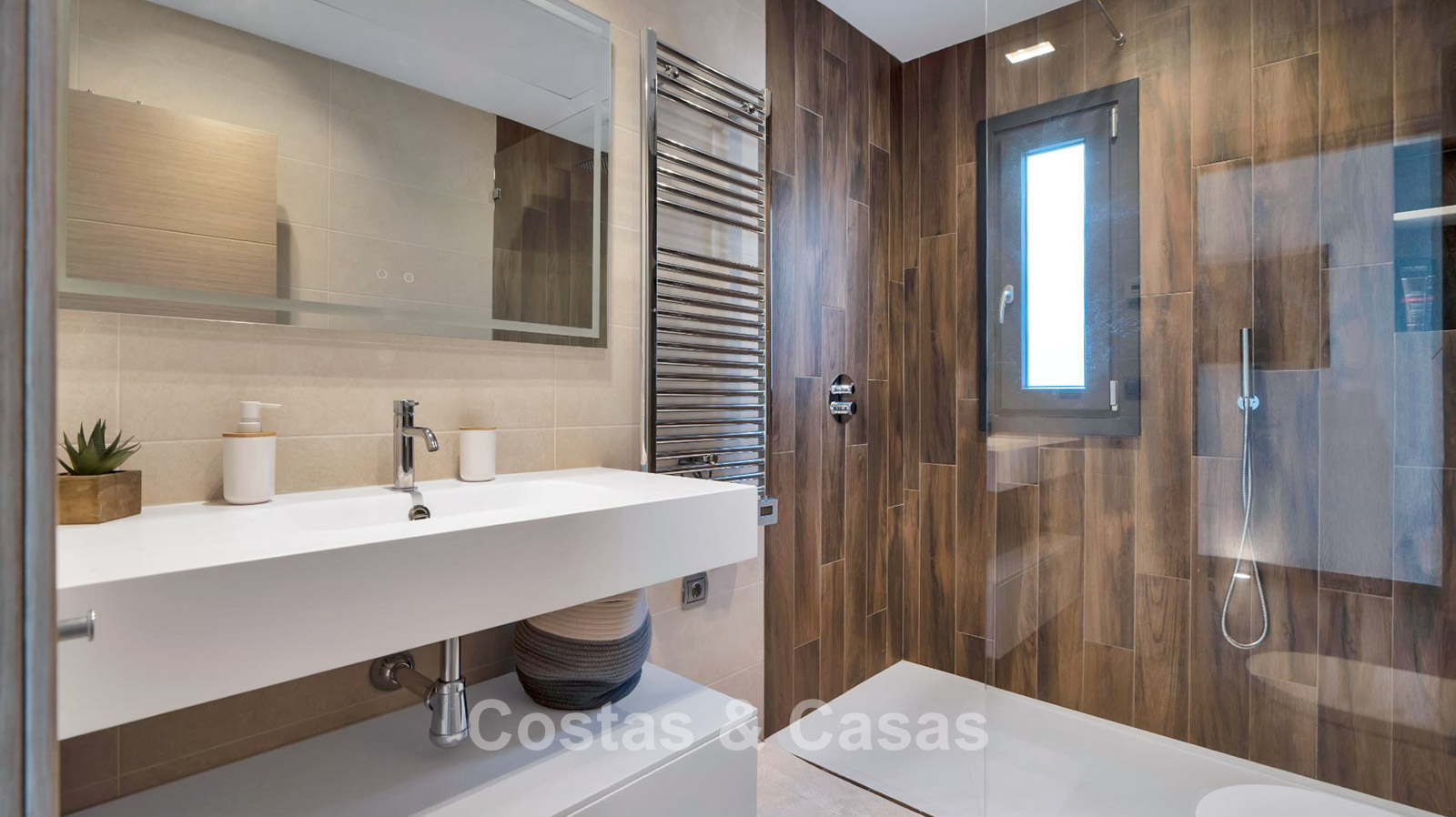4 slaapkamers, 4 badkamers en een apart gastentoilet.