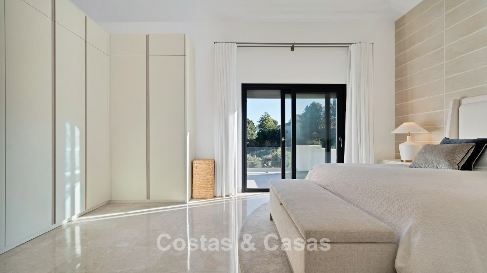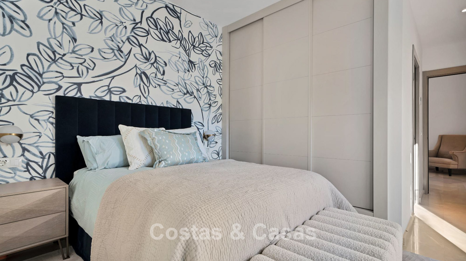 De bovenverdieping is geheel gewijd aan de master slaapkamer, met uitgebreide kledingkasten, ruim terras en en-suite badkamer.