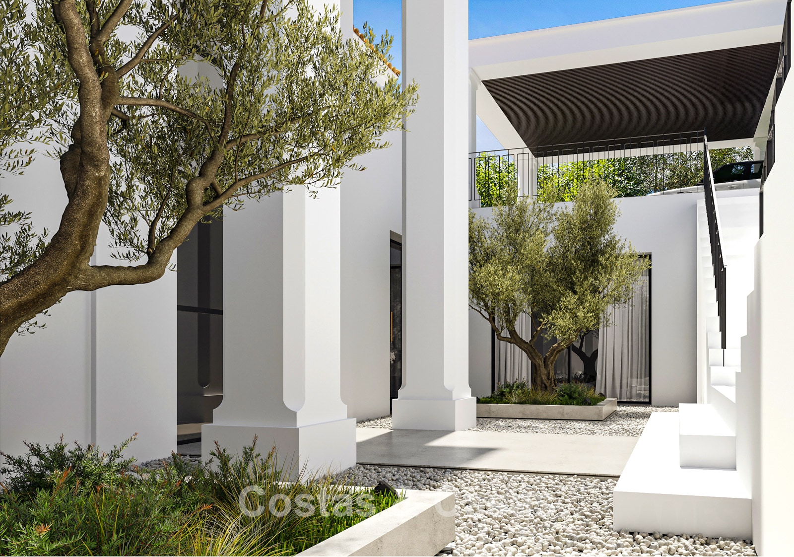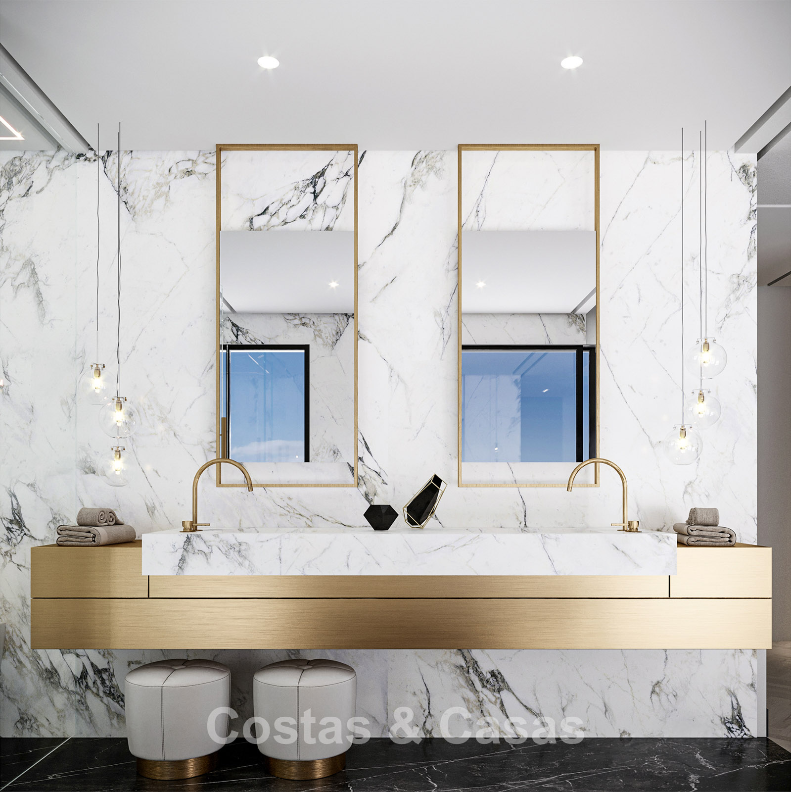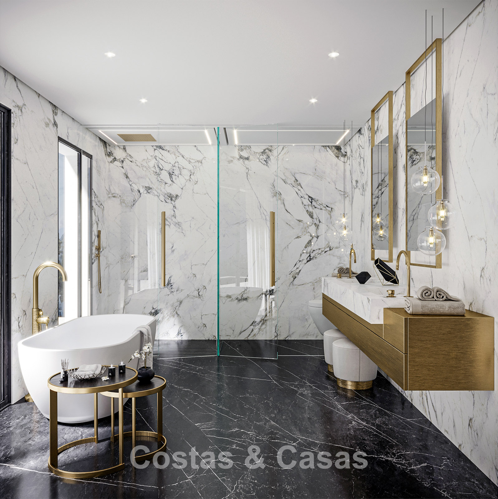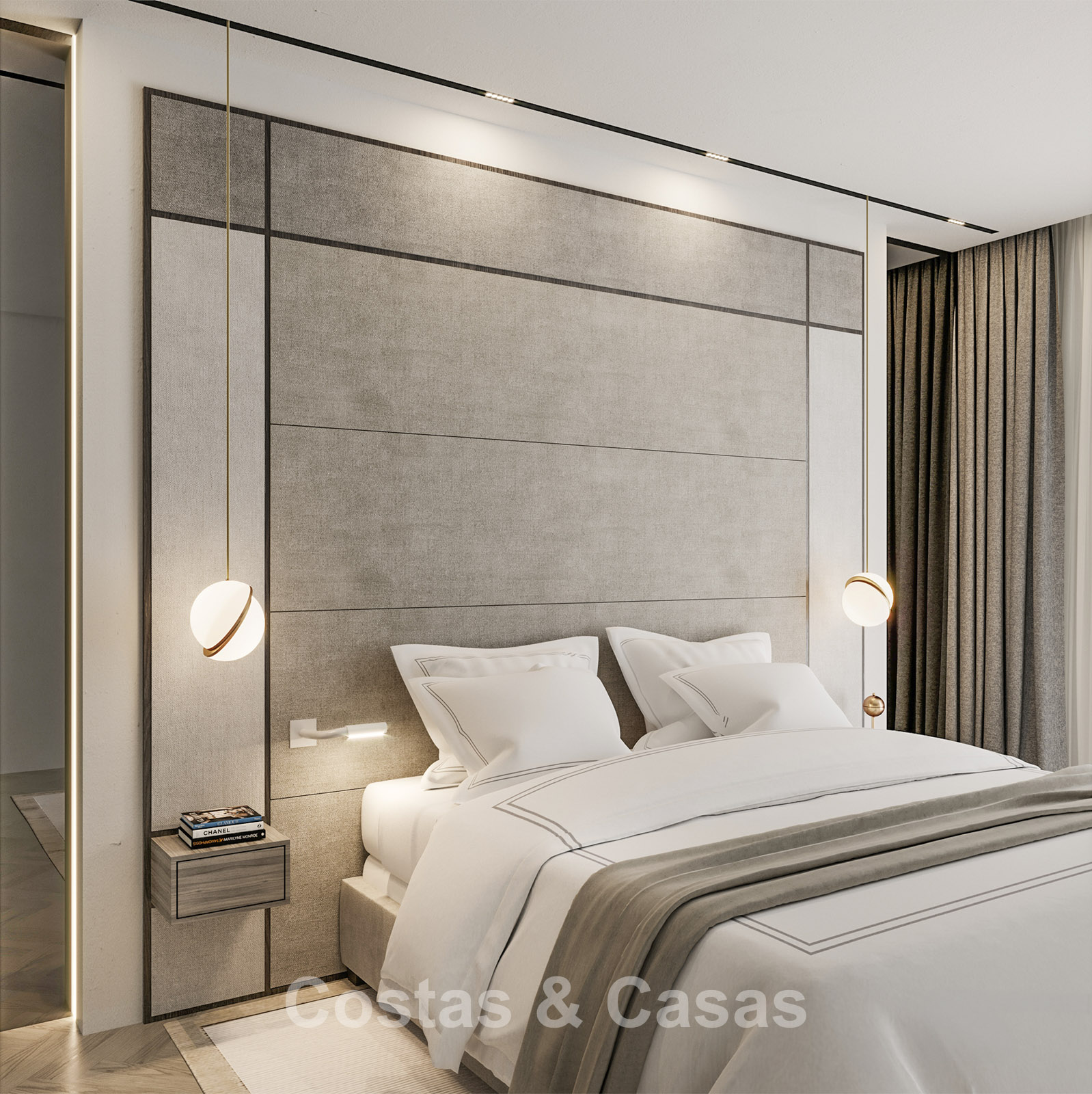 In totaal zijn 6 slaapkamers met elk een eigen terras en 9 badkamers.