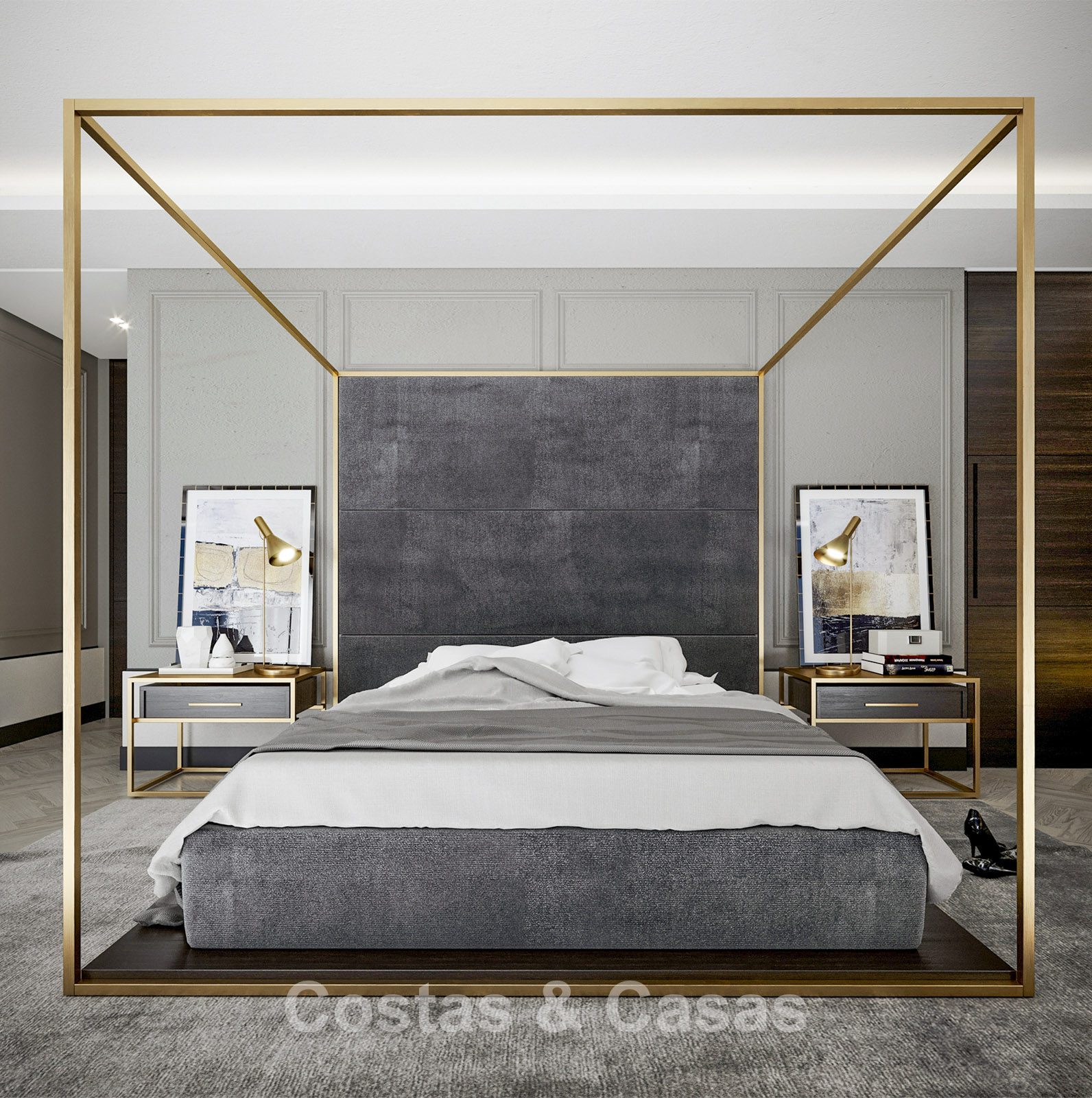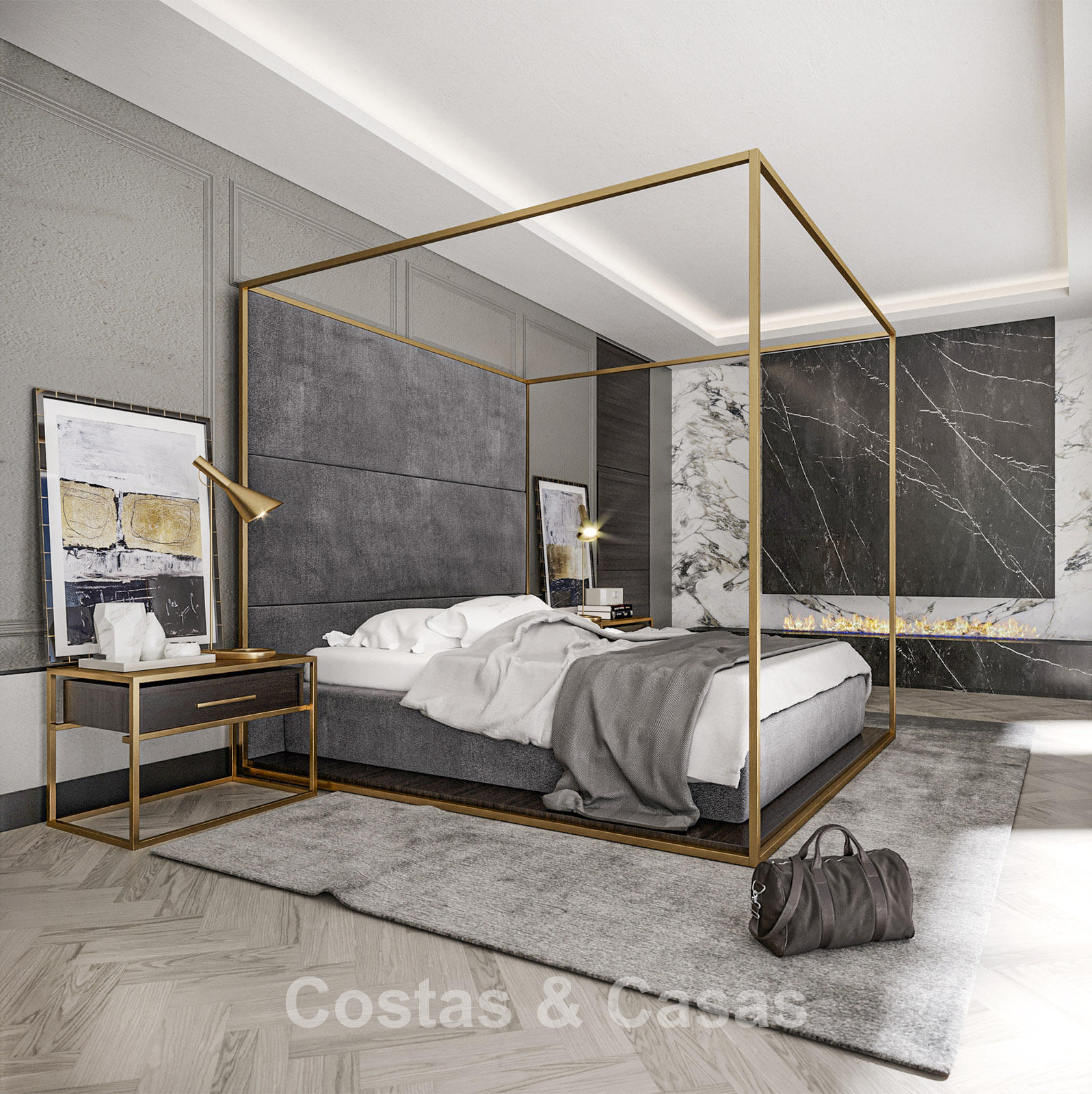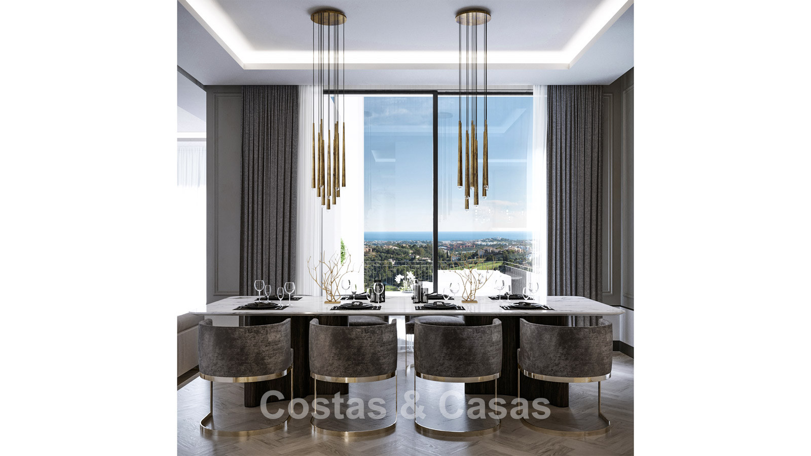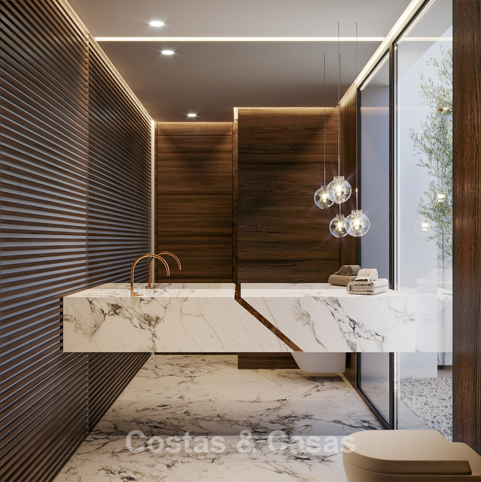 In totaal zijn 6 slaapkamers met elk een eigen terras en 9 badkamers.