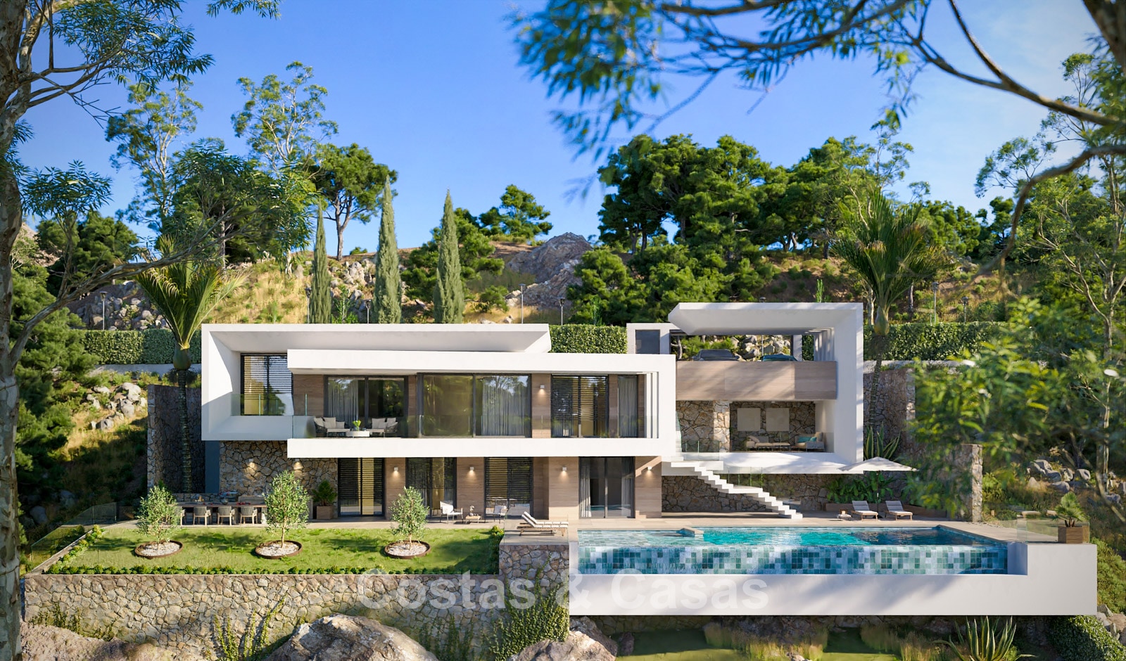 Off-plan nieuwbouwvilla met gesofisticeerde architectuur en panoramisch zeezicht te koop in Marbella - Benahavis 792686