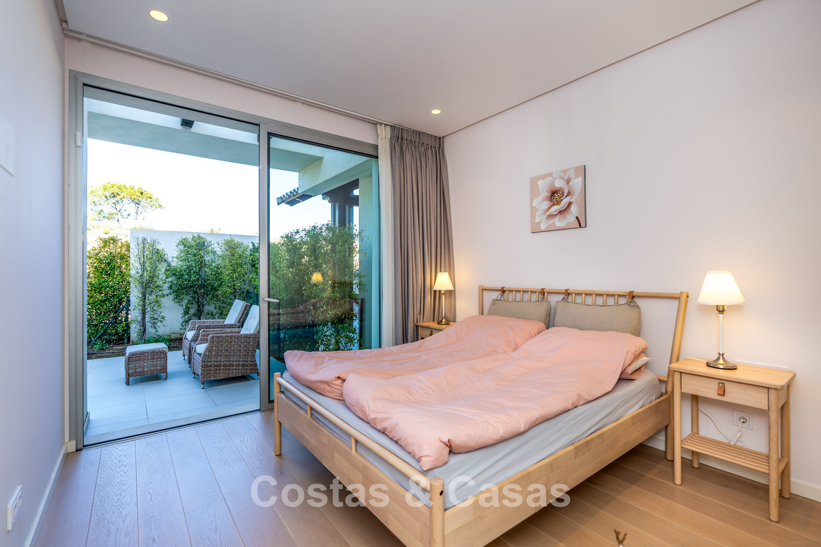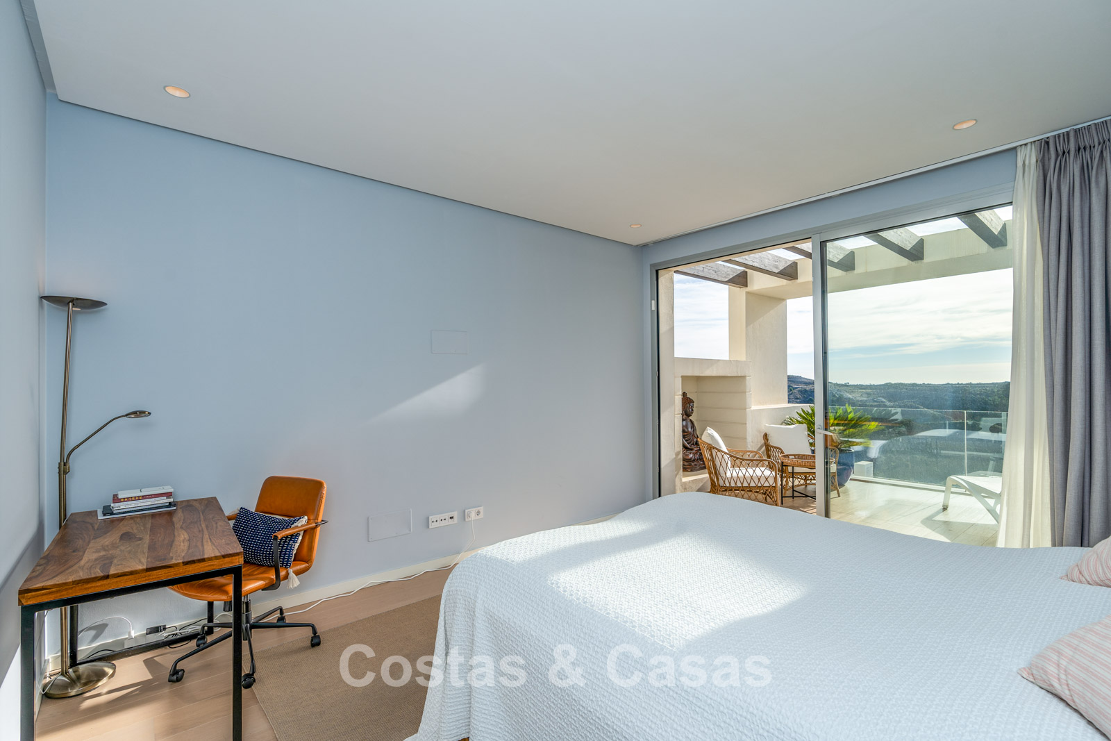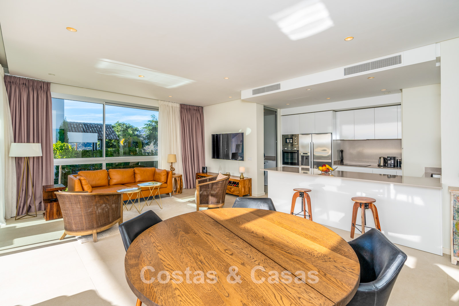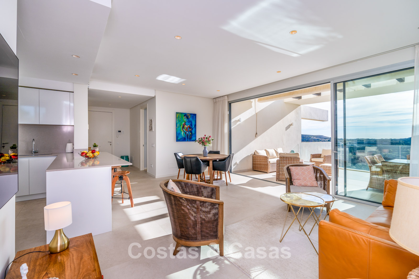 De naadloze overgang naar de drie royale terrassen biedt de ultieme setting voor ontspannen ontbijt in de zon of sfeervolle diners bij een ondergaande zon.
