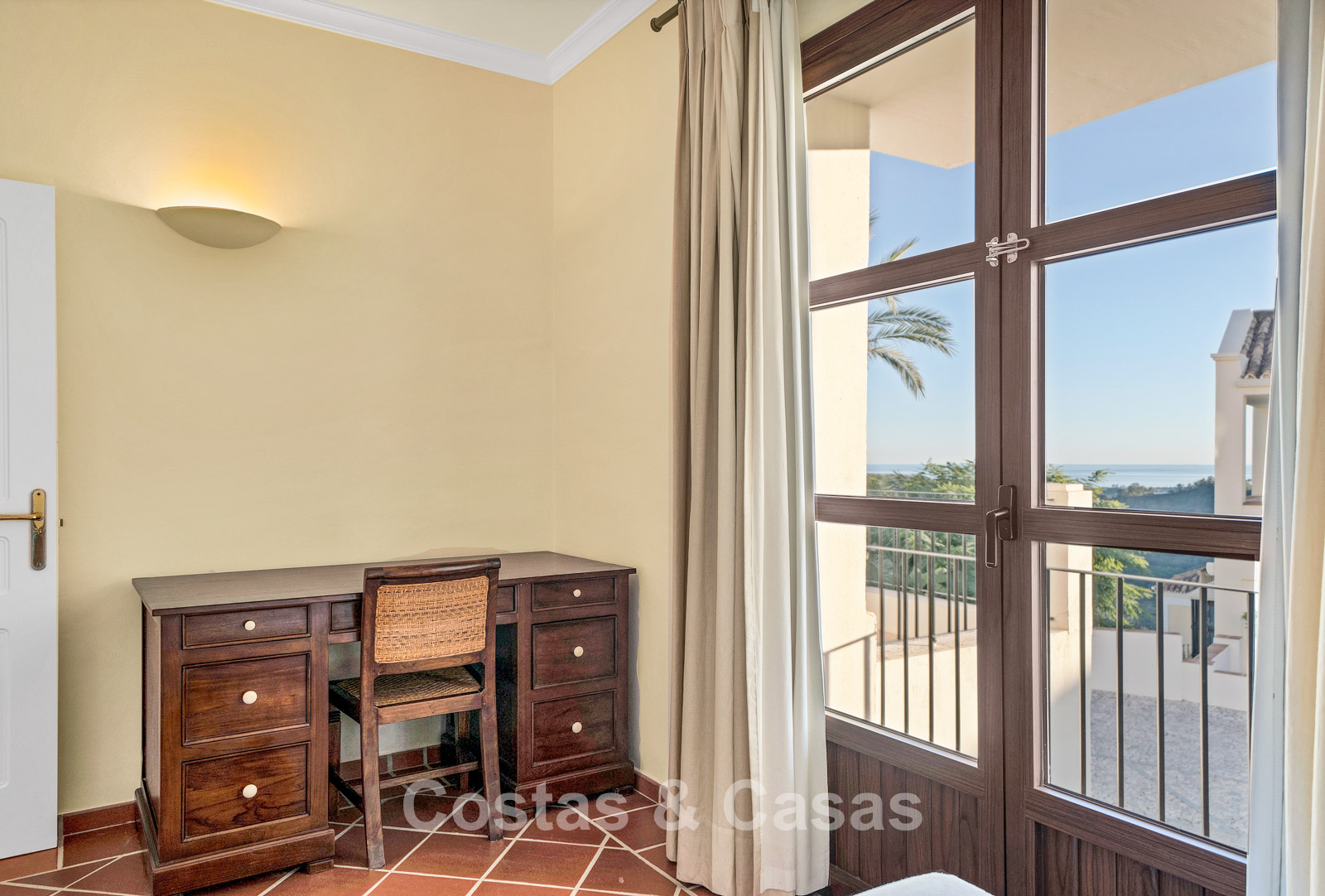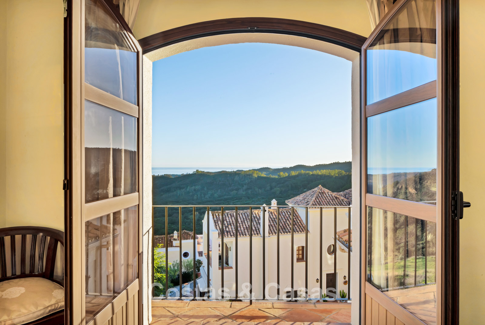 Spaans herenhuis met zeezicht te koop, in een rustige, beveiligde community in de heuvels van Benahavis - Marbella