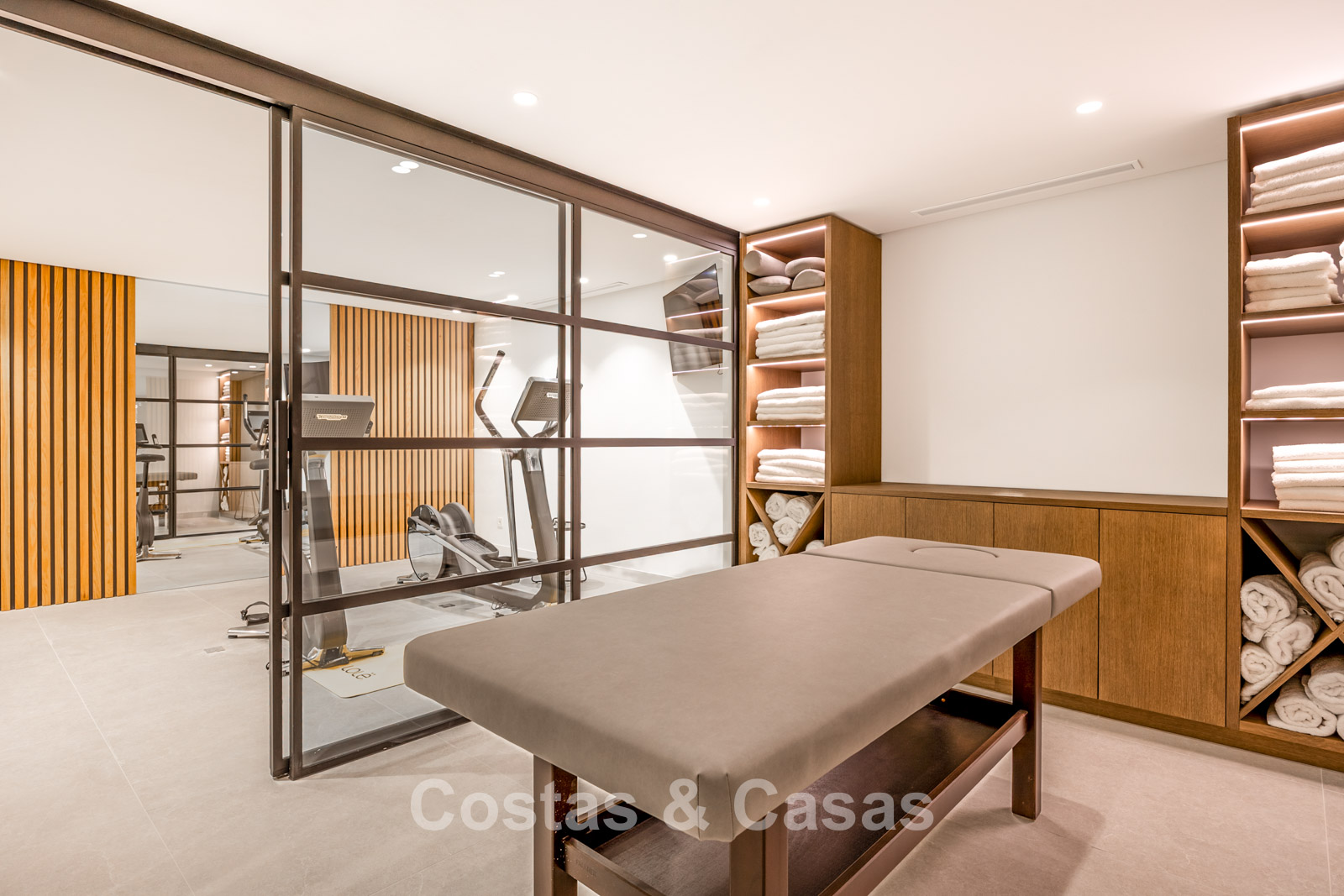 Op de benedenverdieping bevindt zich een privé wellness- en entertainmentgedeelte.
