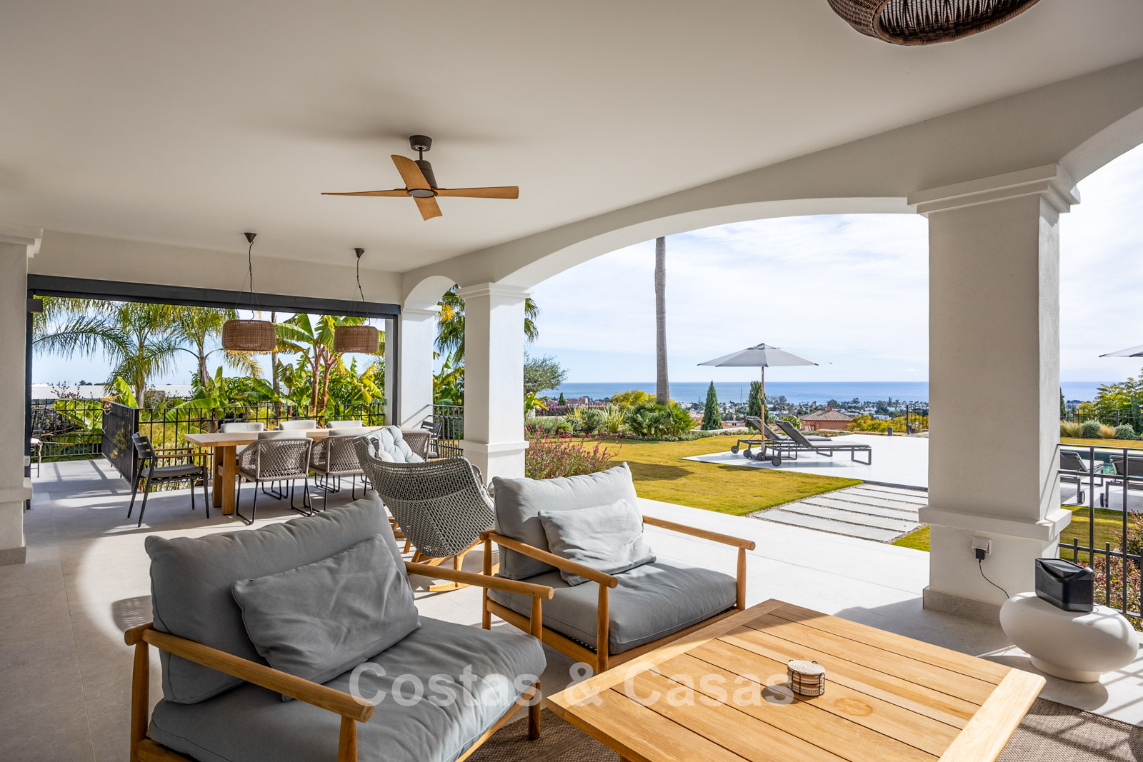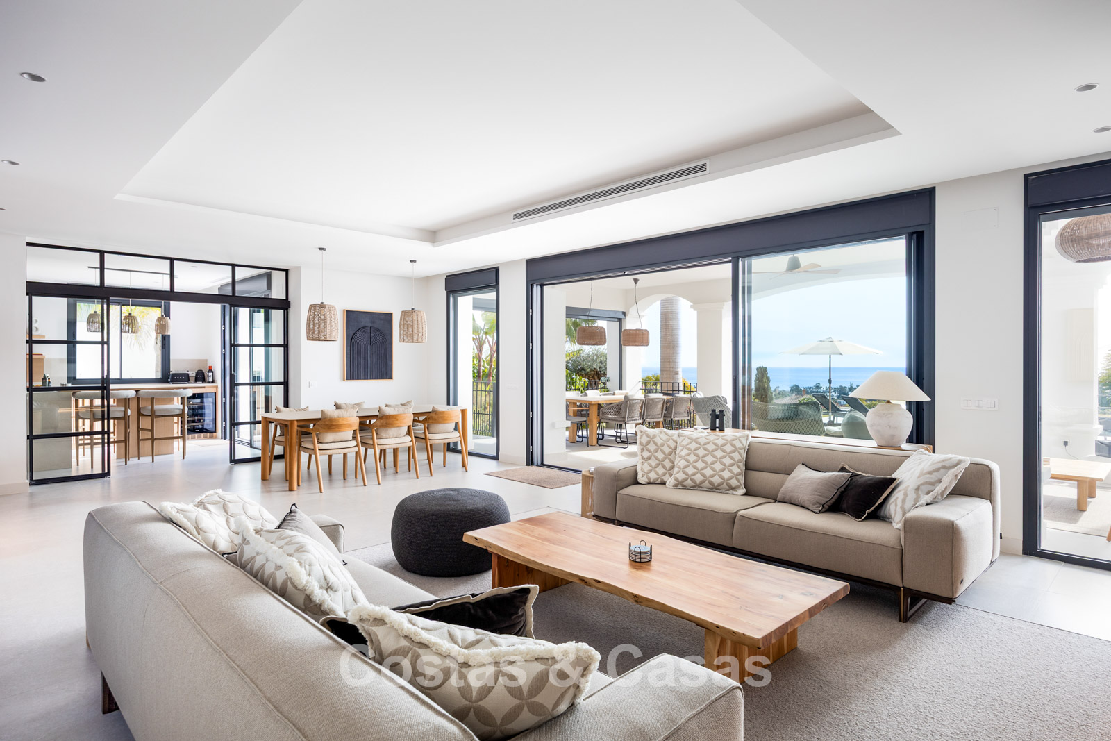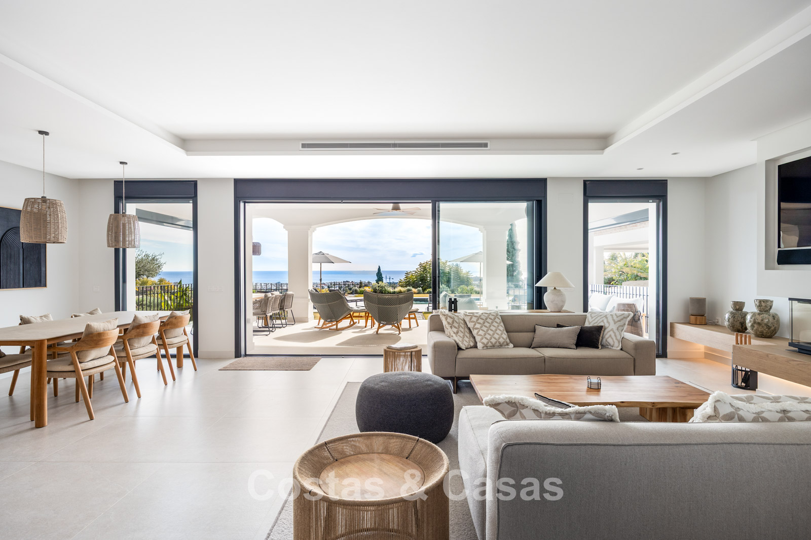 Instapklare, eigentijds-mediterrane villa met onverstoord, panoramisch zeezicht te koop in Benahavis - Marbella