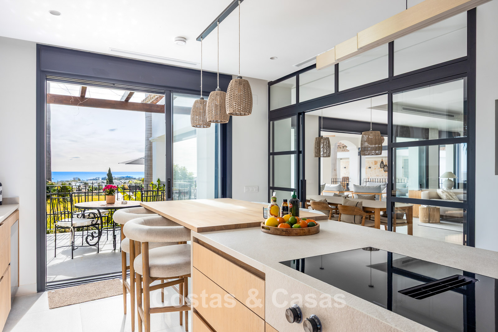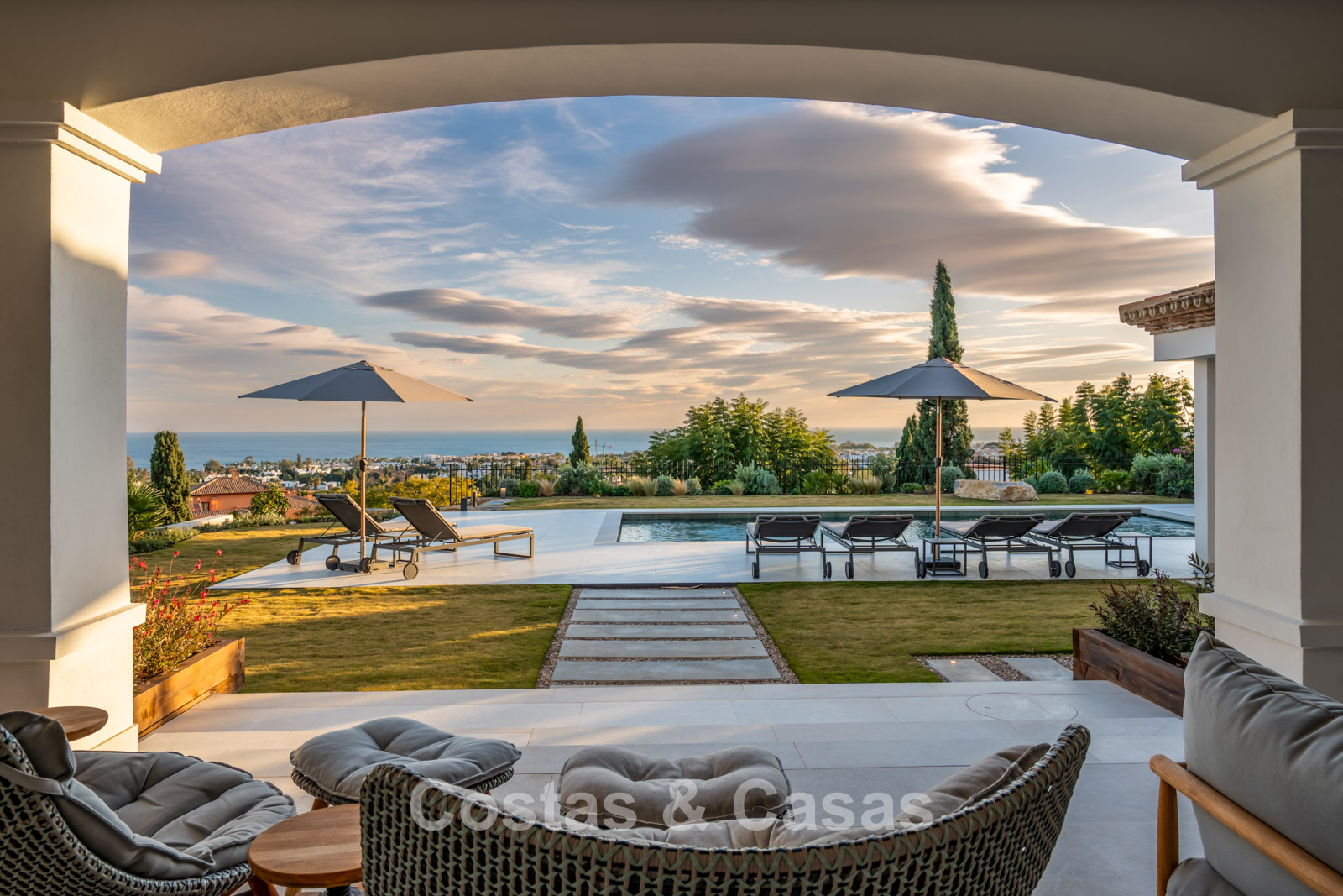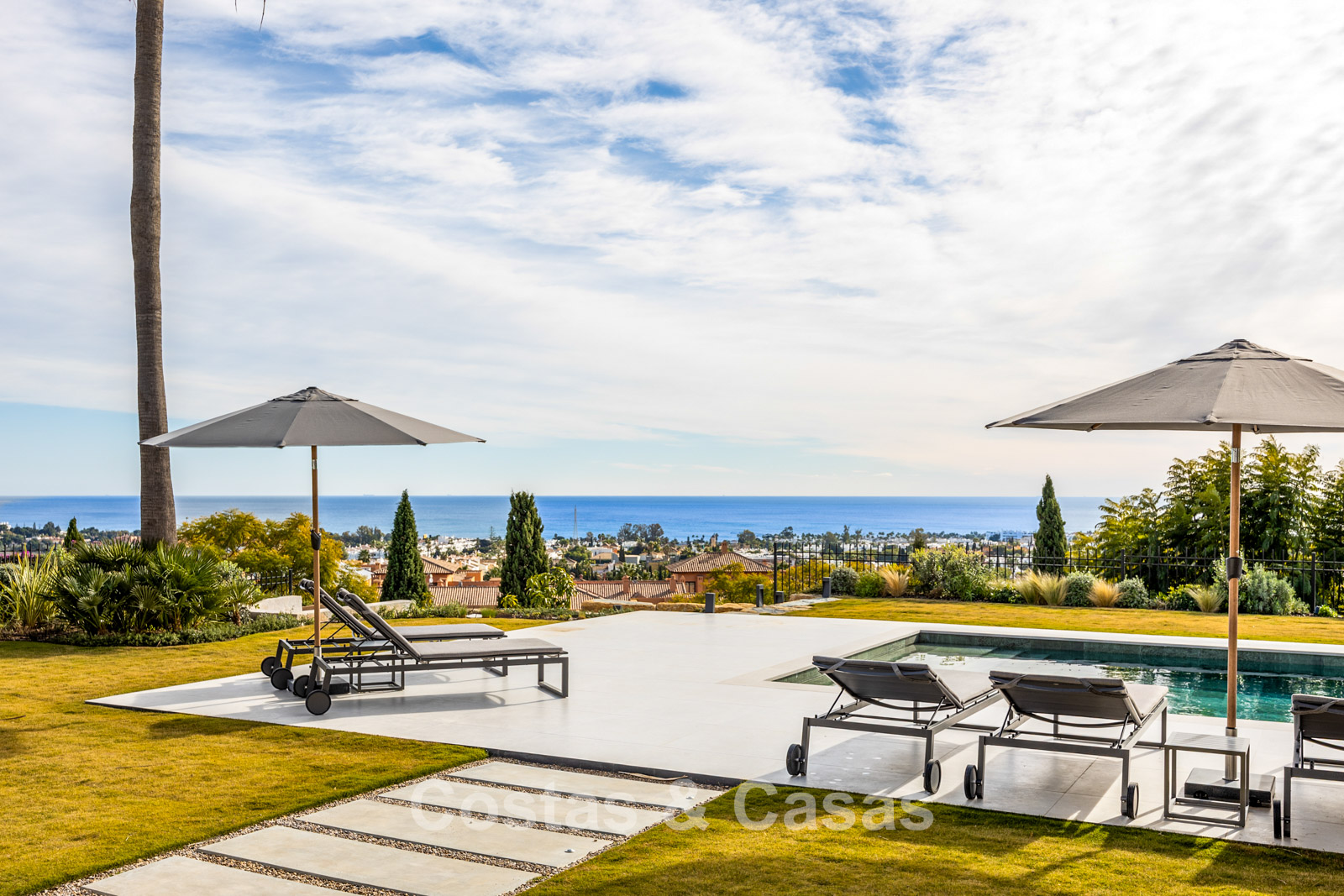 Instapklare, eigentijds-mediterrane villa met onverstoord, panoramisch zeezicht te koop in Benahavis - Marbella