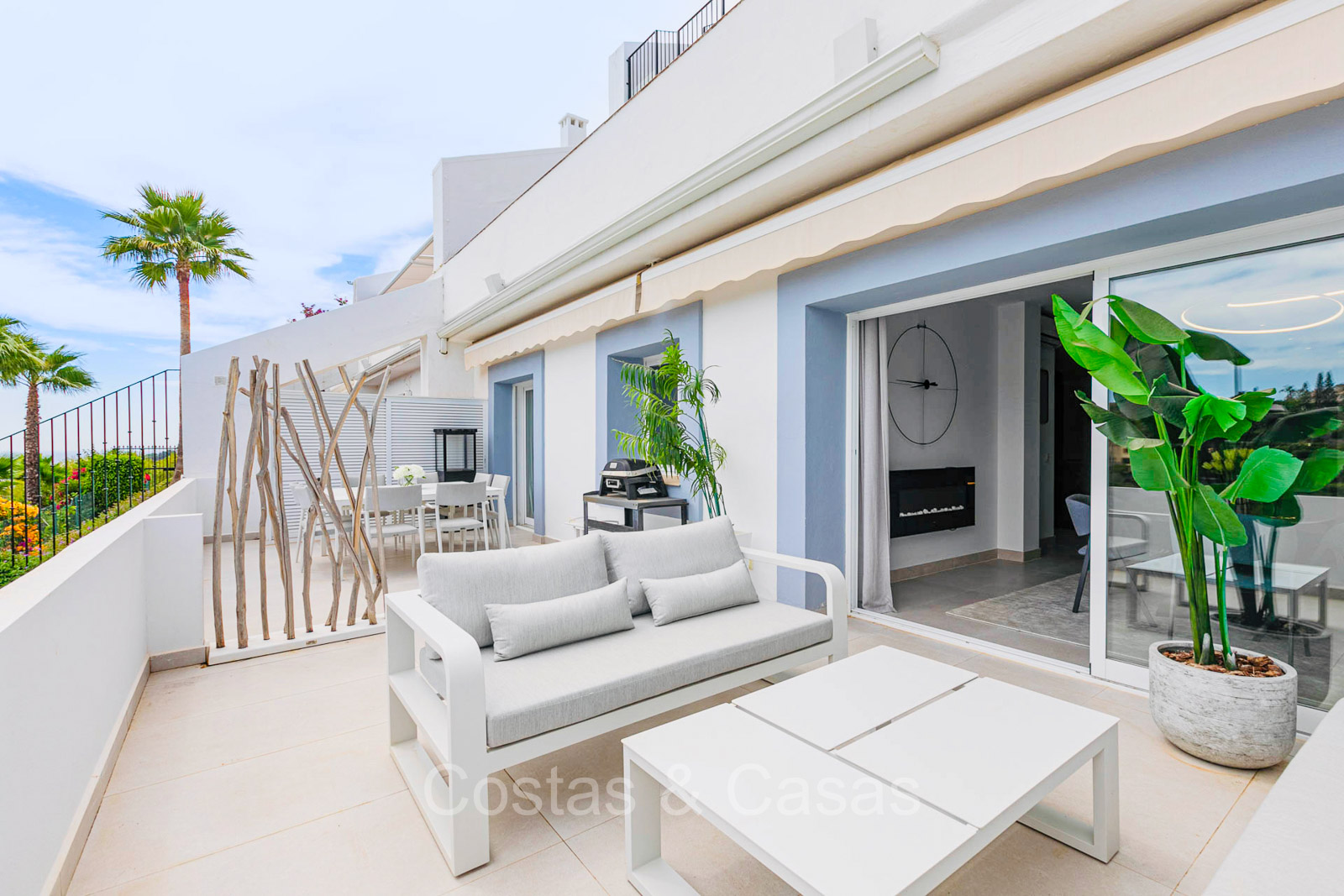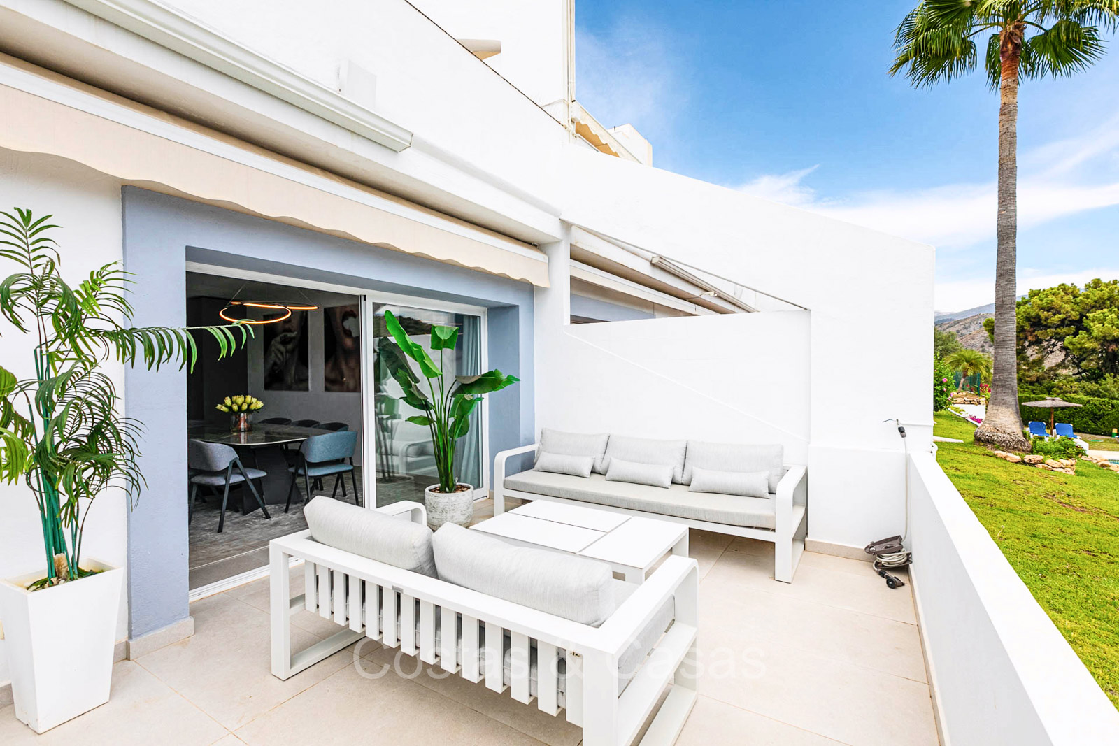 Luxe appartement te koop met privétuin en zeezicht in een luxueus vijfsterren golfresort in Benahavis - Marbella