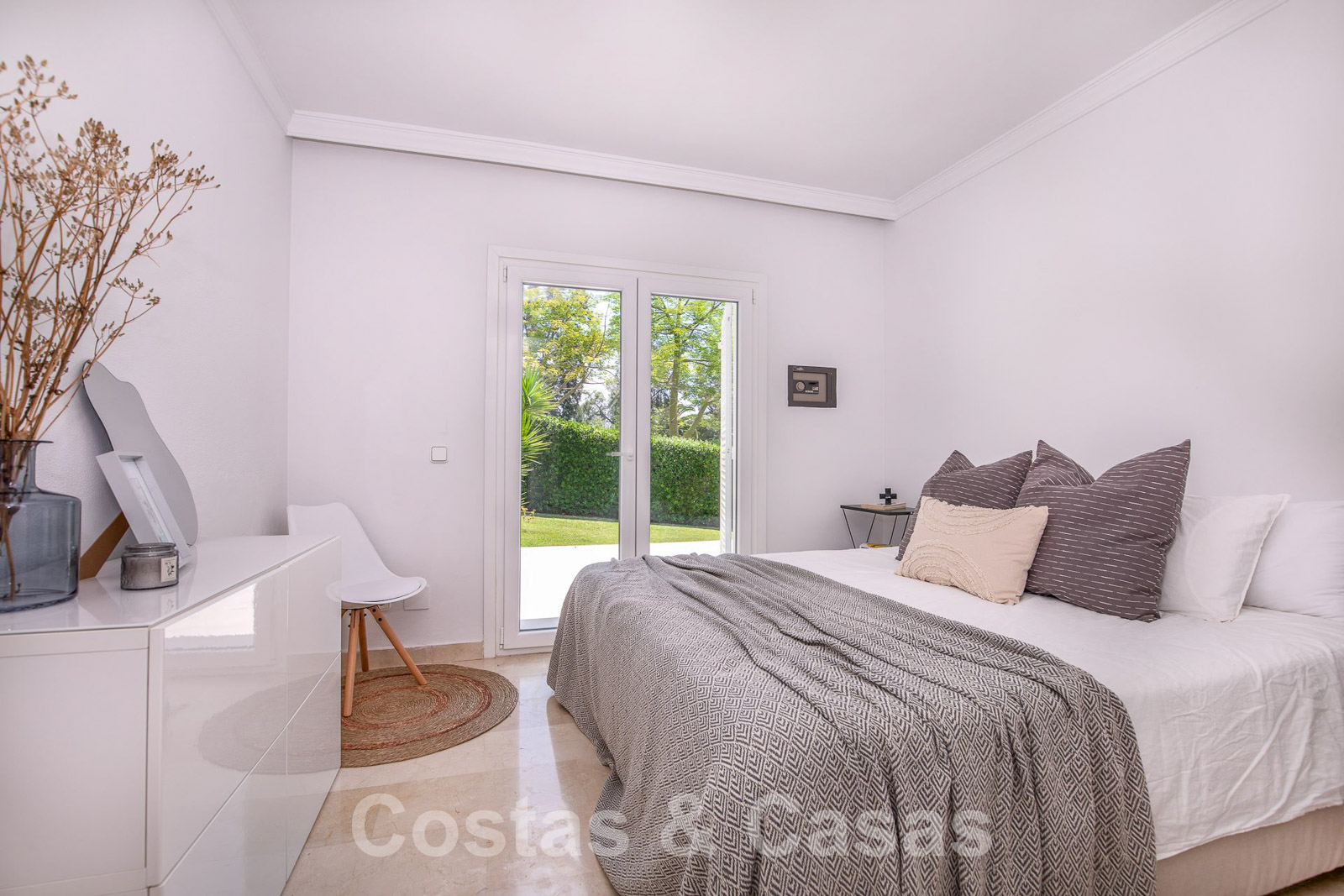 De slaapkamers bevinden zich op tuinniveau en bieden directe toegang tot de buitenruimte.
