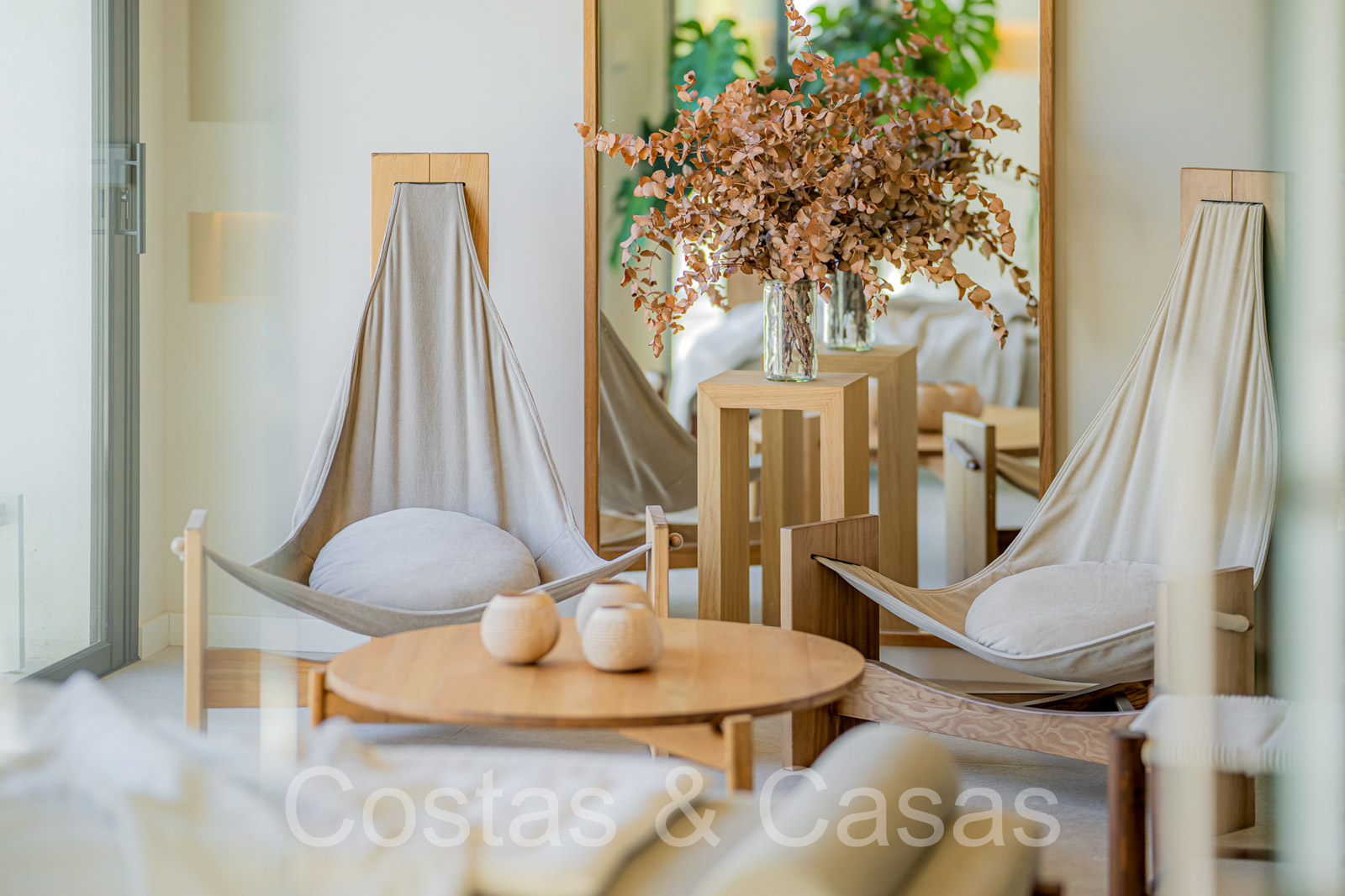 Royale open en overdekte terrassen, voorzien van chill-out of andere zitmogelijkheden.