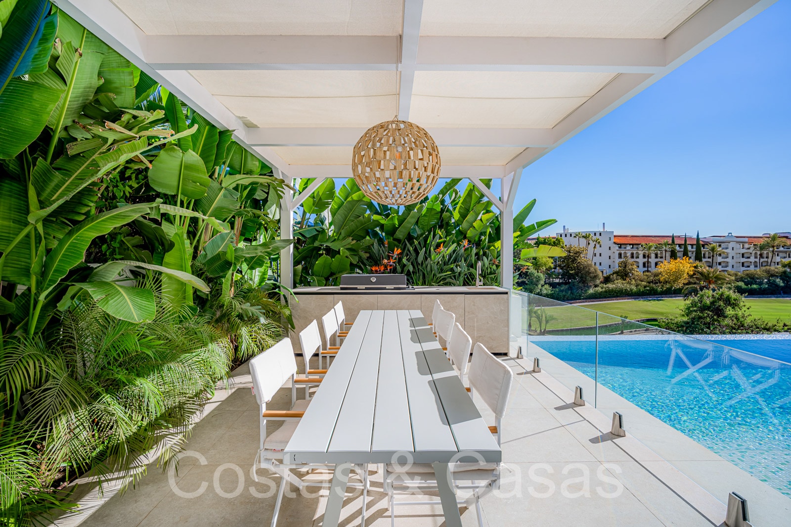 Aanpalend een overdekt terras uitgerust met een buitenkeuken en al fresco dining ruimte.