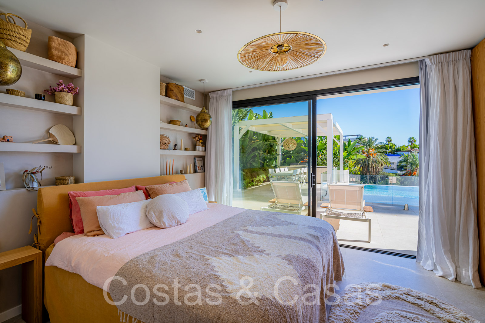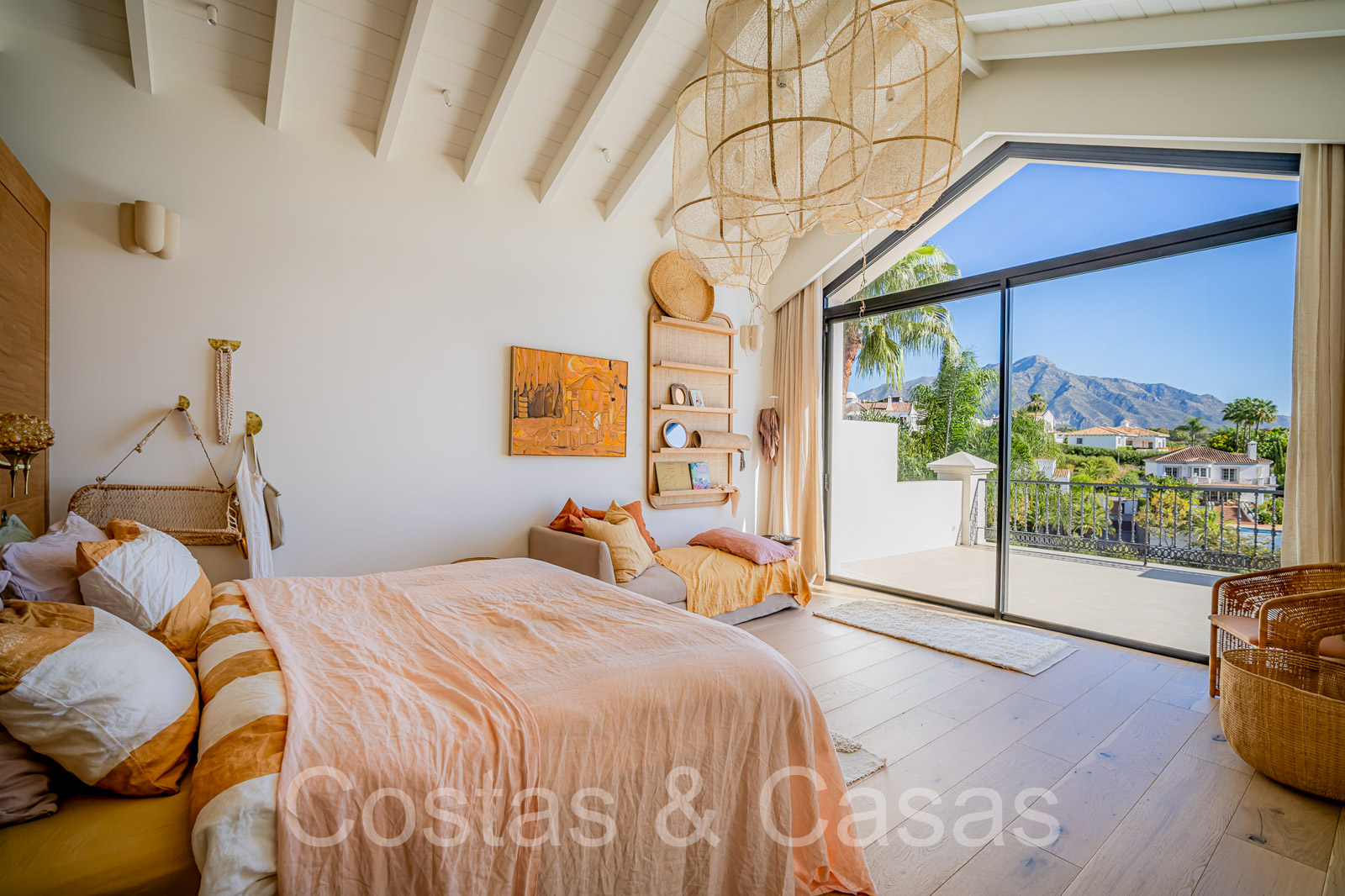De master suite biedt direct toegang tot het terras voor een spectaculair uitzicht.