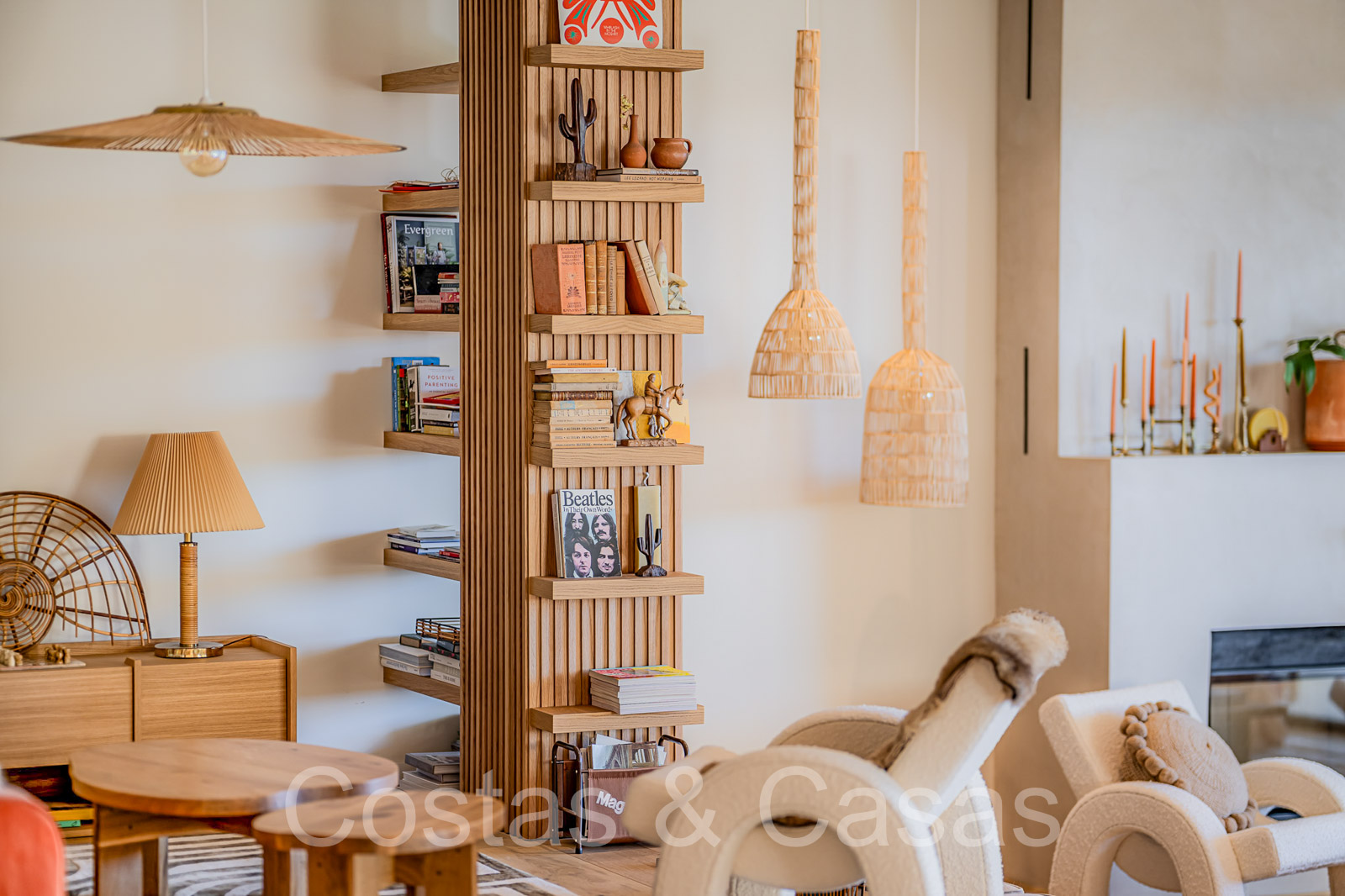Een warm interieurdesign ontworpen met houten accenten en subtiele kleuraccenten.
