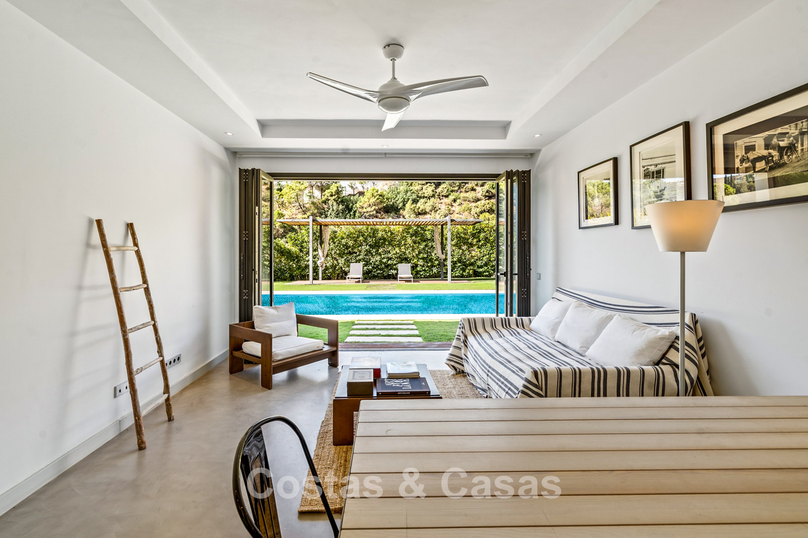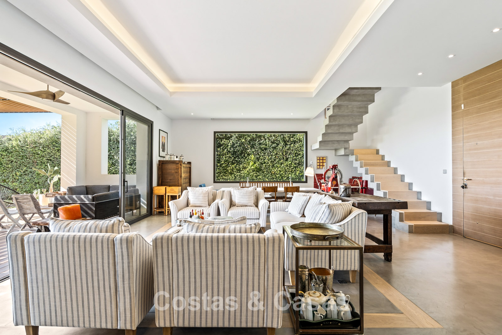 De hoofdwoning strekt zich uit over royale, lichtrijke ruimtes.
