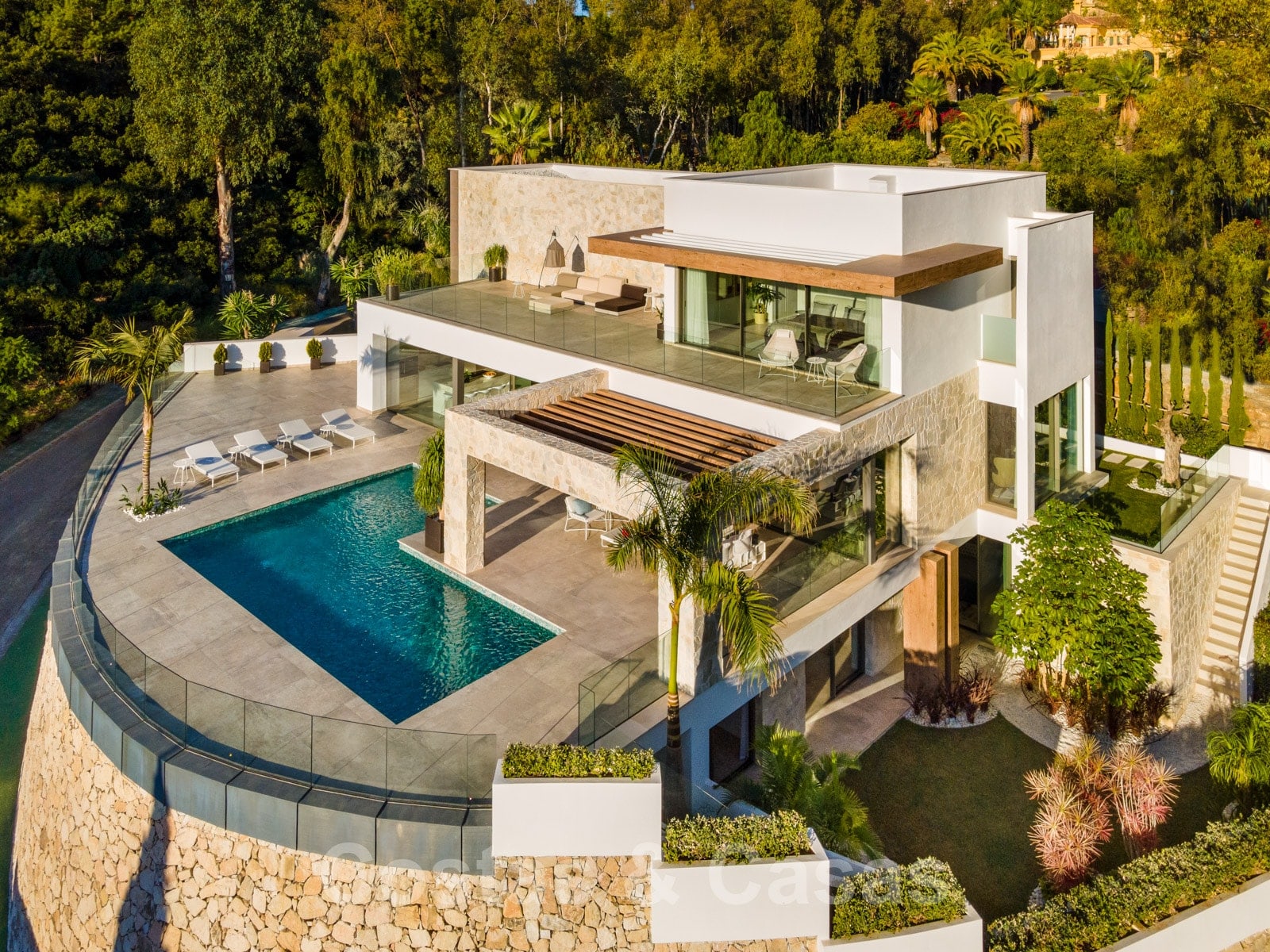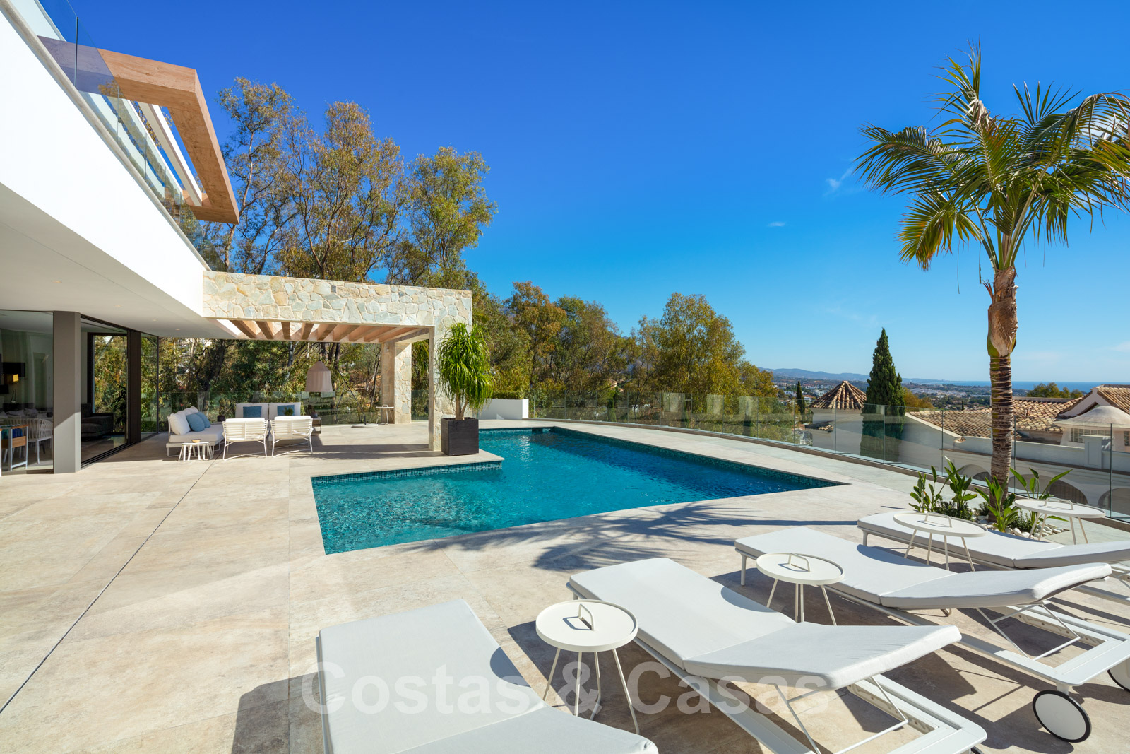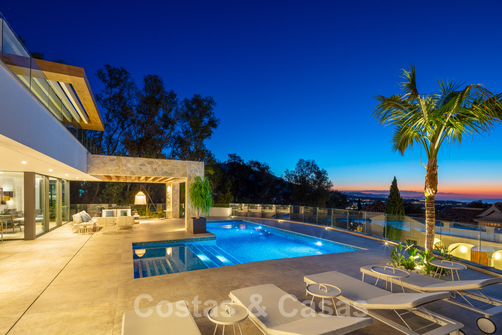 Gloednieuwe villa in eigentijdse stijl in een gated community met panoramisch zeezicht te koop in Benahavis - Marbella 30678