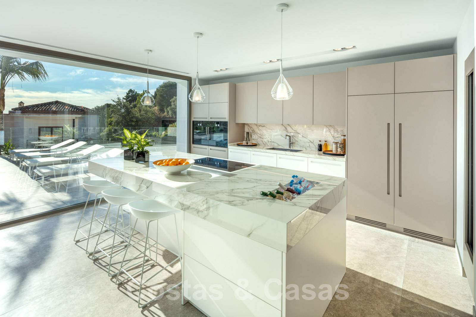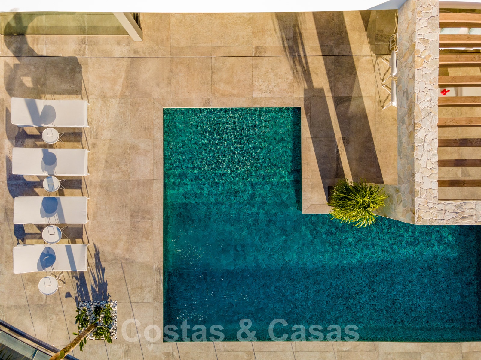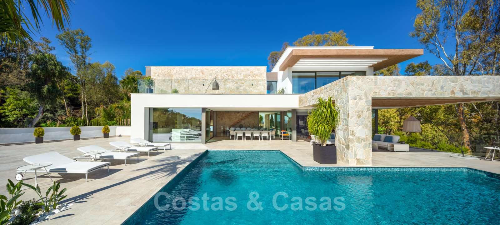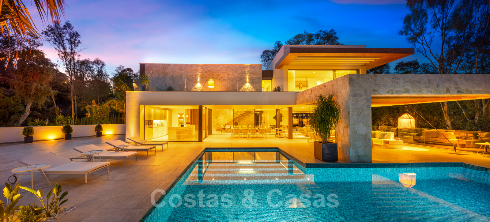 Gloednieuwe villa in eigentijdse stijl in een gated community met panoramisch zeezicht te koop in Benahavis - Marbella 30678