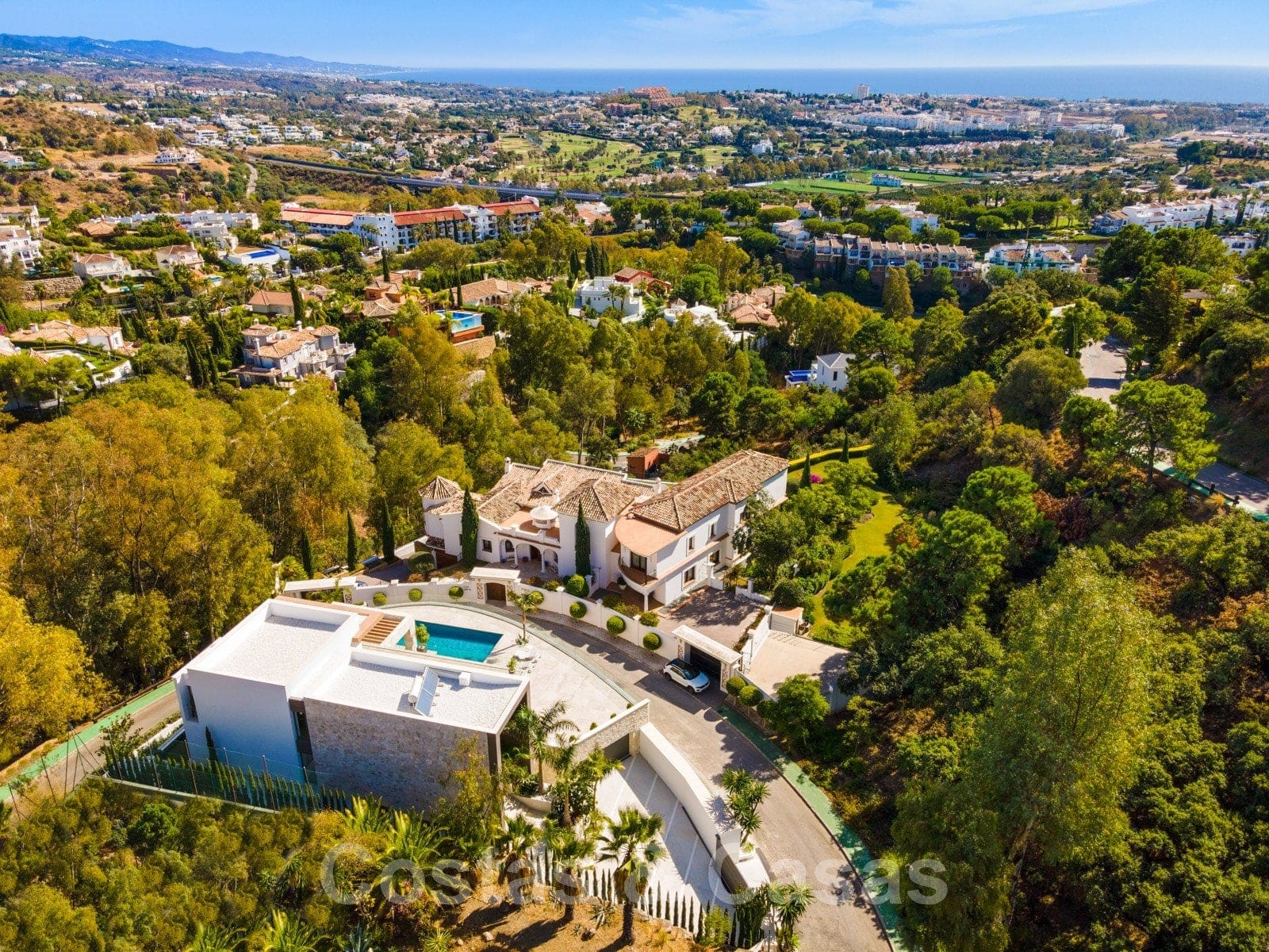 De villa is gericht op het zuiden en gelegen op een verhoogde positie en heeft open uitzicht over het groen, de La Concha berg en naar de Middellandse Zee.